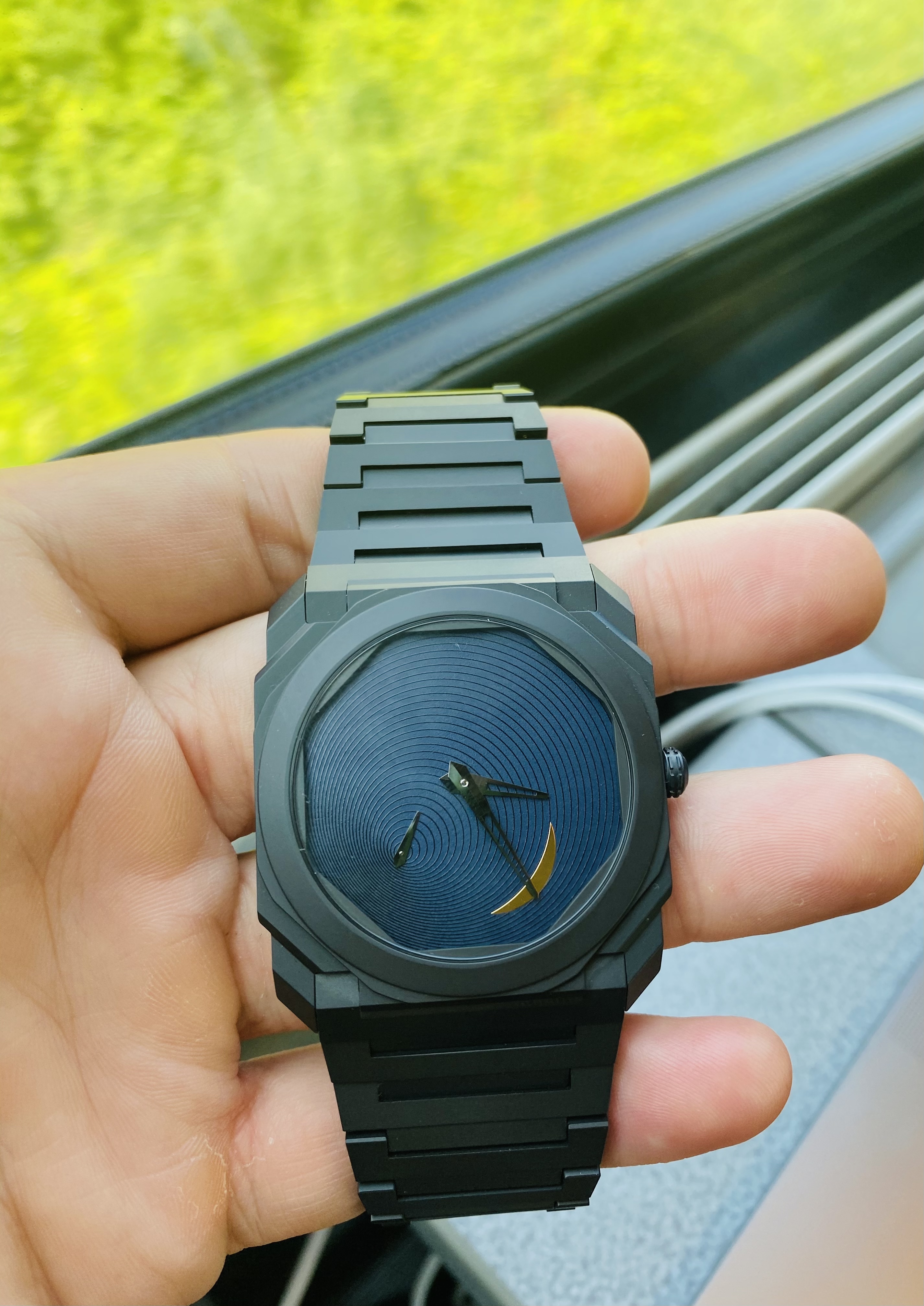 Thanks all... I finally got past the supposed 'stigma' of Bulgari as a fashion watch and took the plunge. Frankly, I ordered this model because there isn't any Bulgari branding on the dial or anywhere else, aside from some small text on the back of the case. But I have to say, going to the Bulgari event at Watch Days, and seeing quite a few folks donning the more standard Octo's, I love them both with branding and without it. They just look cool. And I get the feeling that there is a quiet community of Octo enthusiast lurking... I was surprised to see that!