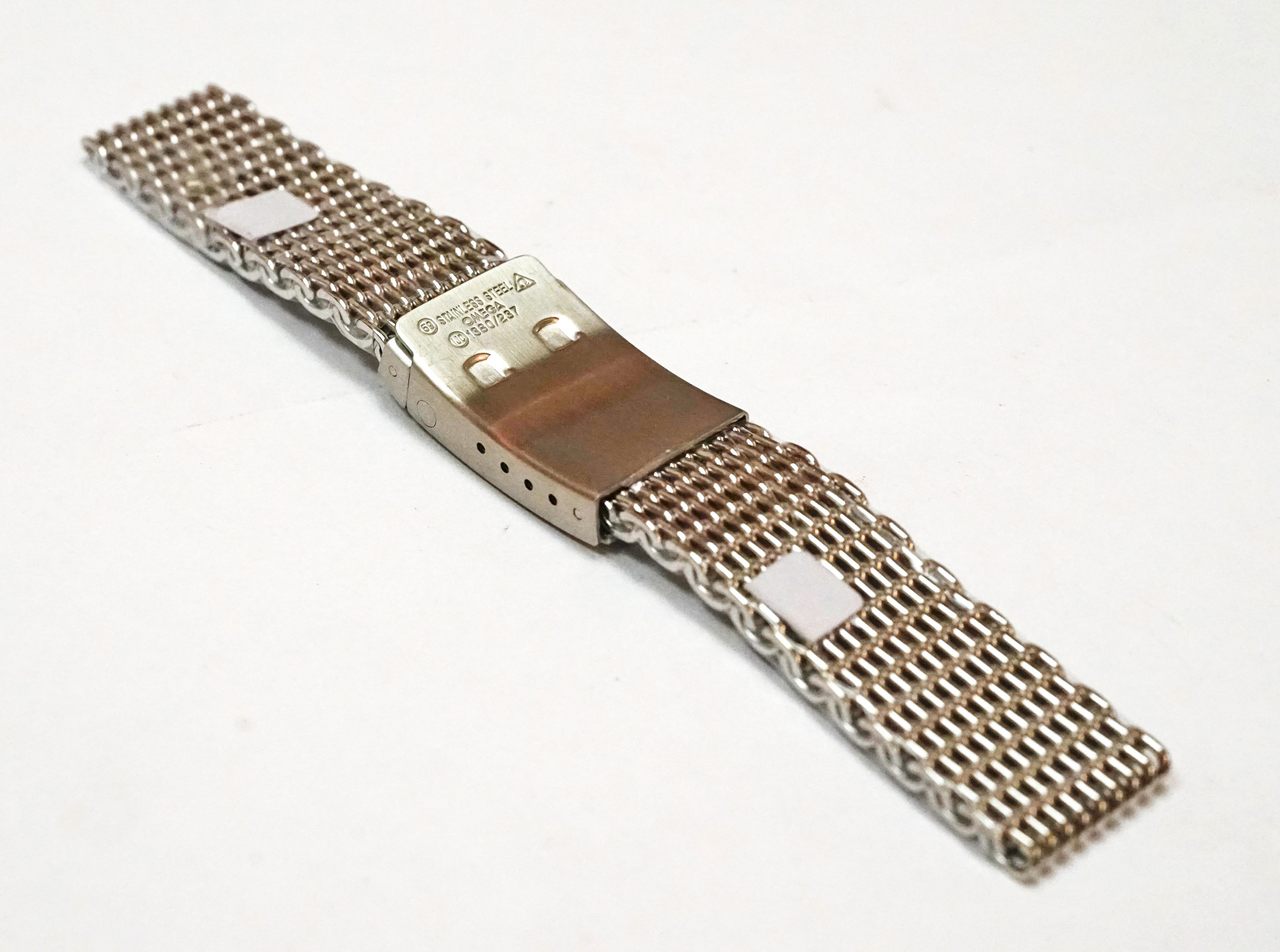 ·For Sale is an OEM Omega 20mm Shark Mesh Bracelet. Model number is 1380 / 237. The bracelet is 20mm wide at the lugs and 20mm at the clasp. The total length of clasp and mesh bracelet can be as short as ~4.25" to as long as ~5.5". This should be able to fit a wrist size of roughly 6" to 7.4". The item is in brand new condition, TZ rating 100%, as you can see in the pics.