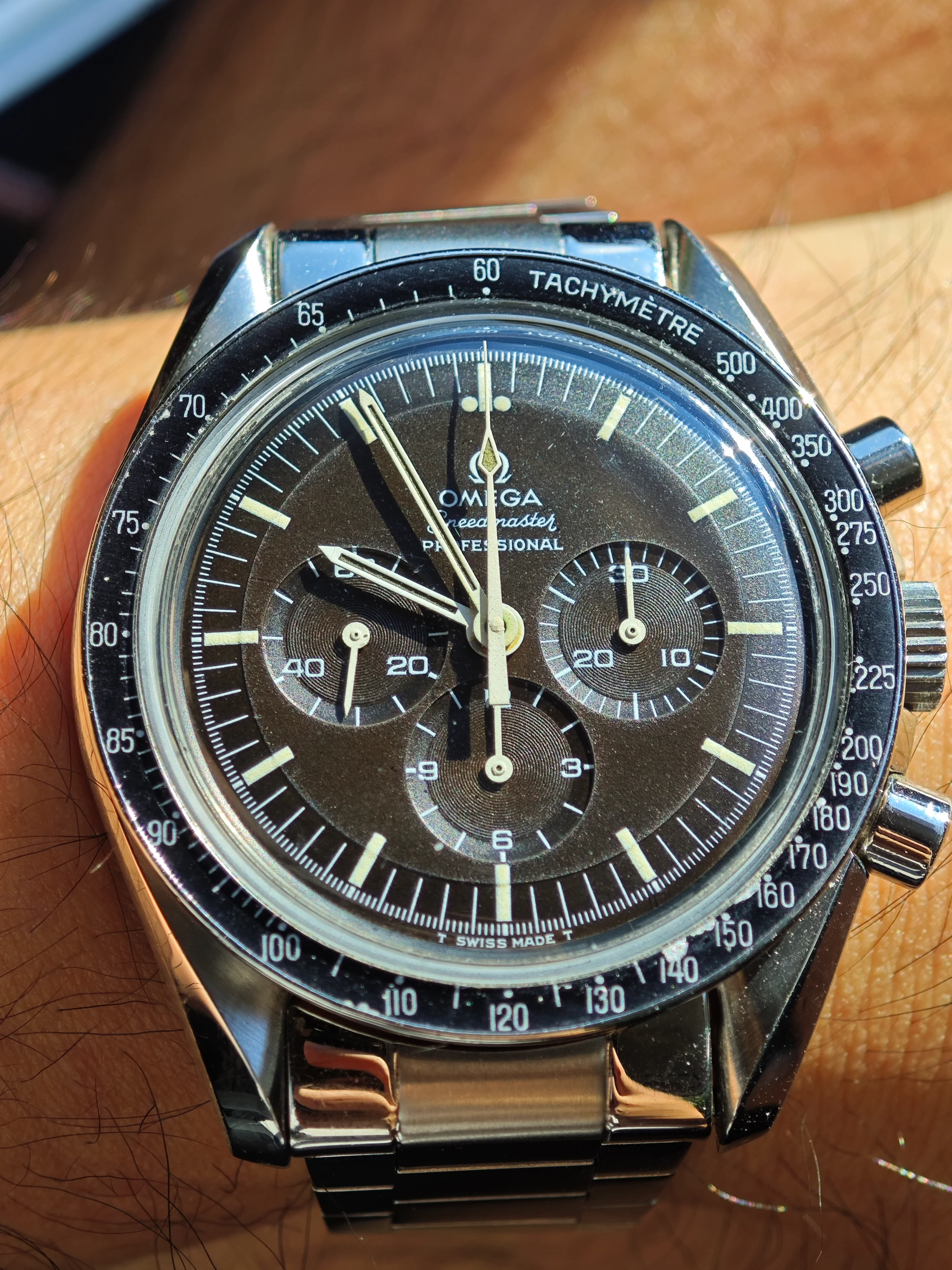 The movement is super clean, and recently serviced. The watch is running perfectly, both for daily wear and on a timegrapher. The serial number is 2960xxxx, which put it in the range famous for the brown dial.