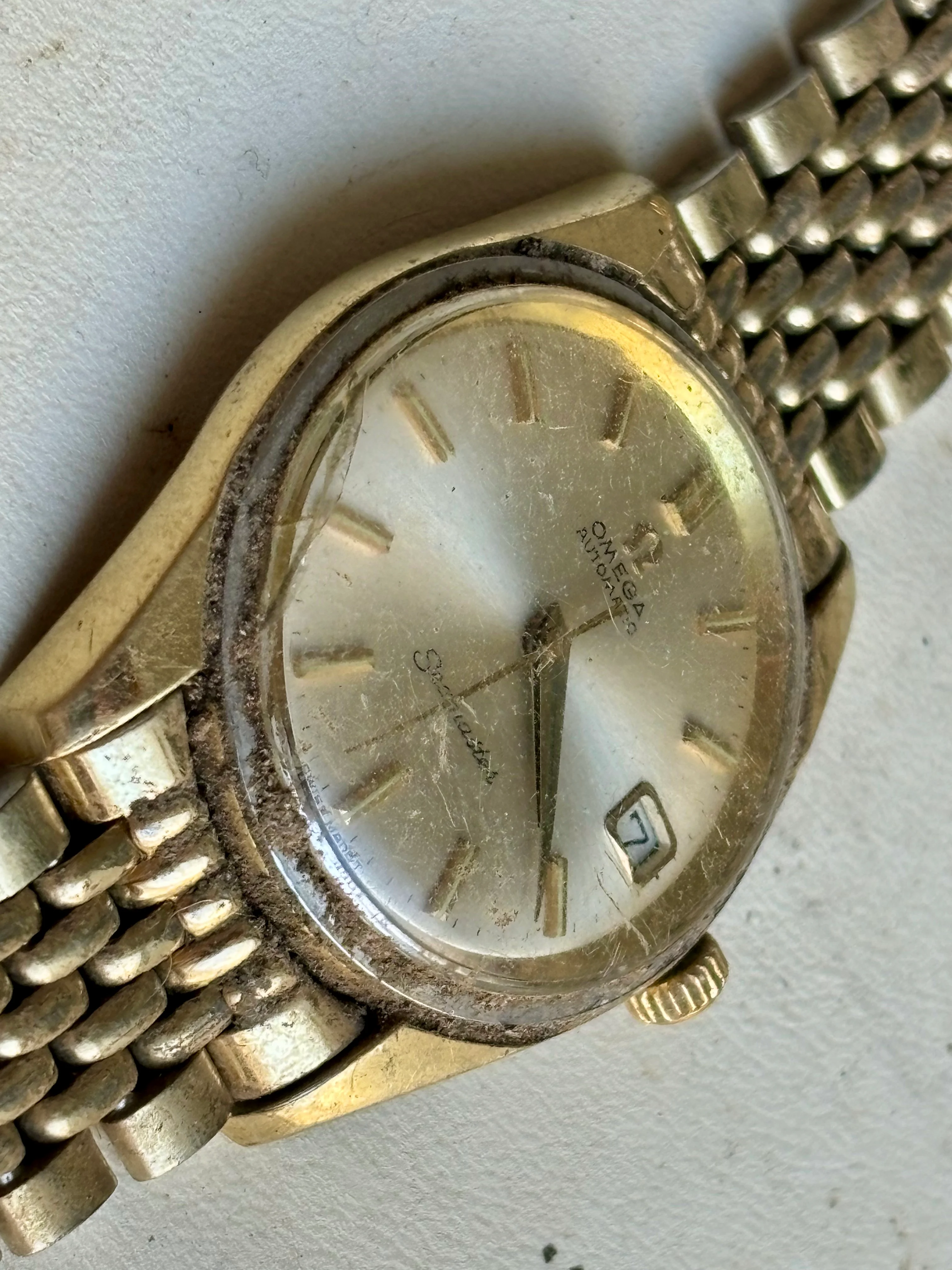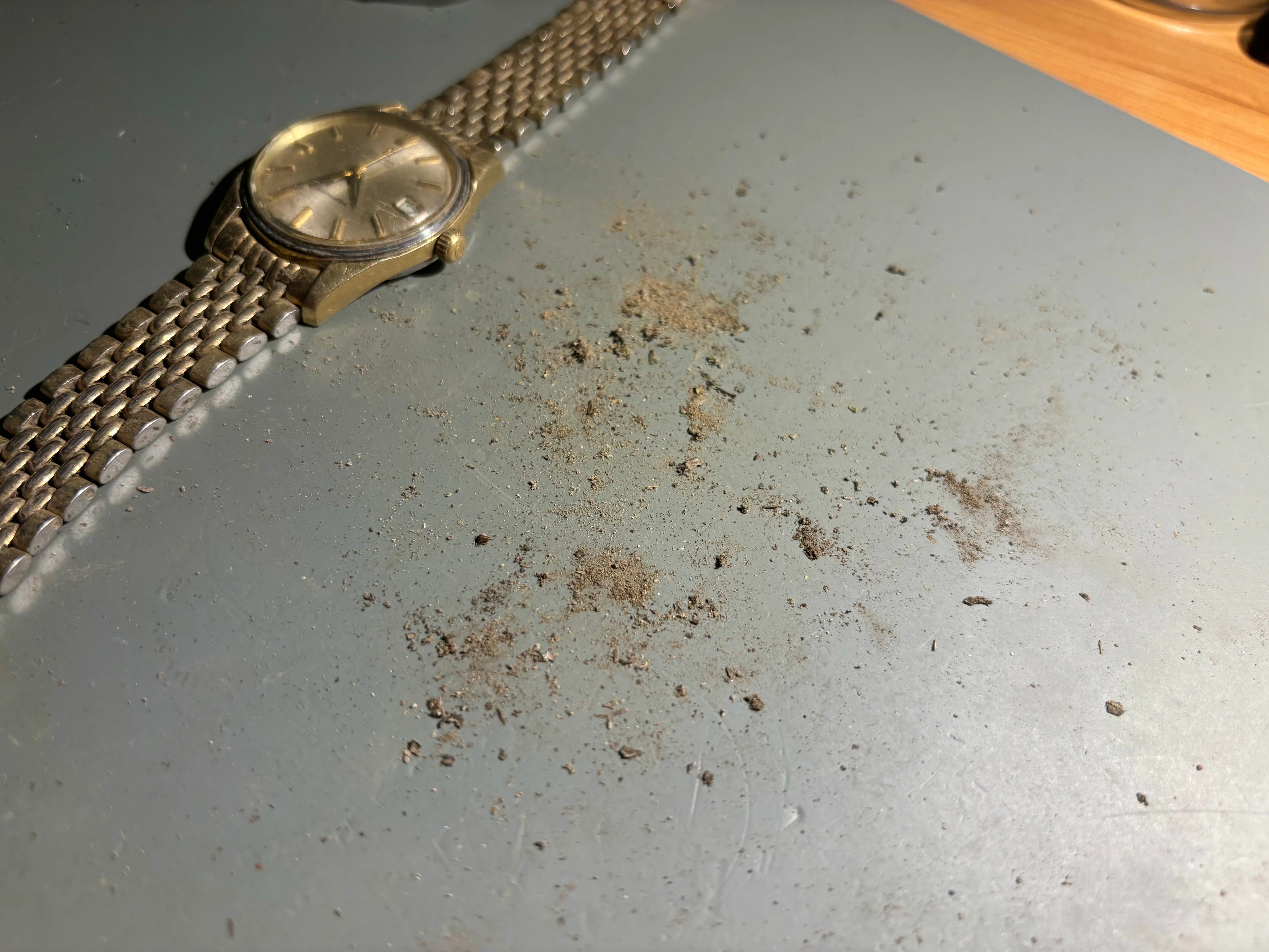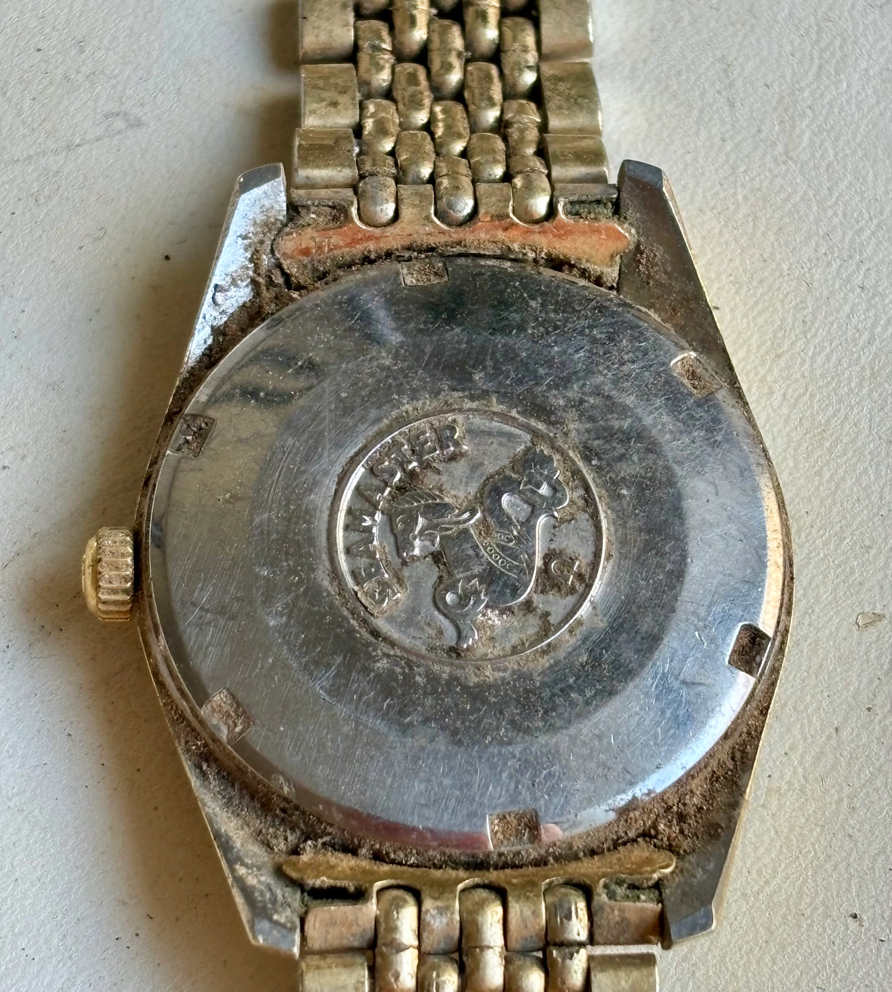 This watch was found by a trash disposal company worker right before it was gone forever , and except the missing bezel and a lot of dirt it is in nice condition , even still working .