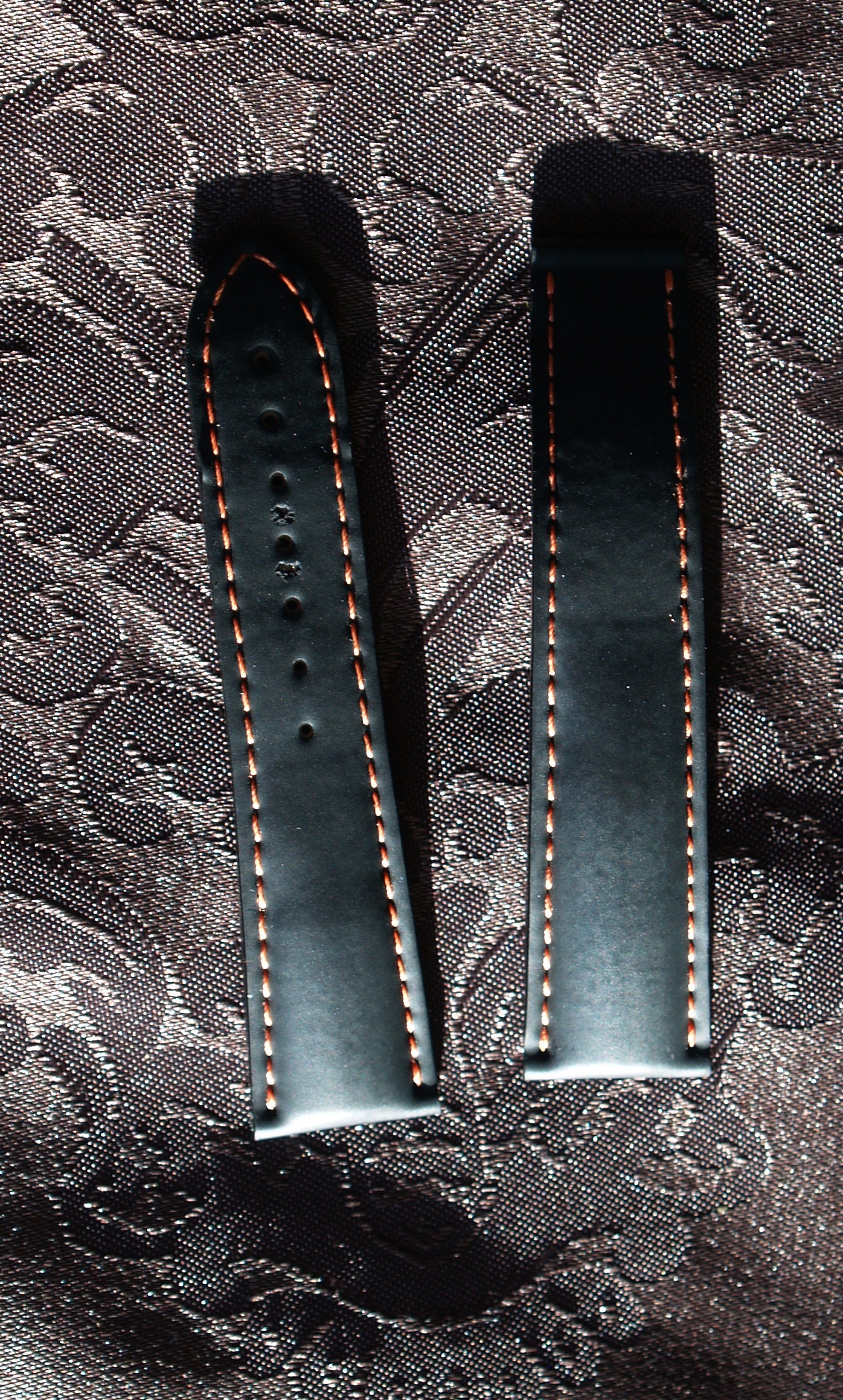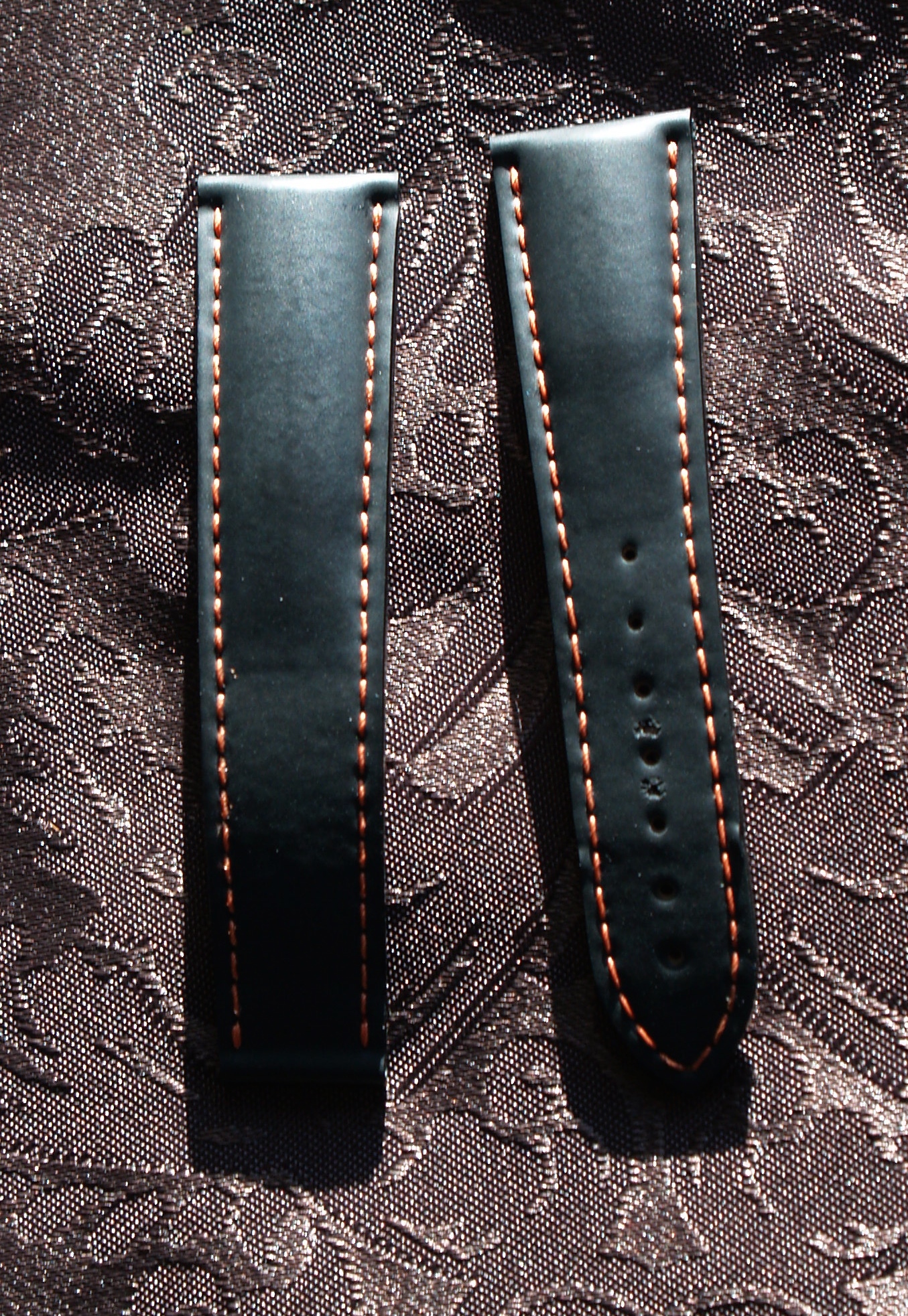 It is a 22mm black rubber with orange stitching deployment strap for the Planet Ocean watch and deployment buckle. mint condition.