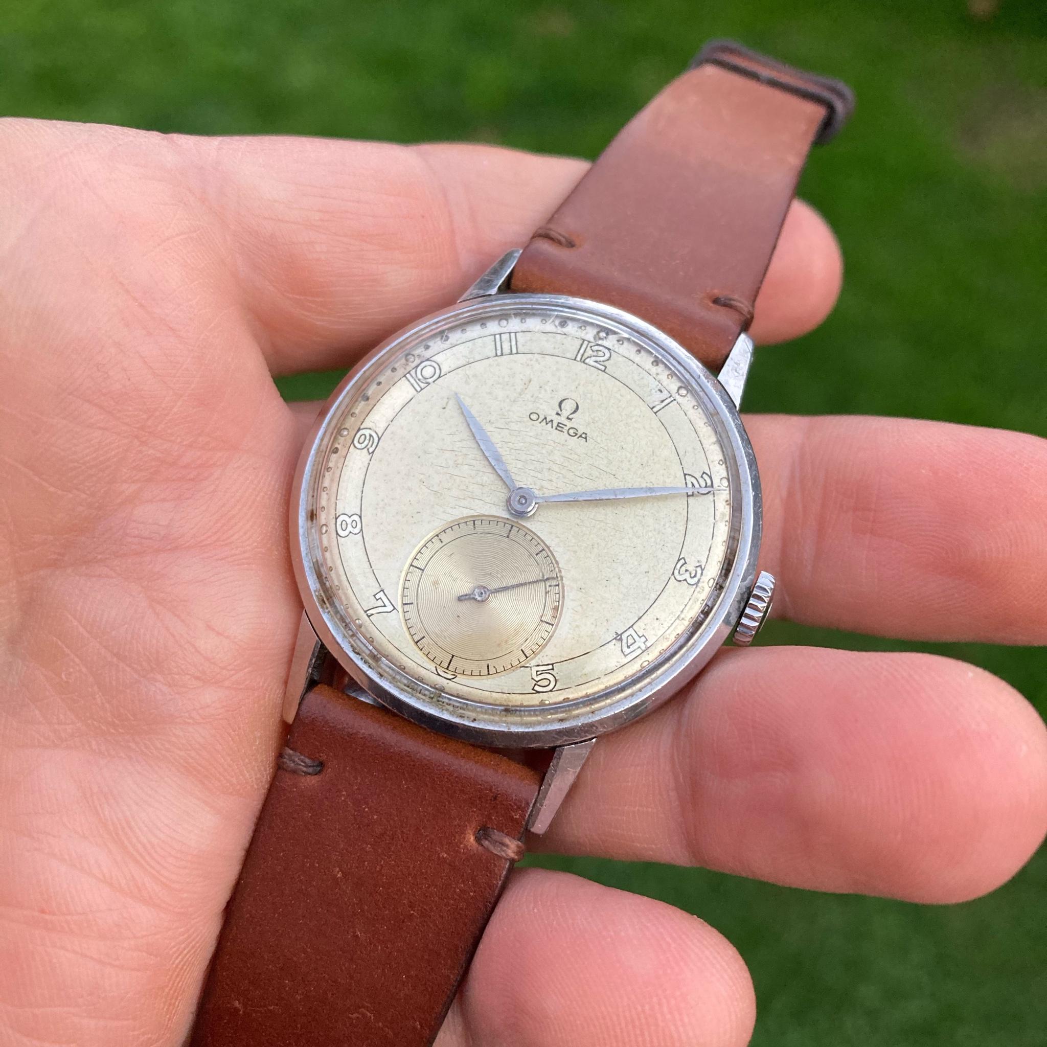 Posts 13,095 Likes 17,950 gatorcpa ·Nov 1, 2021·ΩF InvestiGator 1. I think the watch was redialled. The “Swiss Made” is too far apart for this particular model. Here is an example of a Ref. 2272 which I believe has an original dial: https://omegaforums.net/threads/omega-2272-10-jumbo-37-5mm.120274/ 2. Either the seconds hand is too small, or it is a replacement. Just doesn’t match up. 3. What is that case screw doing in the middle of the movement? This would be a hard pass from me. gatorcpa