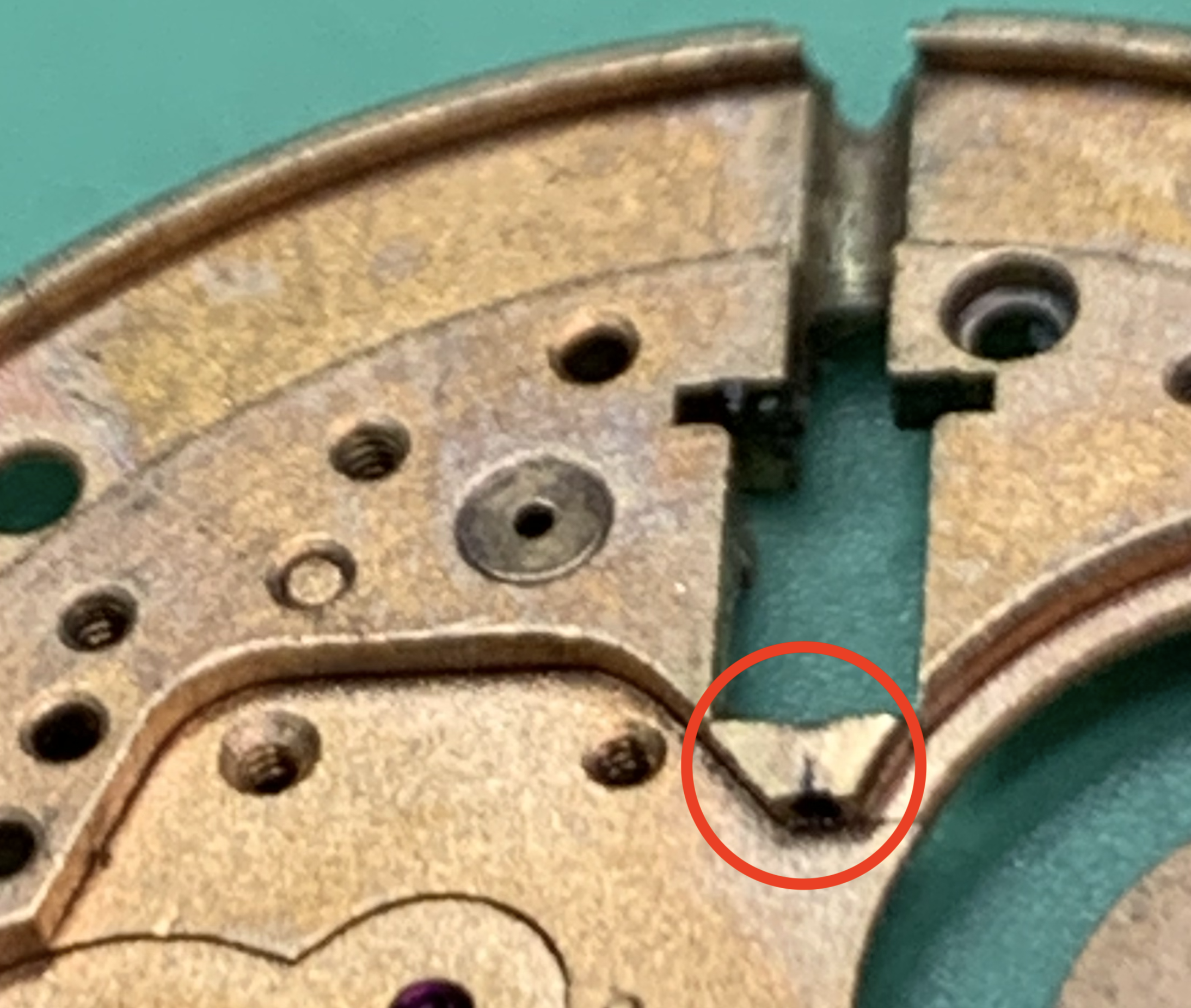 One thing was evident when I transferred the parts to a see through box was that there was no balance. (or balance jewels. I also thought the 4th wheel seconds pinion was snapped off. (Look again -- this is center seconds.)