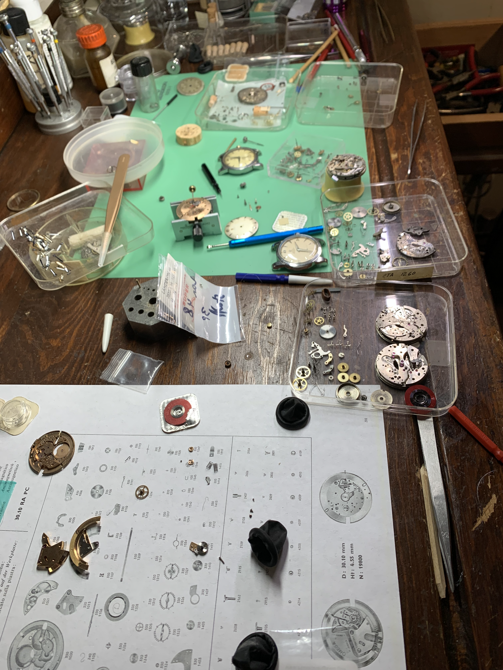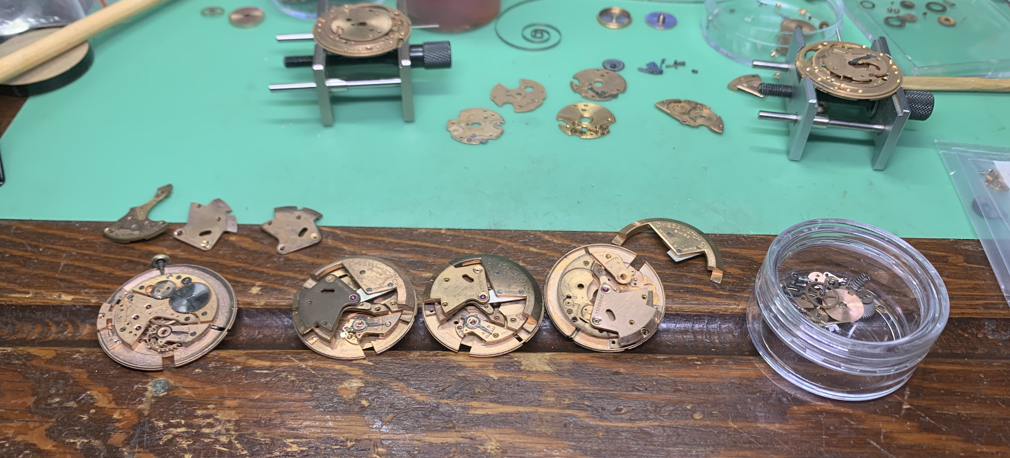 The project also started with one movement and has expanded into a dozen or more movements. Over the last few years these got mixed together. Parts swapped in hopes of coming up with some wearable watches.