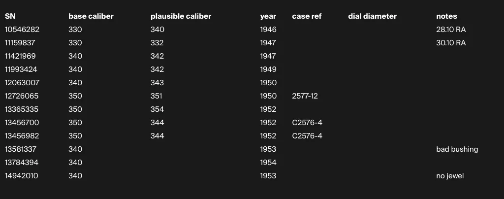 A reason for rewriting this opening post is to create a table of serial number plates and possible case references and such. The forum supports BB code tables, so why not use them. (did not work -- had to caputure a screen shot. from the post preview.)