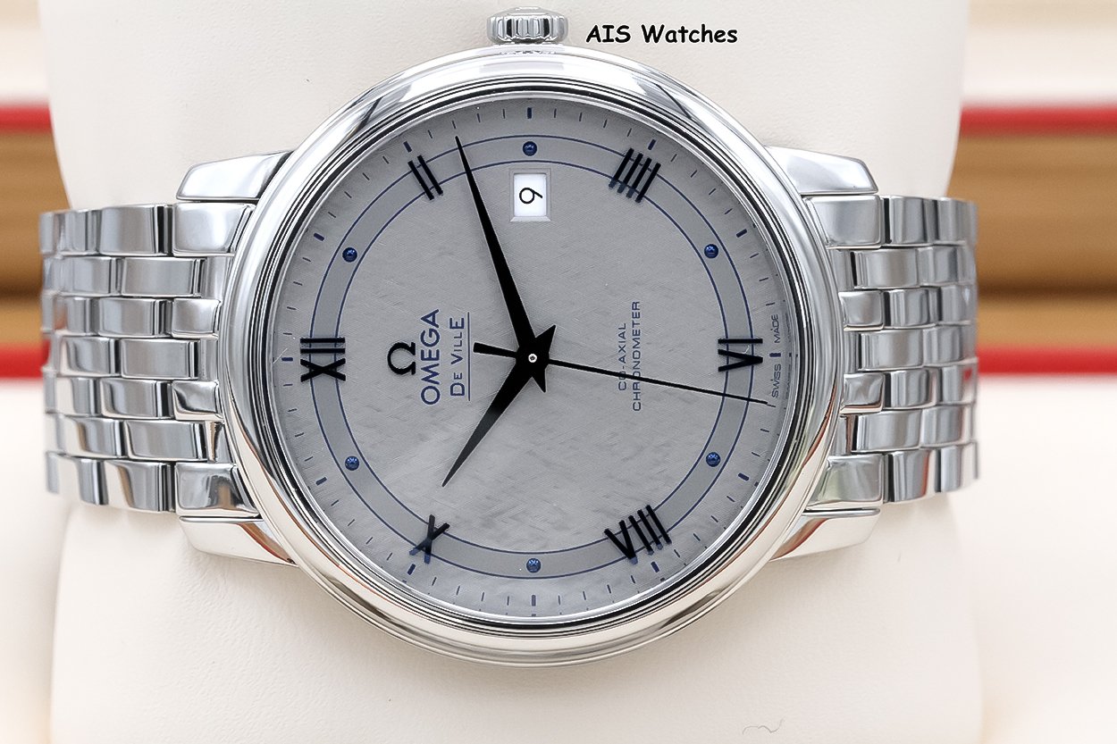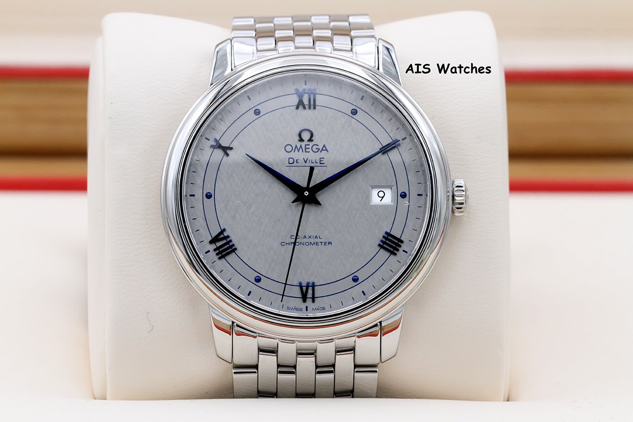 Up for sale is an Omega 424.10.40.20.02.001 De Ville Prestige Co-Axial 39.5MM Vintage Silver Dial Box & Papers. The timepiece is in excellent condition.