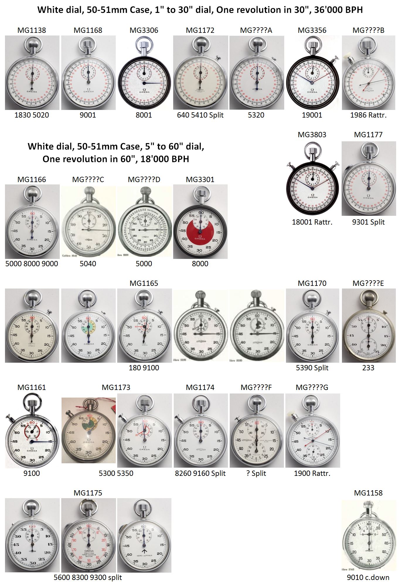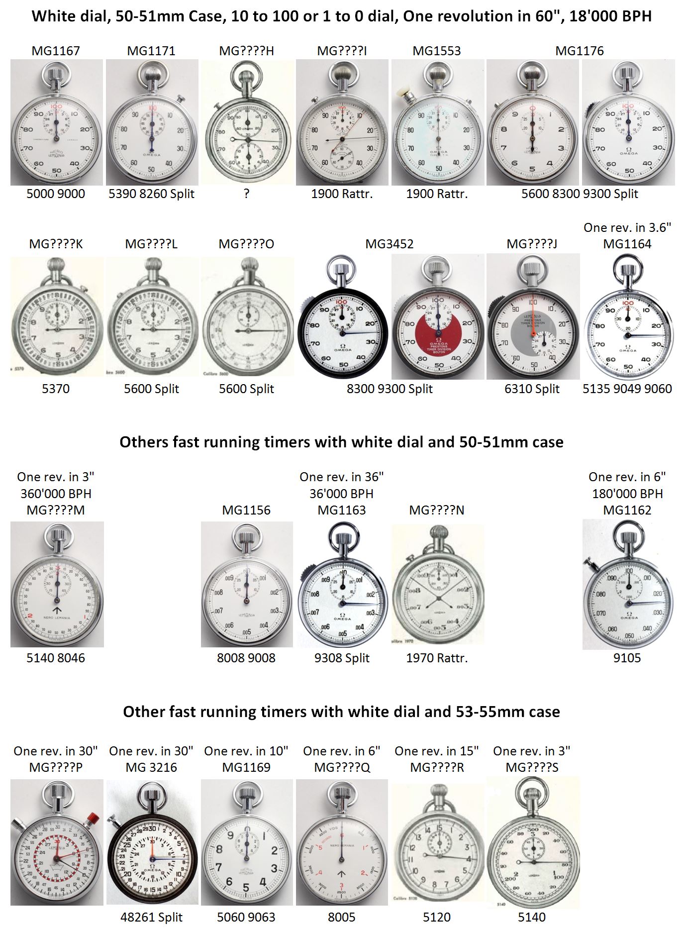 ·Here is the result of some compilation work about Omega and Lemania Timers. It's based on my own collection, some old Omega and Lemania catalogues and of course the Omega "A Journey through time" book from M. Richon. I'd be very happy to get more information... but it's hard to find... let me know...