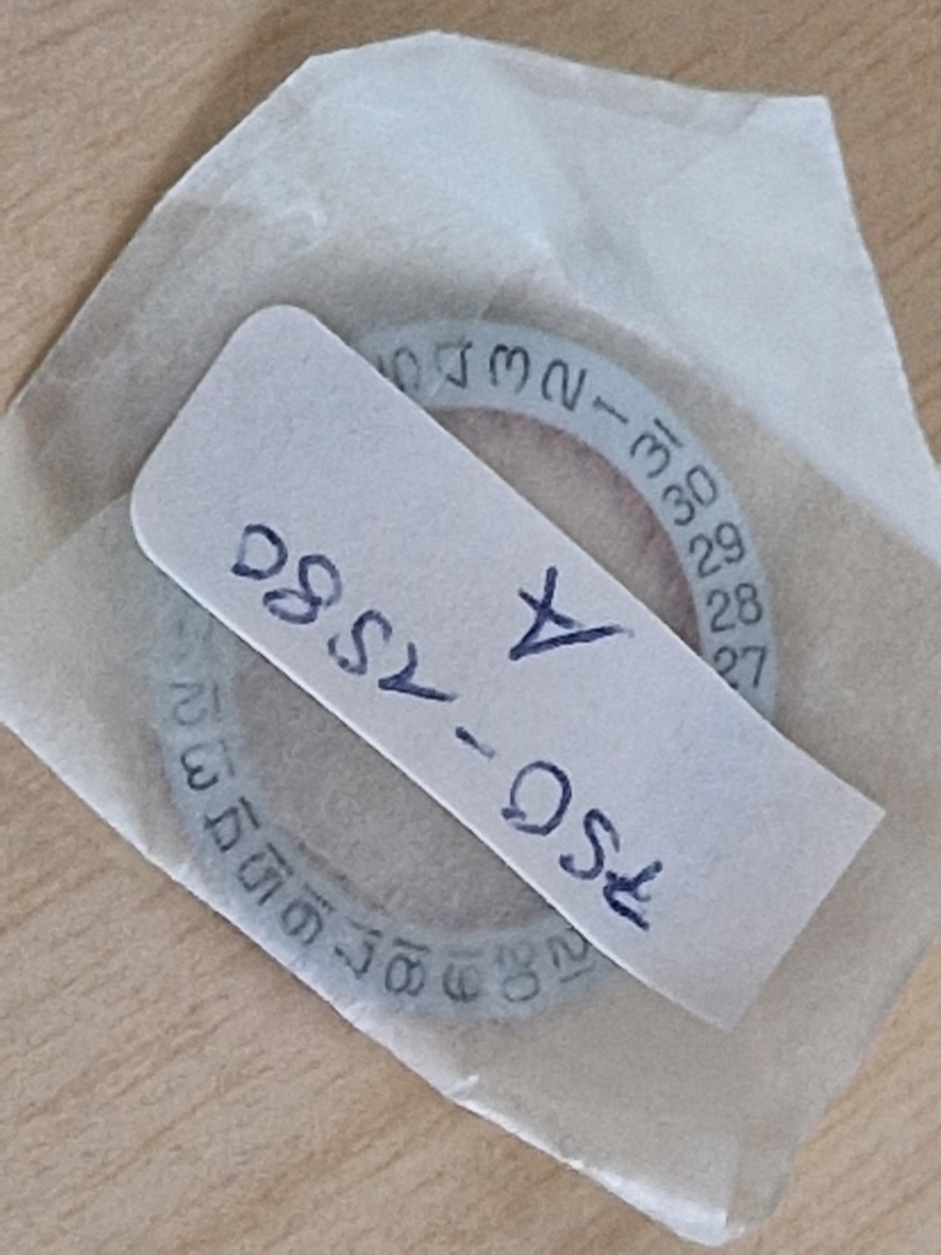 I've looked into the parts, and it would appear I require Omega part number 1500 A , which is the silver calendar disc with black date numbers.
