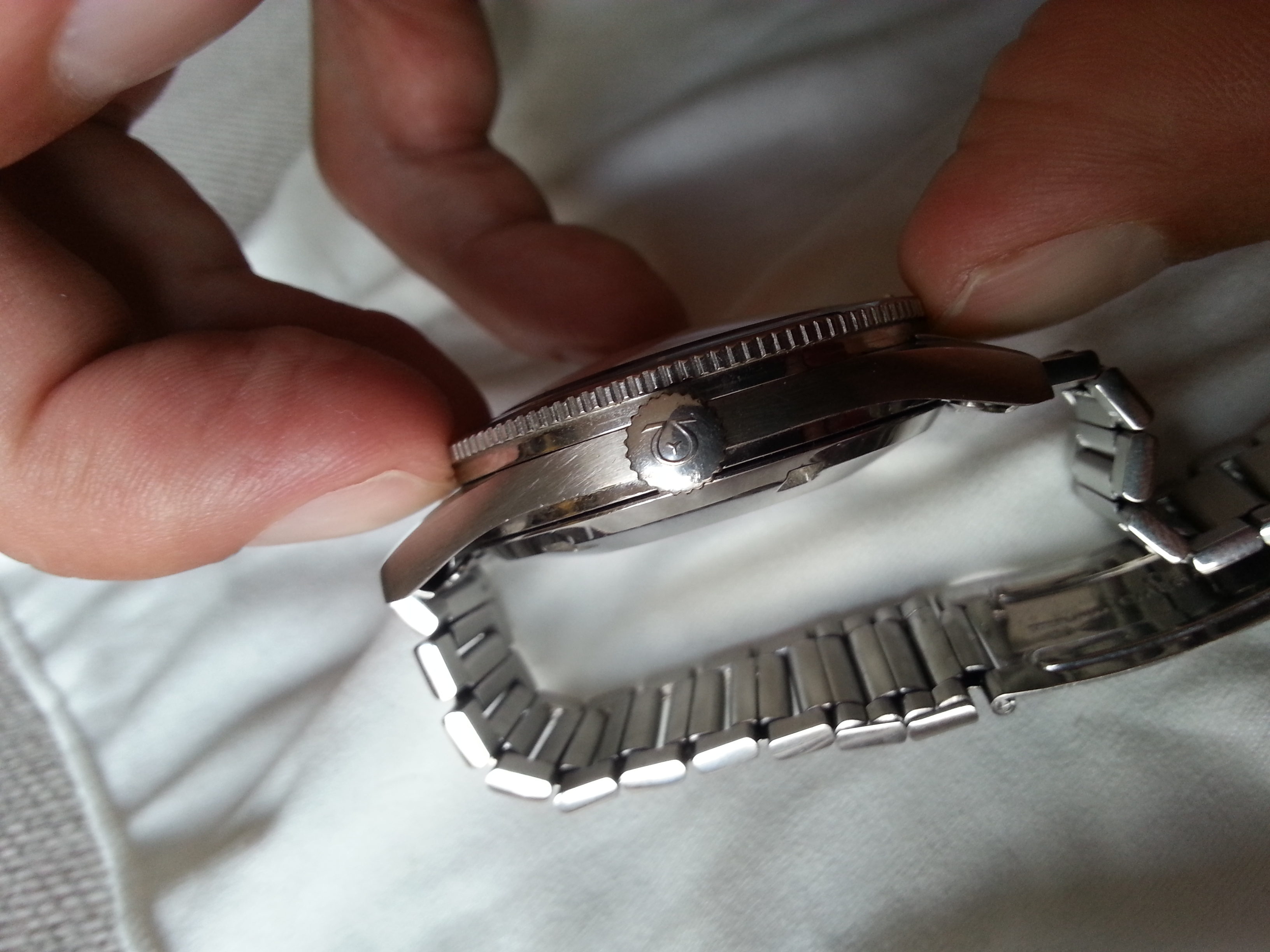 The dial has strong and deep patina, orange +++ just like the hands and the bezel pip. Please note a mark near the 300 and a loss of luminous on the minute hand. The bezel is the original one, original plexy without a scratch. The watch gains 15s a day so do not need a service in a near future. Bracelet with elastic parts has a sign on the short clasp 60/4 but end pieces are not "6" (617).