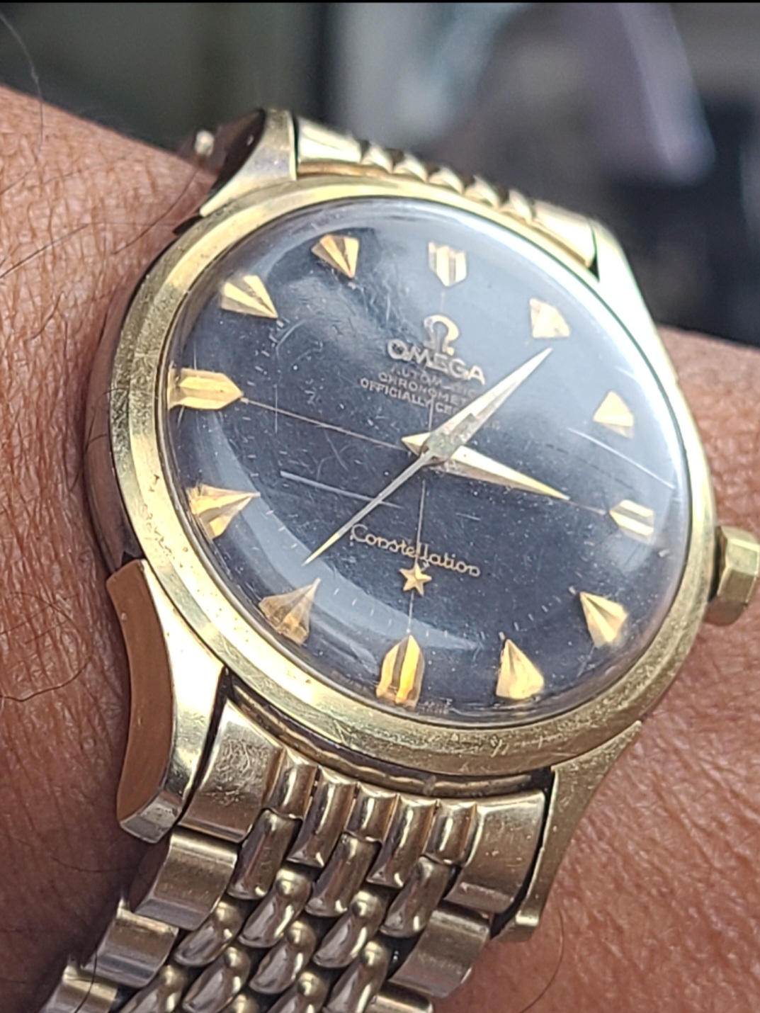 I'm looking for a mint glossy black dial, pie pan with arrowhead markers, that's the top of my list.