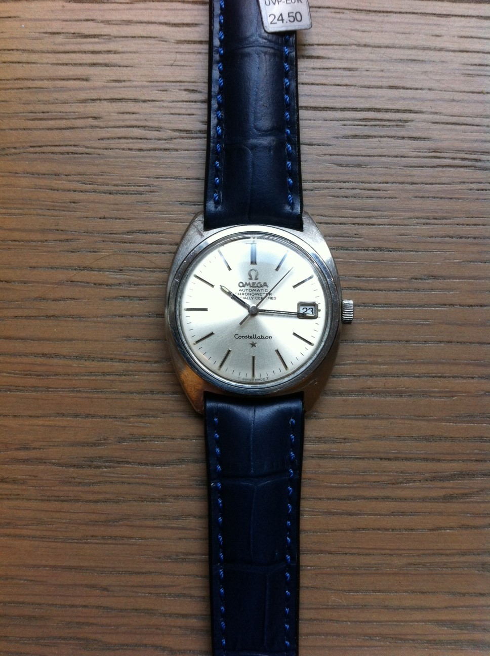 ··not the sharpest pencil in the ΩF drawerFor sale is a very nice Omega Constellation Chronometer Date. Reference: 168.017. Case: 34mm. Serial: 26.8m so +/-1968. Comes on a brand new strap. No known servicehistory but runs nice. Movement: automatic Omega 564 with quickset date. Asking: EUR 500