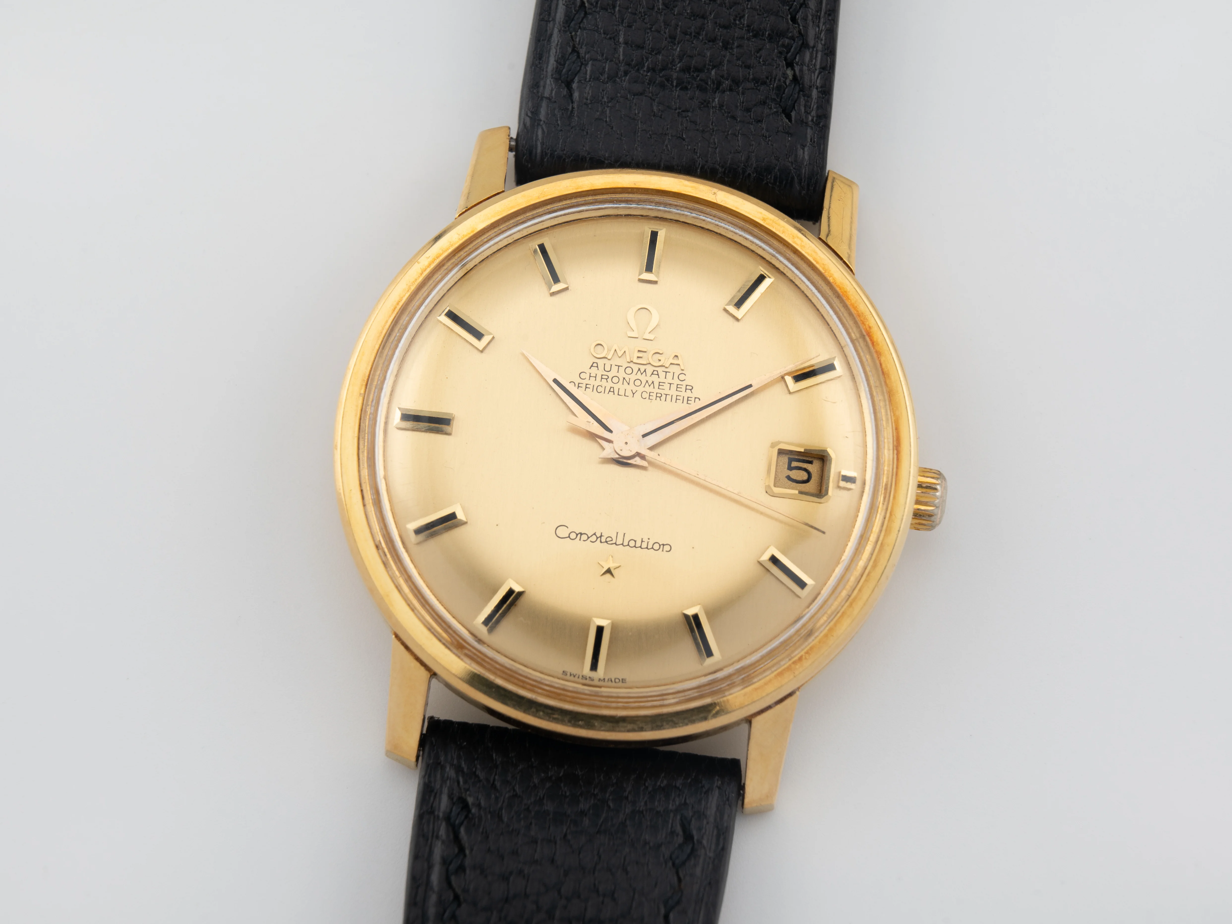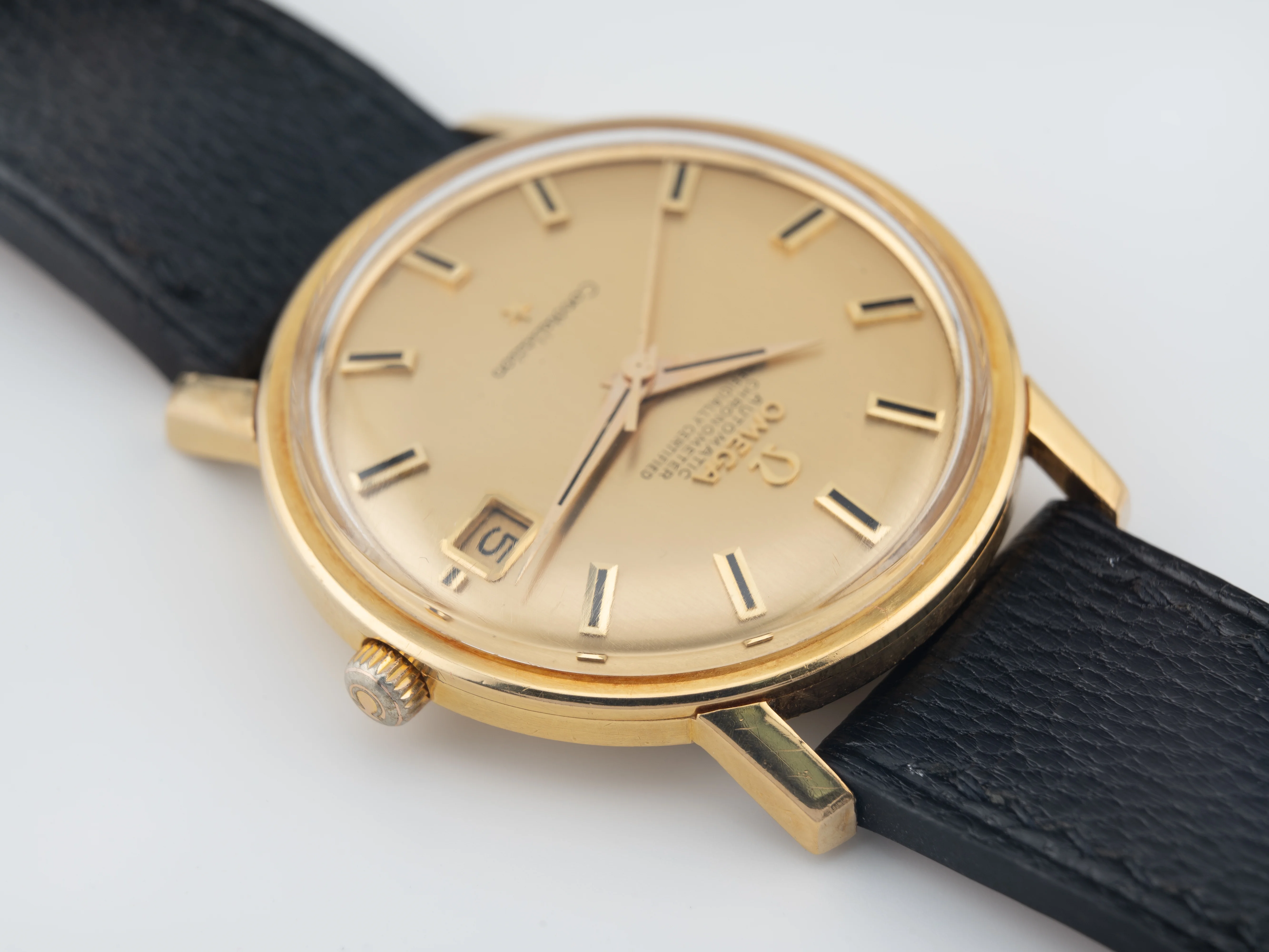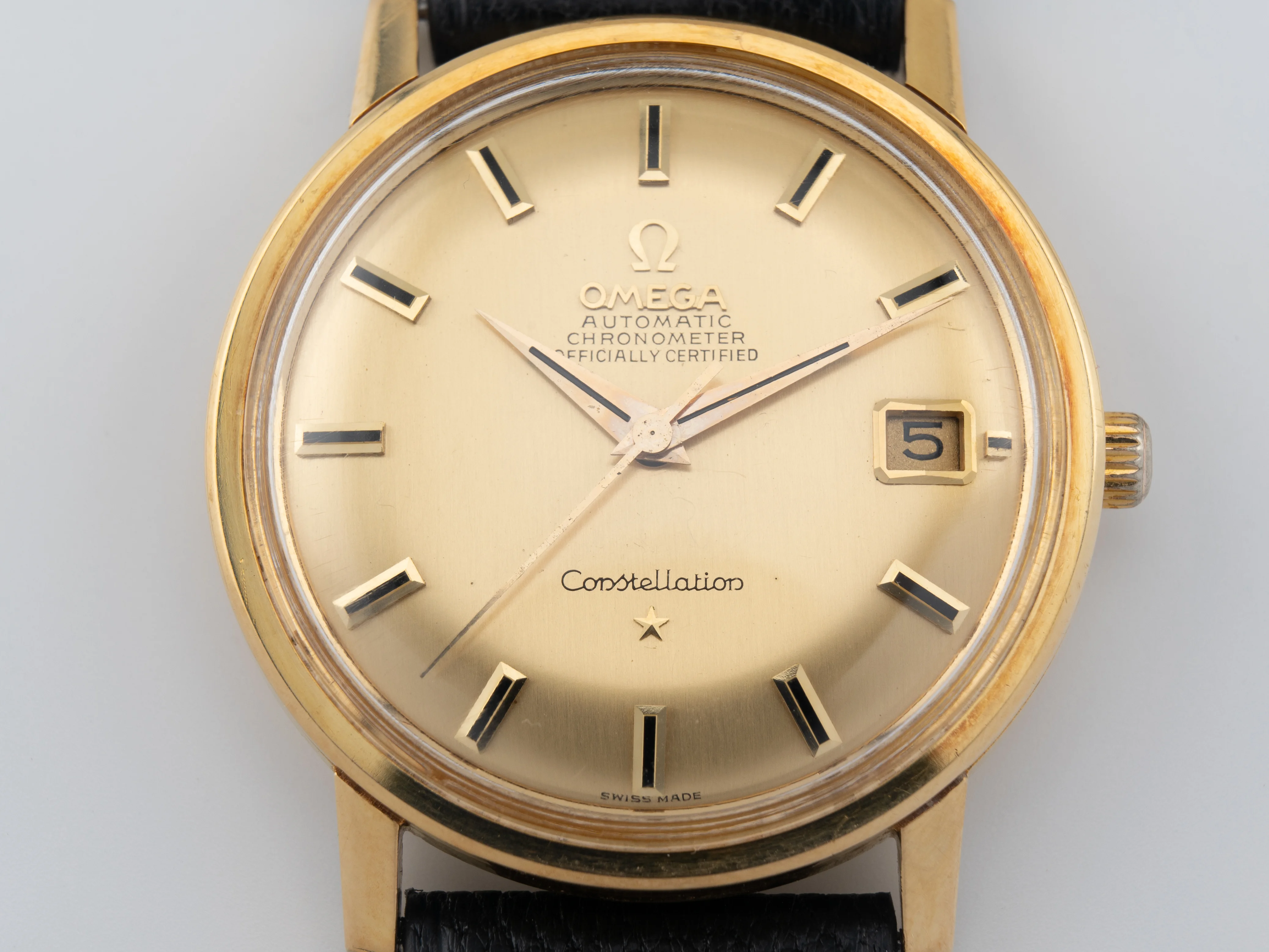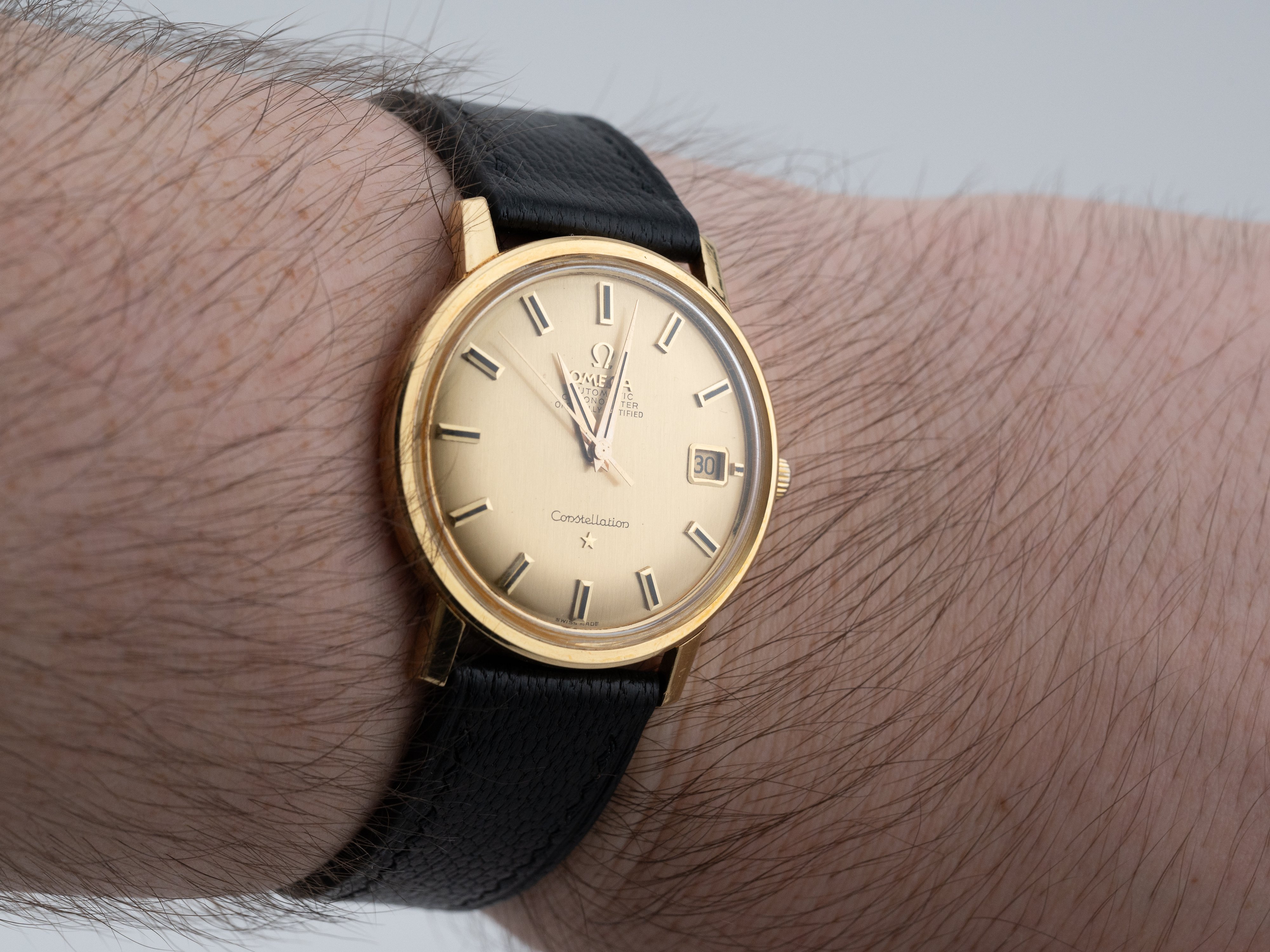 ·I'm putting up for sale my 18k yellow gold Omega Constellation Deluxe, reference 168.010/11, powered by the automatic cal. 564. I wrote about this one when I originally bought it, and got some good feedback from the forum. Since then, I got it a nice strap and sent it for a service. Selling because I got a couple of other gold watches and this is getting no wrist time. It's a pity because it's a beautiful watch.