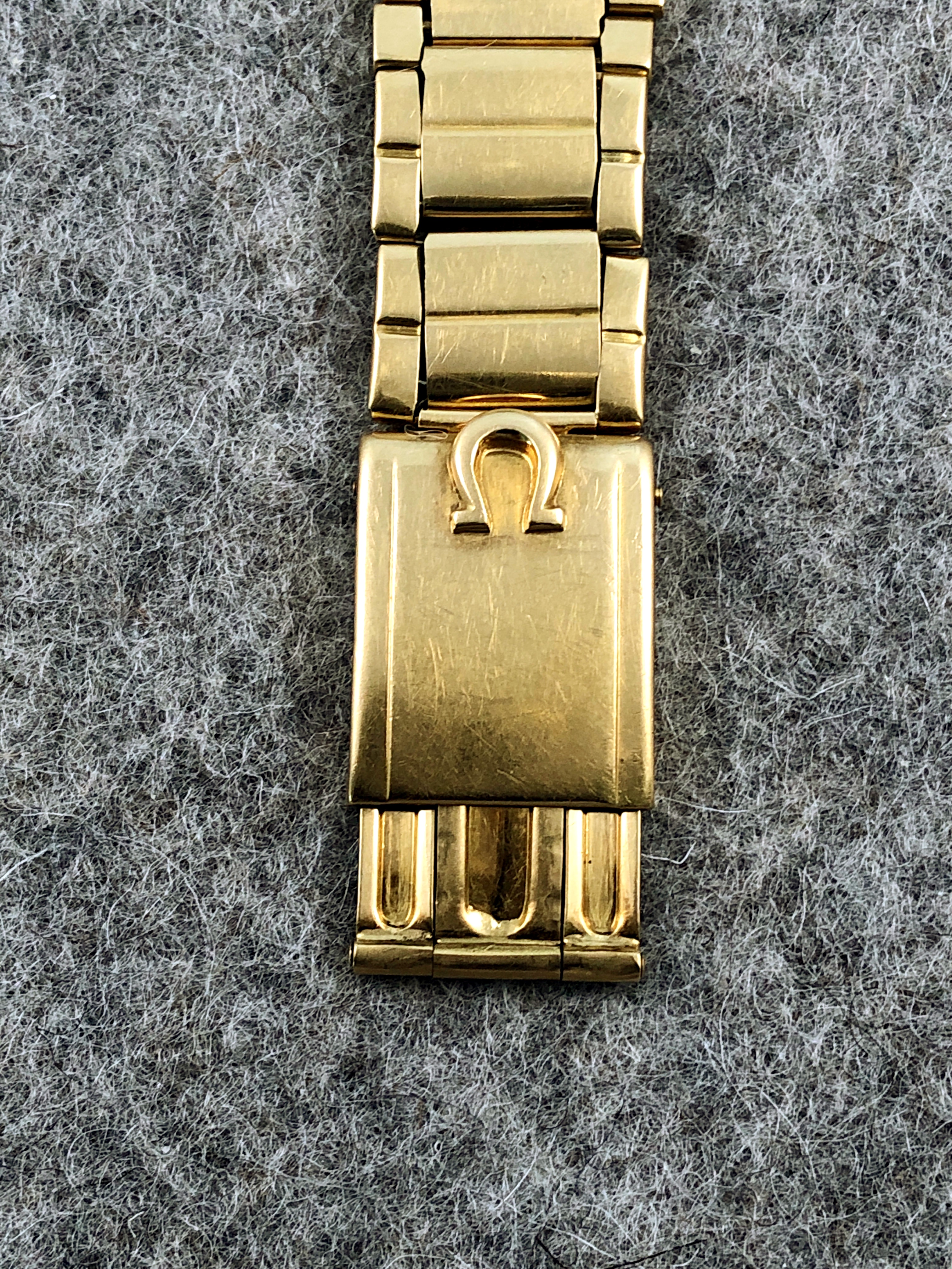 Case: 18K yellow gold case in excellent condition with the caseback and caseback emblem looking crisp and untouched. 18K yellow gold bracelet ref 7077 in very good condition with four stretch links, two need new springs. The bracelet will fit a wrist of up to 7 inches.