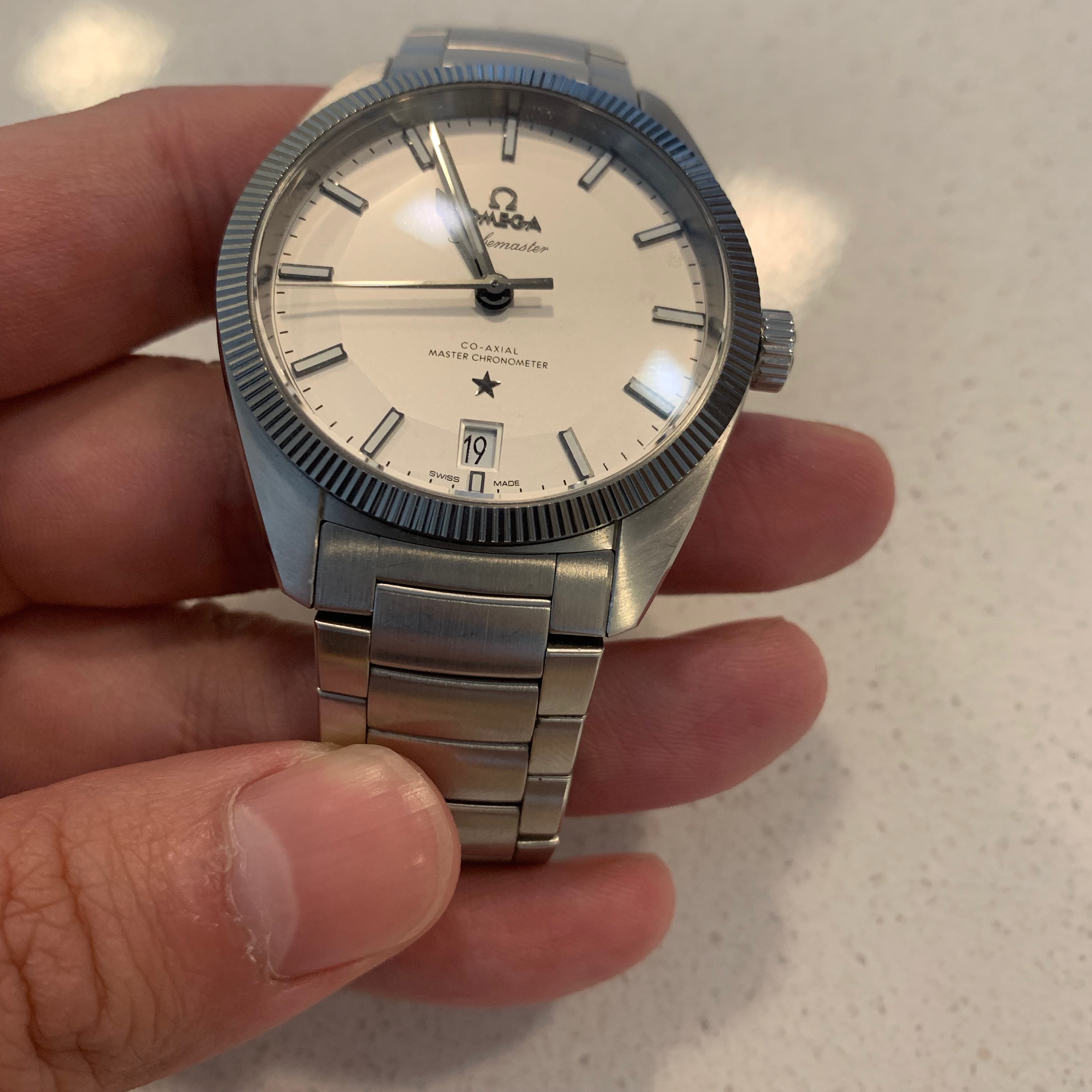 I hope everyone is having such a good day! I am here with good and bad news. I am putting my beloved Omega Constellation Globemaster up for sale. I am absolutely in love with this watch. Everything from the matte white dial that seems to change colour from grey to white to beige depending on the lighting and the strap that you pair it with to its fluted bezel that is just so calming to run your fingers around. It’s applied indices and omega logo and that shiny silver star at the 6 o’clock is just so beautiful to look at. I love how the dial is 2D and 3D and its the only modern pie-pan dial around. Oh my… I guess I’m in love all over again. I selling this piece because I am looking to fund an incoming watch.