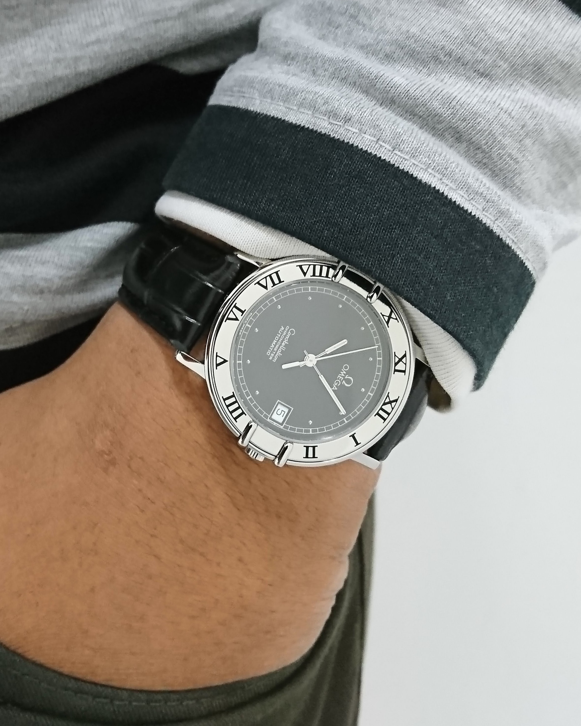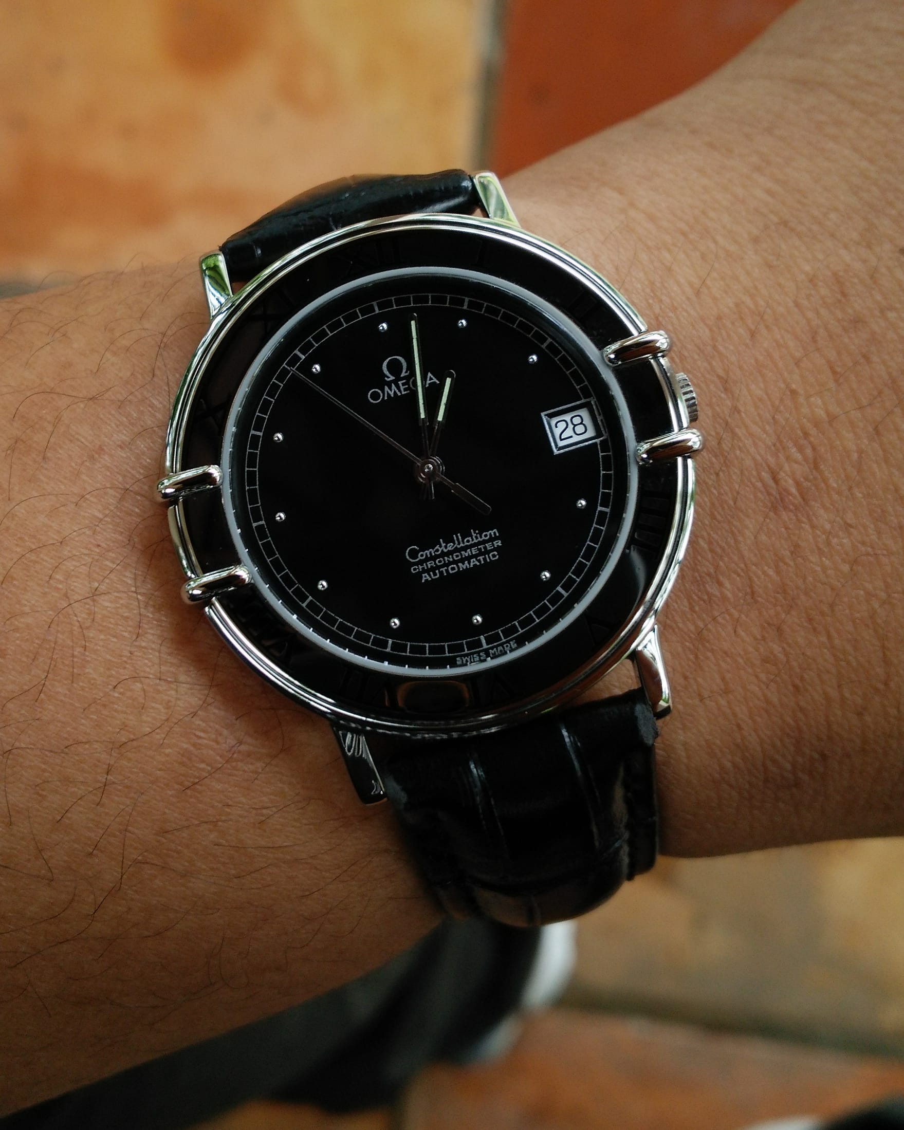 ·I picked this Omega Constellation up this week minus it's band. I know it normally comes with a stainless steel band but I'm not a big fan of metal watch bands. Does anyone know what type of band this watch requires? It's an odd set up that I've never seen before. I know there's probably an official name for this style but I have no clue. Does anyone out there know the name of the band or a way I could rig the watch to place a leather band on it?