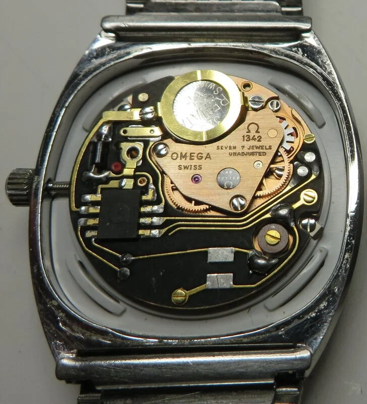 A vintage quartz movement which was used in most OMEGA watches from 1977 to 1980. The movement is an OMEGA in house movement, before they switched to using ETA based movements. OMEGA used this movement in De Ville and Seamaster watches of the era; it remains a popular movement on the second hand market.