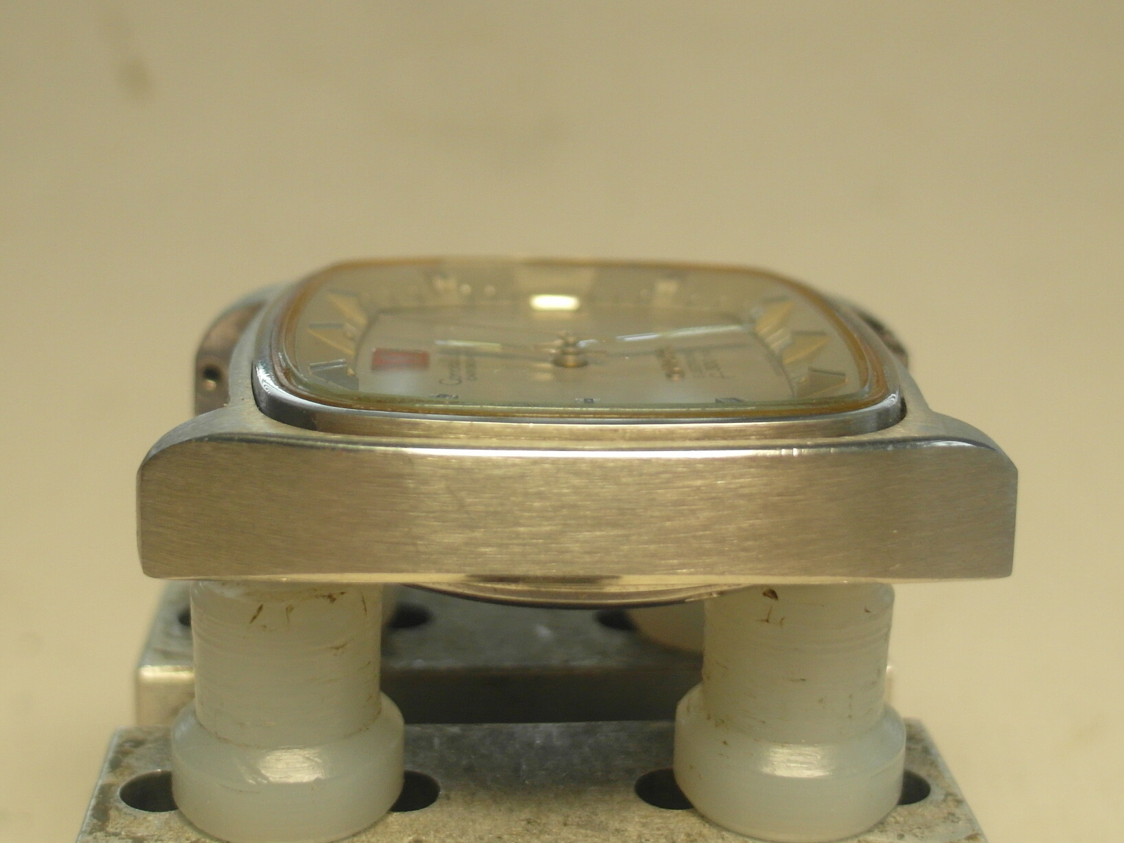 ยทthis is one of the most stunning F 300 Constellation models. perfect, used condition. unmarked case. unmarked dial. unmarked hands. perfect crystal. original crown. hardly worn ; ever. as you can see on the back. new battery. all functions as they should . keeps very good time. strong movement. this Constellation has a very strong wrist presence due to the big size case. you might say, it is the essence of the 70`s. I came to us on a nearly new 1070`s band with folding clasp. it looks like the old Omega material from this period. but I guess, it is natural rubber. Paypal with fees ok. bankwire as well; even in euros into my german bank.