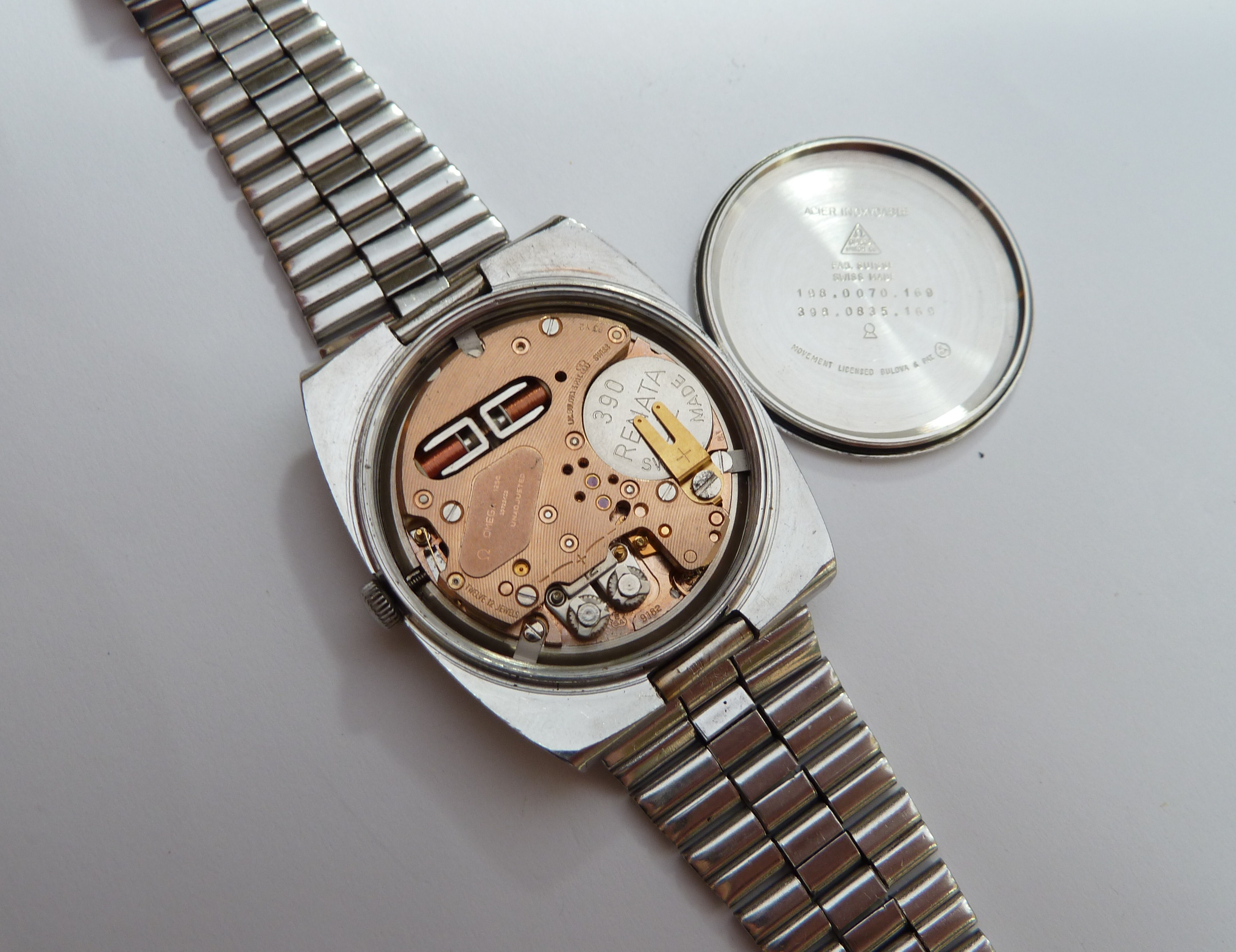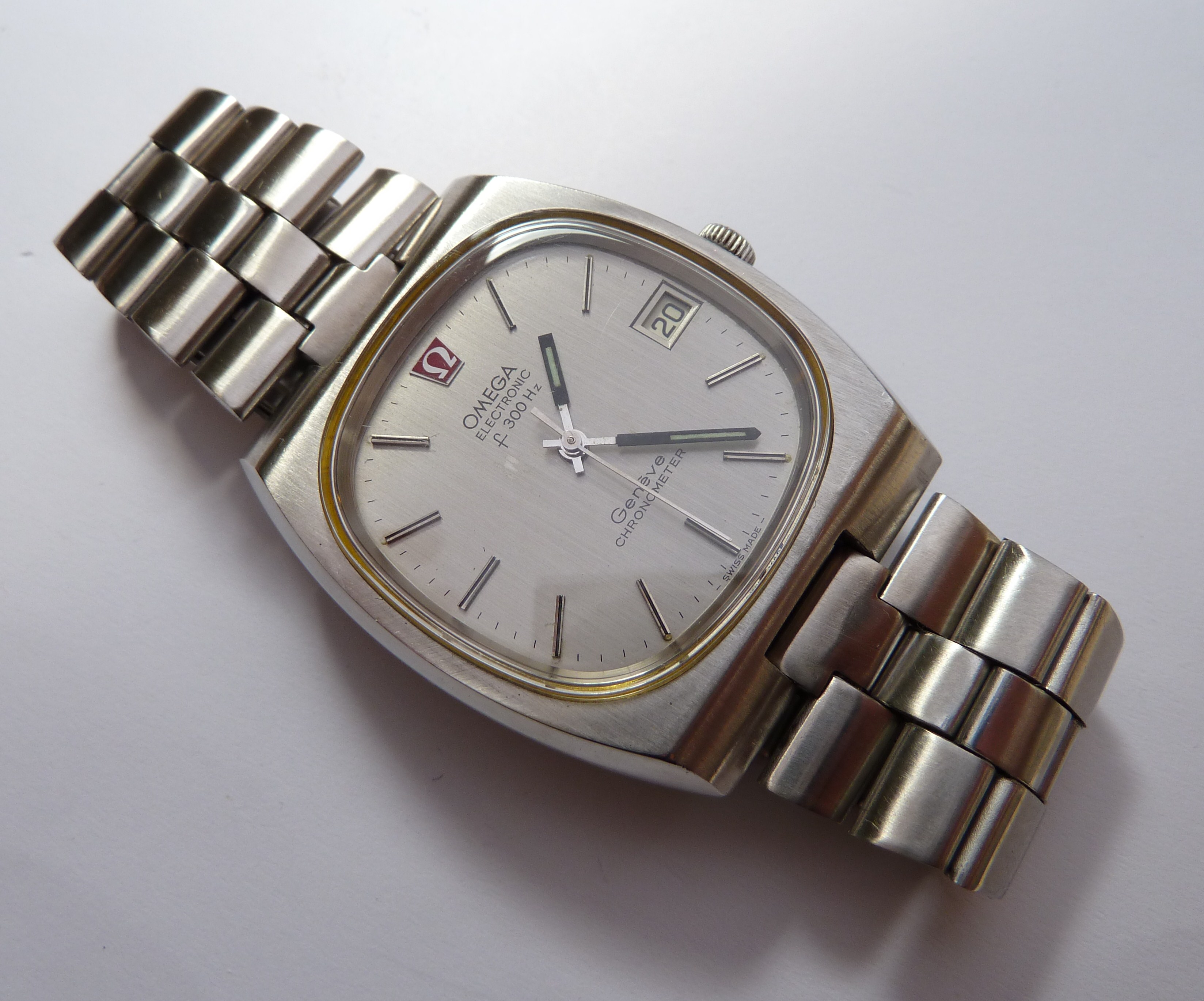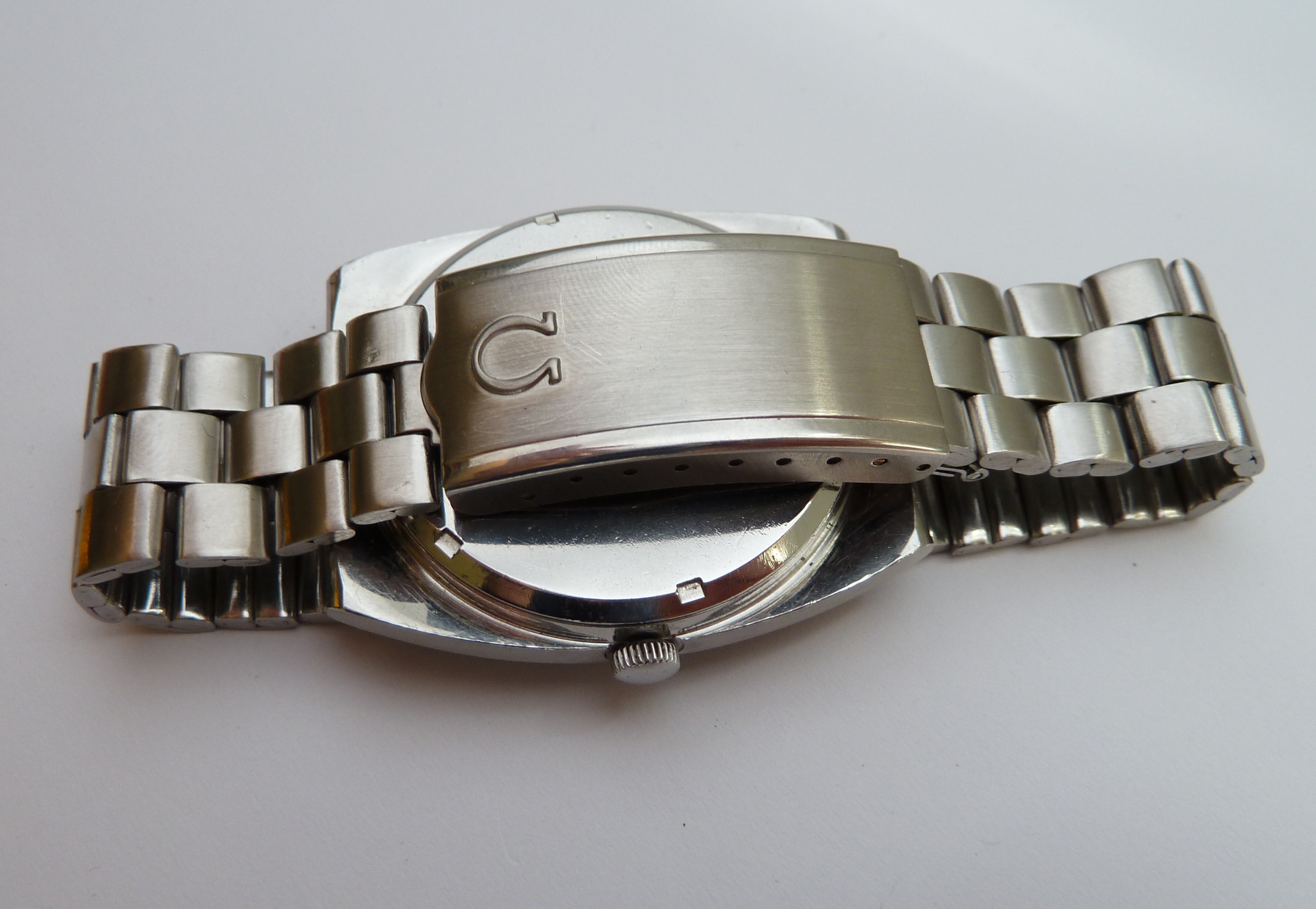 Nice clean condition. Some minor marks on the dial (near the 'f'). Recently serviced, new battery and new genuine Omega crystal. I'm not convinced the bracelet is original, but it looks the part and has an Omega clasp cover.