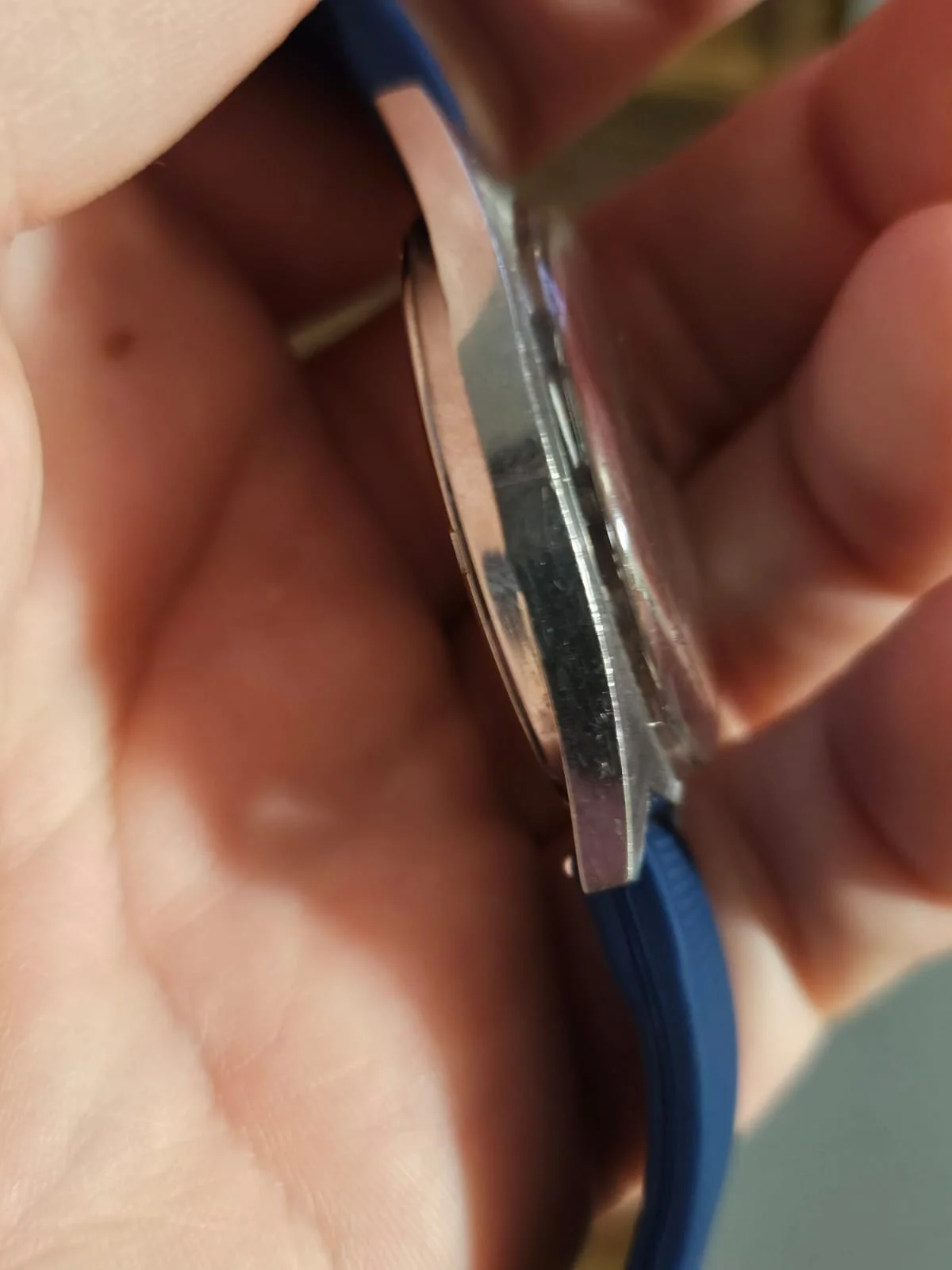Dial: Beautiful sunburst blue dial with all lume plots looking intact. A vast majority (98%) of the marks seen in the photos are on the crystal, but there is some aging and small spots/flecks on the dial as well.