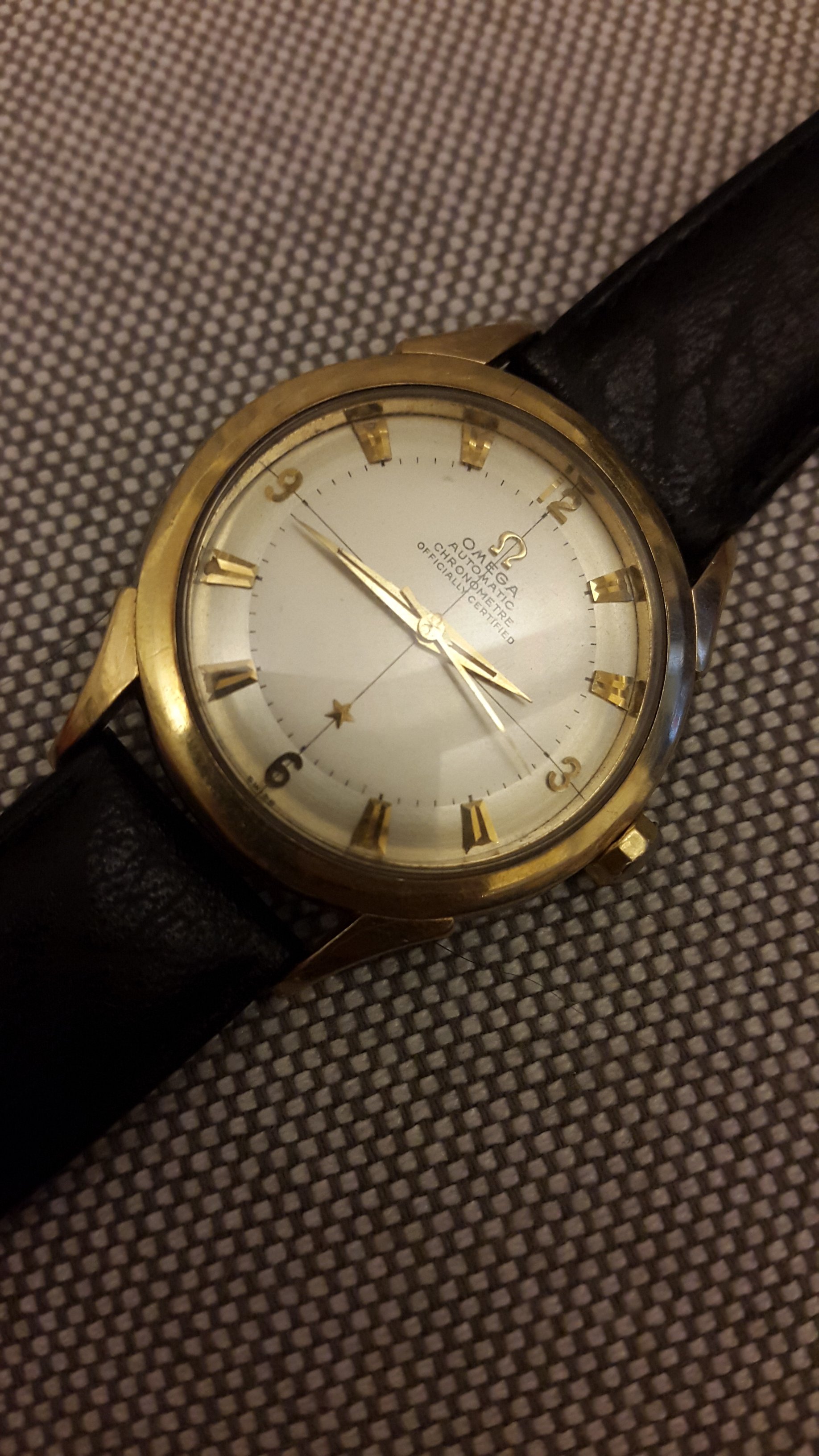 Now for some info on this watch. The beauty of this watch is the dial. It is in outstanding shape for this reference. Most have not held up this well. Only blemish is one small mark near 11 o'clock marker. Also, I believe the constellation emblem on the back to be replacement.
