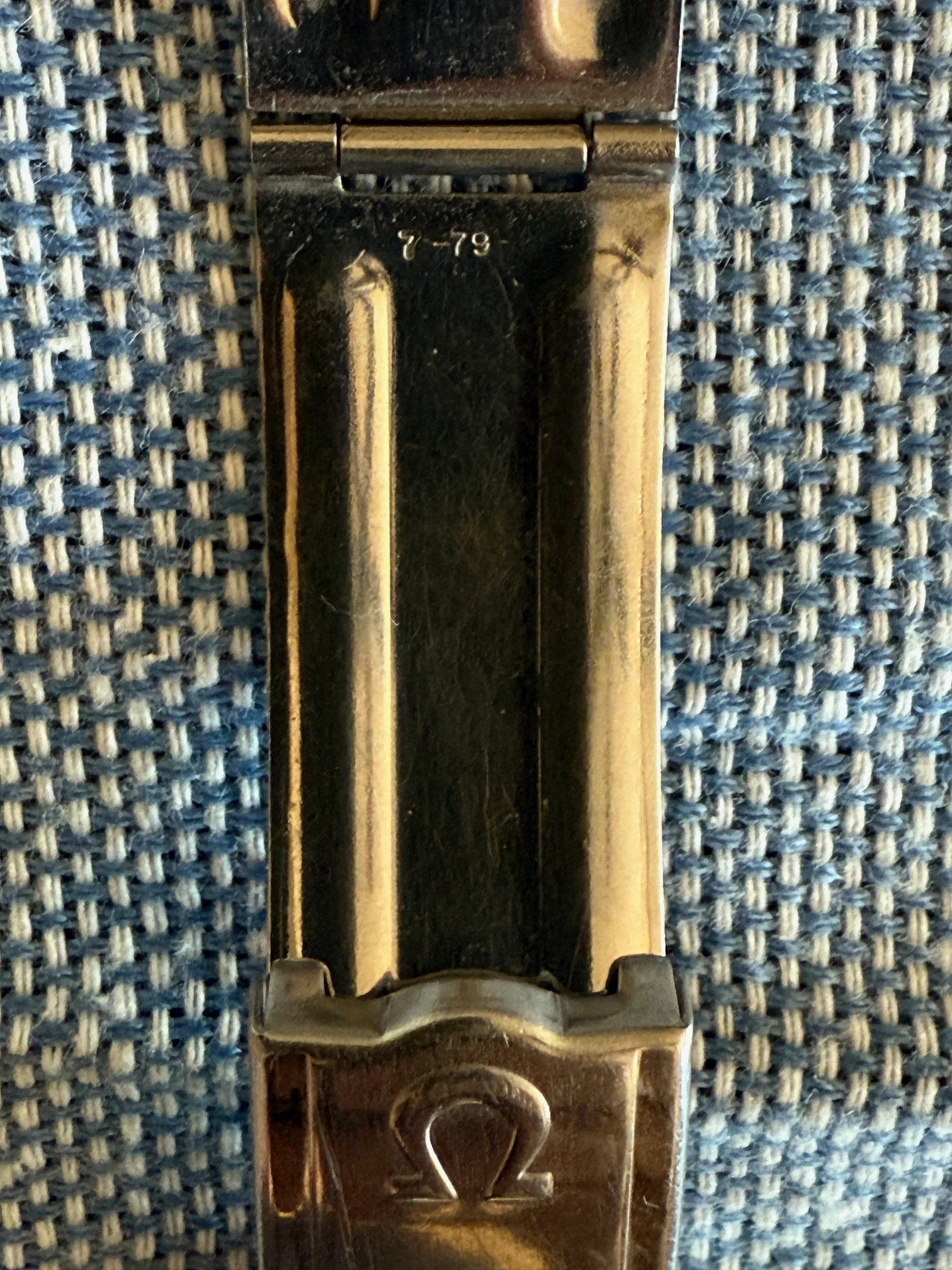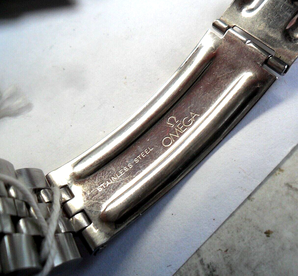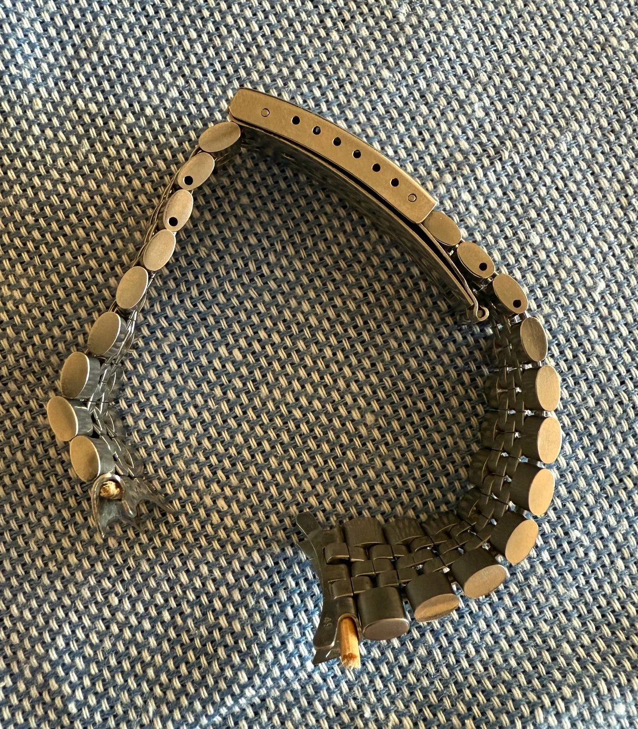 Cut to a few weeks ago, I'm again scrolling eBay at some wee hour of the morning, as one normally does, I came across a similar Omega No.12 clasp with the jubilee style round bottom links available for sale, albeit without end links. Turned out that it was the same bracelet that was posted here on OF (first set of images with the blue background). After some quick back and forth the seller and I agreed on a price, I decided to purchase the bracelet, and it arrived shortly there after.