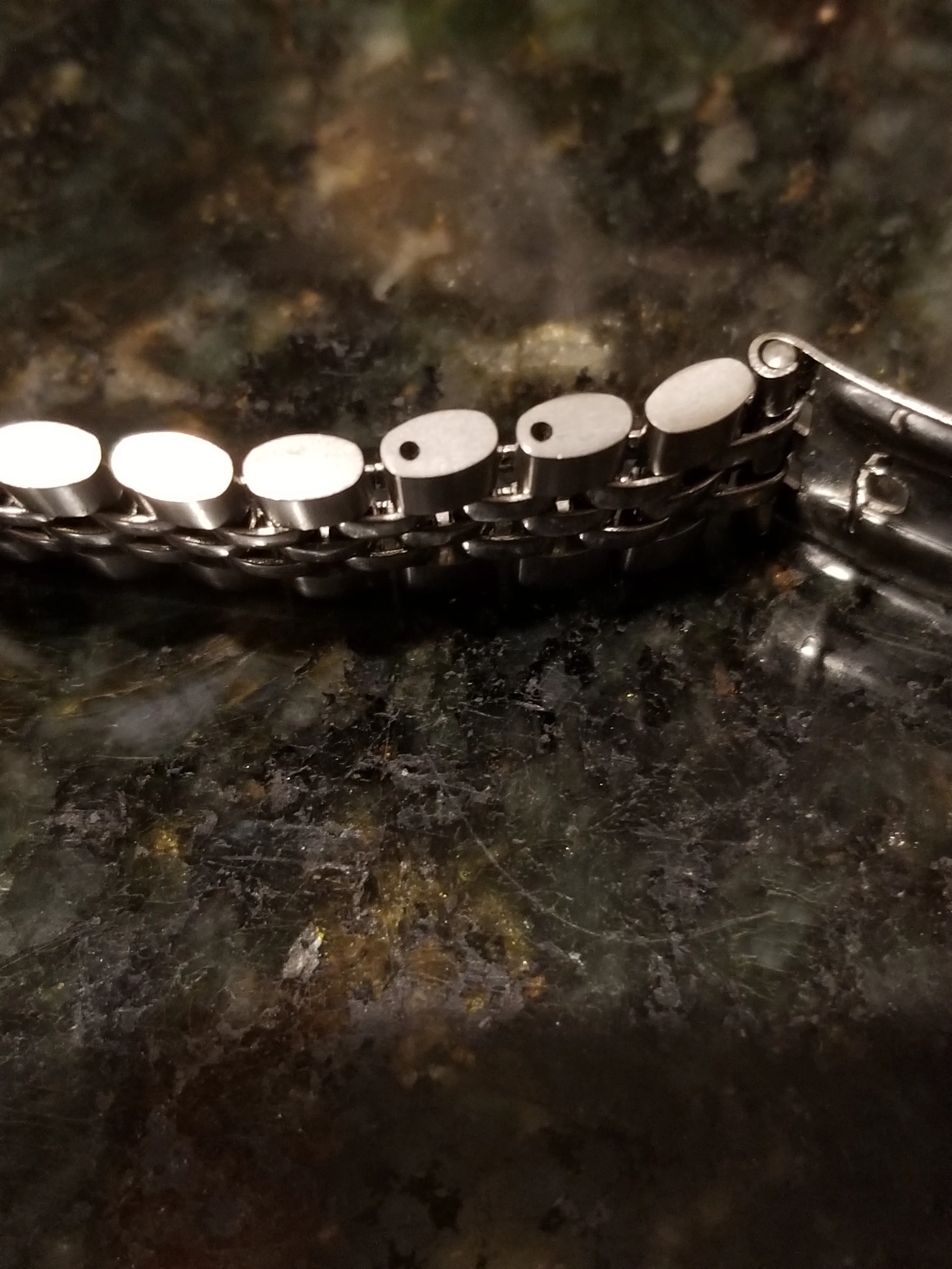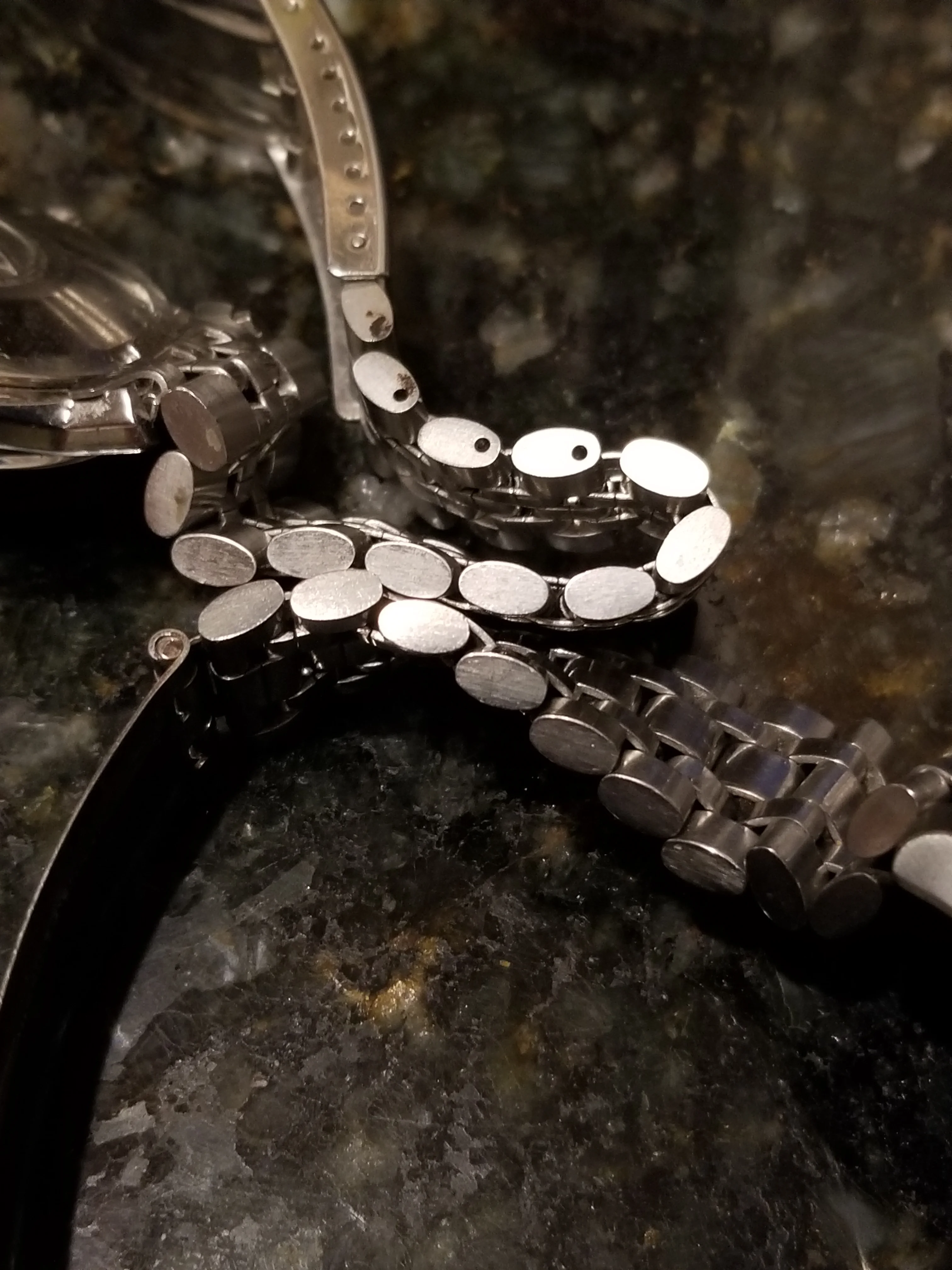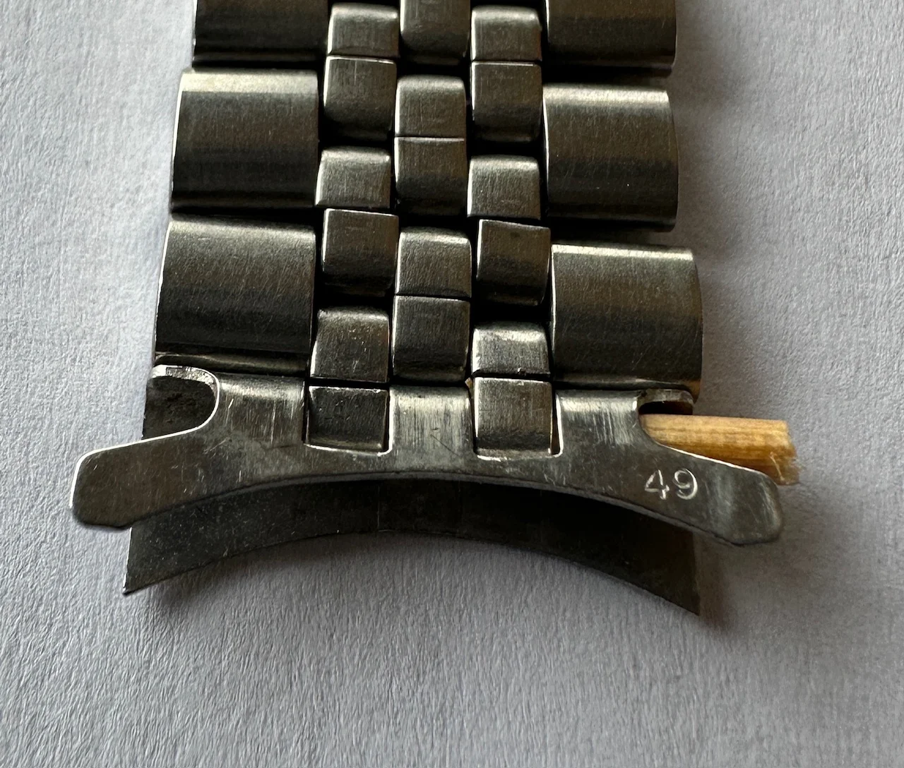 Cut to a few weeks ago, I'm again scrolling eBay at some wee hour of the morning, as one normally does, I came across a similar Omega No.12 clasp with the jubilee style round bottom links available for sale, albeit without end links. Turned out that it was the same bracelet that was posted here on OF (first set of images with the blue background). After some quick back and forth the seller and I agreed on a price, I decided to purchase the bracelet, and it arrived shortly there after.