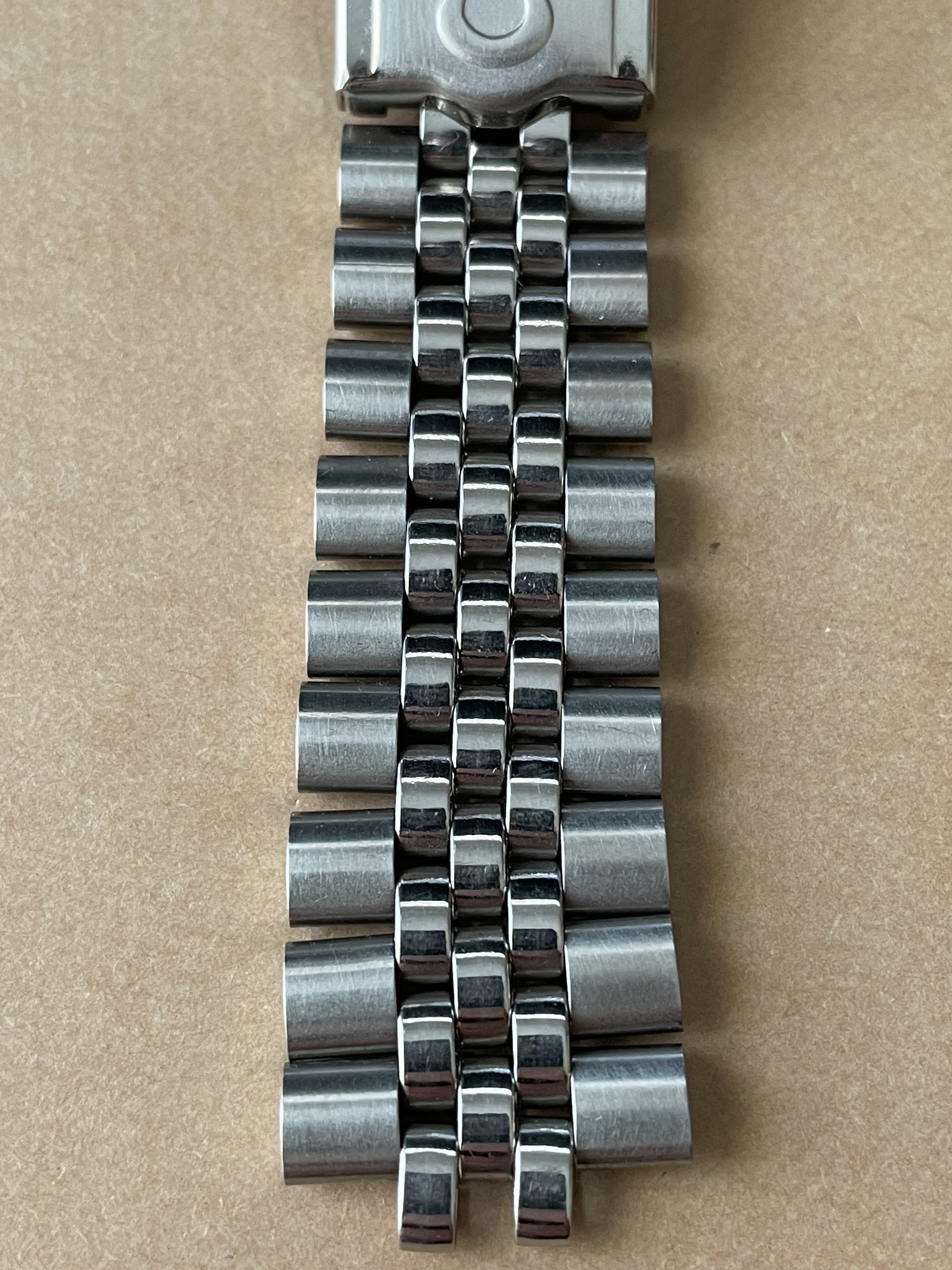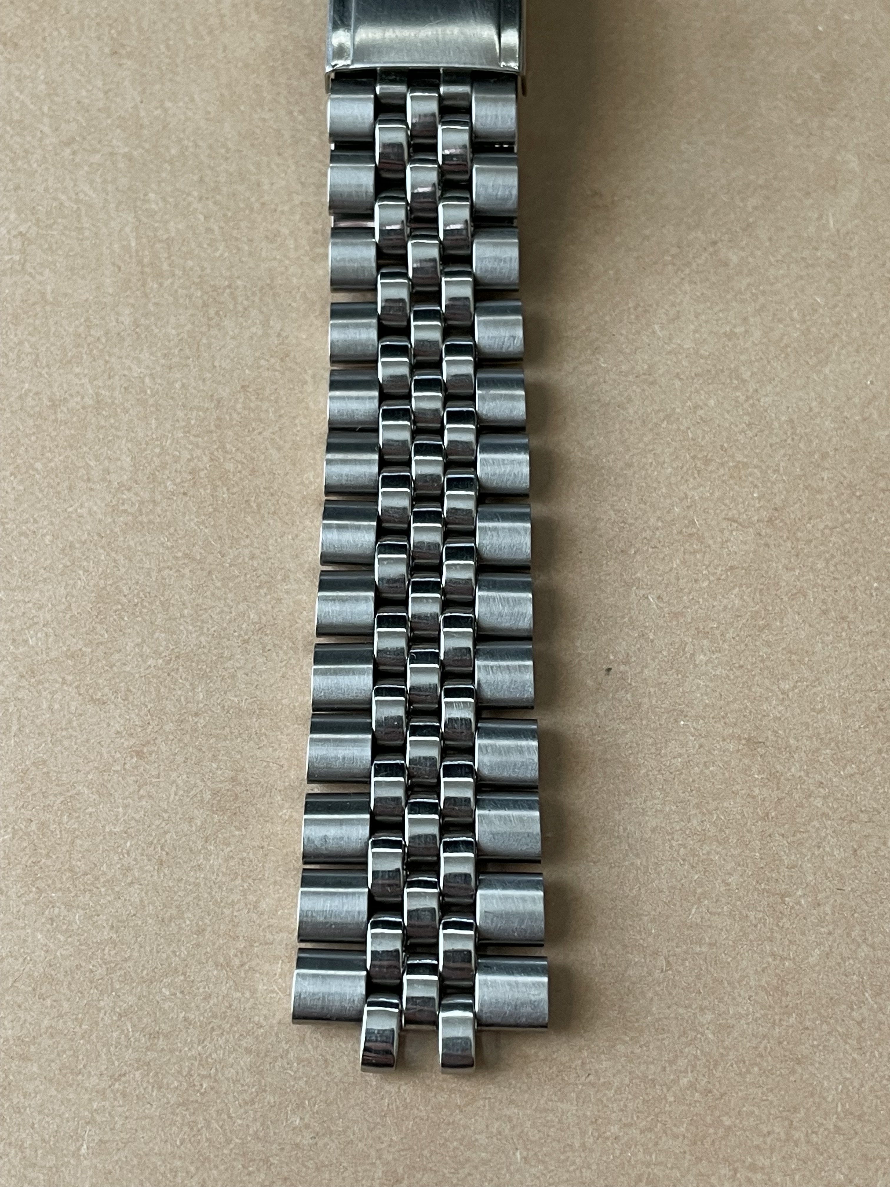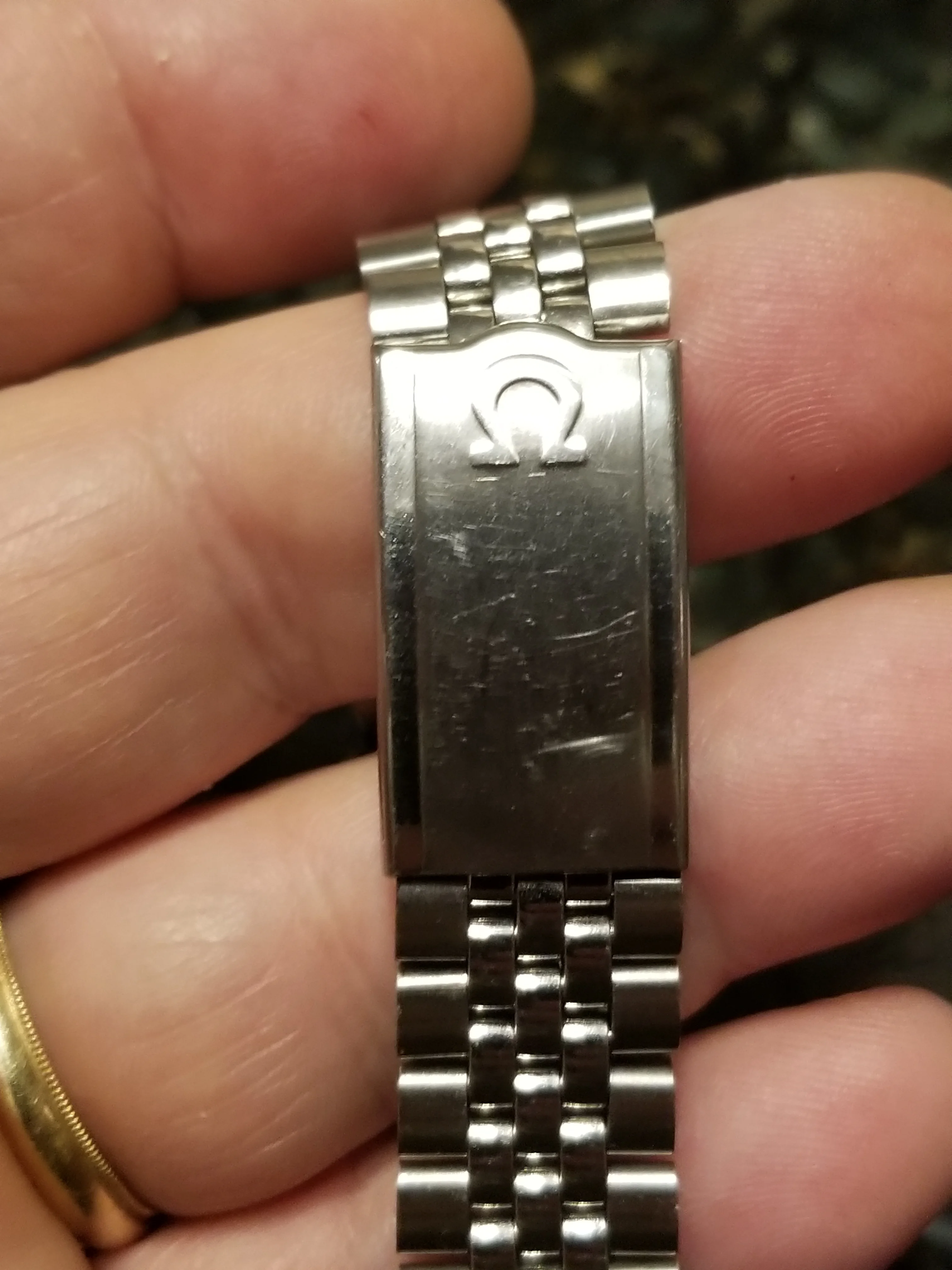 Back in February there was a thread, linked here, asking for information about a Jubilee style bracelet with an Omega No.12 signed clasp (no bracelet reference stamp) that the OF member had picked up at an estate sale. I had recently purchased a 1381 ref. bracelet with 772 end links which is somewhat a Jubilee style, but the one posted in above linked thread really intrigued me as it looked dead on to the 5 link style Jubilee, with equal width 2-3-4 links, used by some other manufacturers. The links of the bracelet were also not the more common flat bottom style links of the 80s era 1381 bracelet but were rounded similar to the 1098,1171,1125, etc. bracelets of the late 60s and 70s. Here's a couple of the OP's photos for reference: