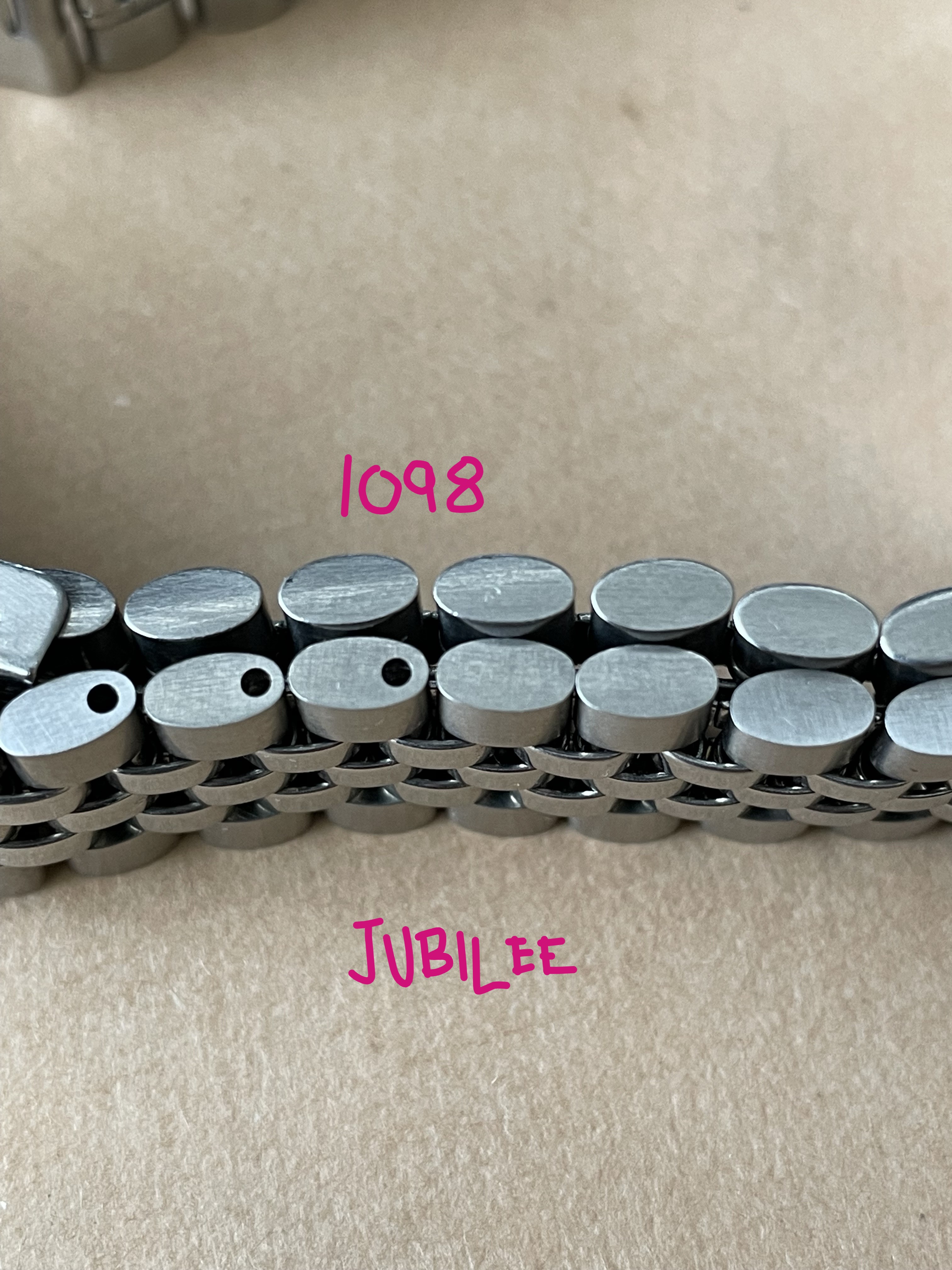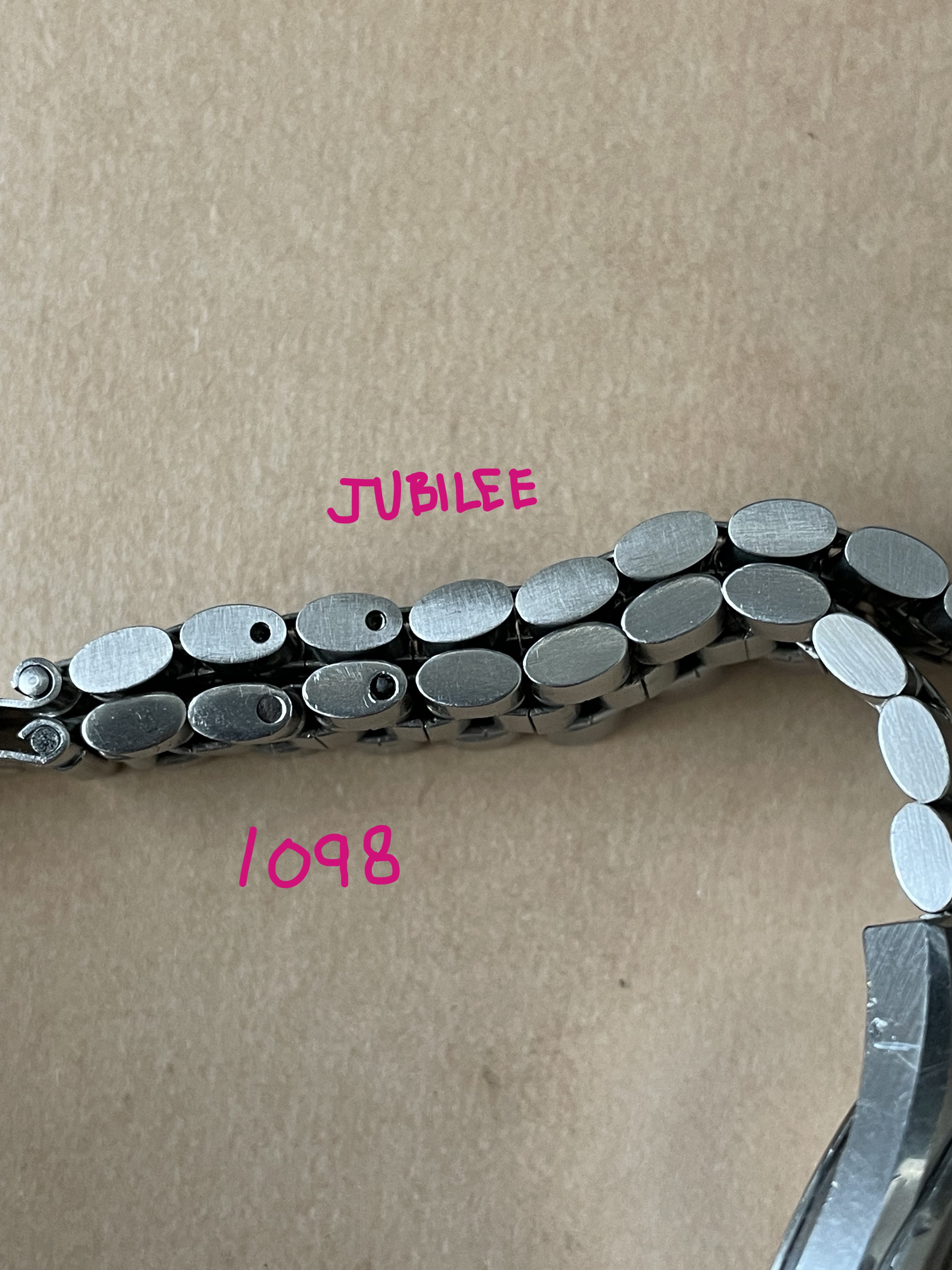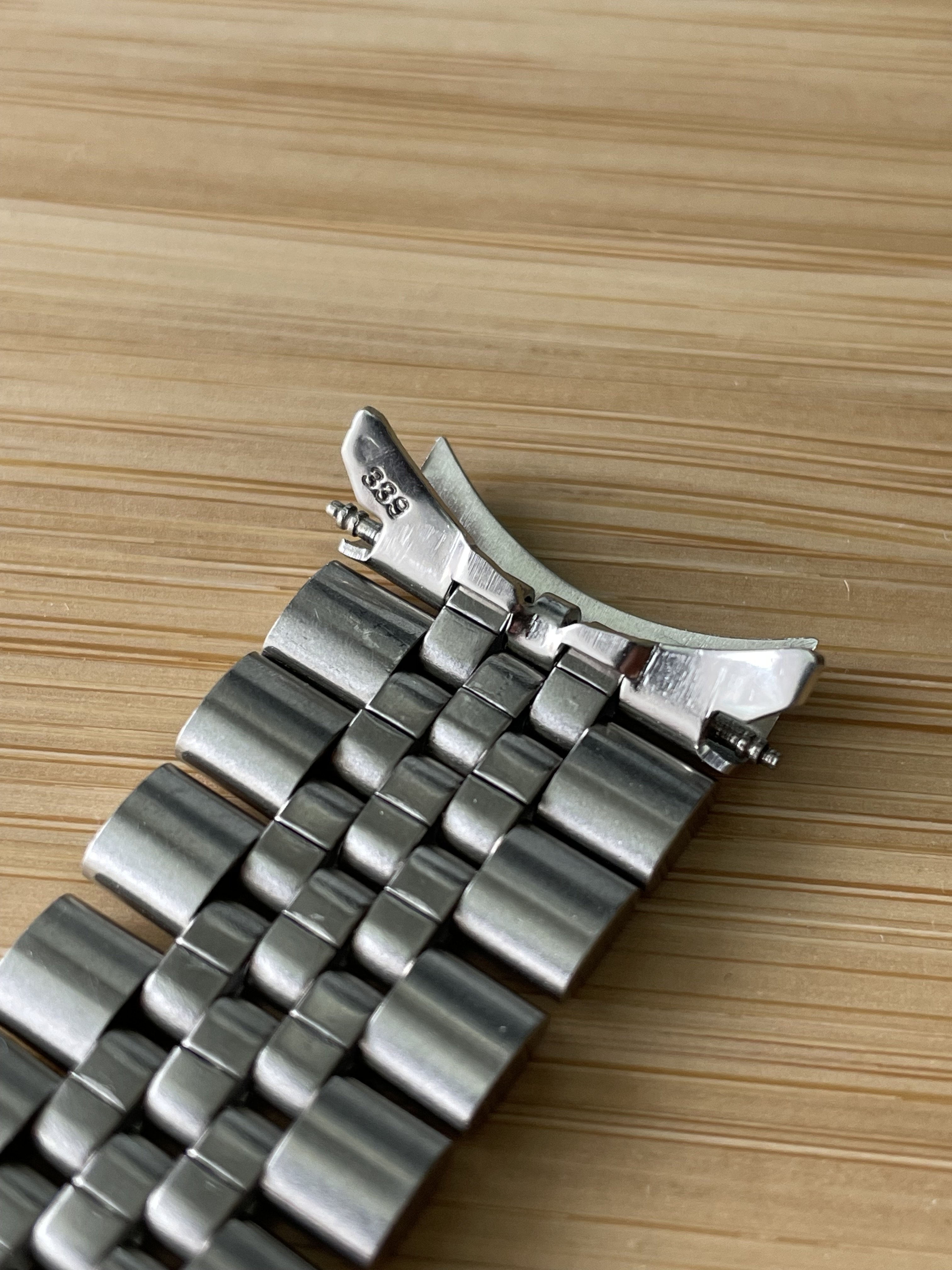 Back in February there was a thread, linked here, asking for information about a Jubilee style bracelet with an Omega No.12 signed clasp (no bracelet reference stamp) that the OF member had picked up at an estate sale. I had recently purchased a 1381 ref. bracelet with 772 end links which is somewhat a Jubilee style, but the one posted in above linked thread really intrigued me as it looked dead on to the 5 link style Jubilee, with equal width 2-3-4 links, used by some other manufacturers. The links of the bracelet were also not the more common flat bottom style links of the 80s era 1381 bracelet but were rounded similar to the 1098,1171,1125, etc. bracelets of the late 60s and 70s. Here's a couple of the OP's photos for reference: