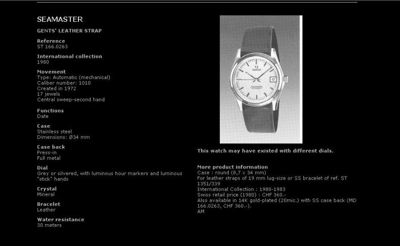 I found quite a few examples of similar references with the more common flat bottom style 1351 / 339 bracelet, seen below on this 166.0263, but I'd yet to find another rounded style bracelet to confirm my suspicions that this was a legit offering from Omega at some point in the past.