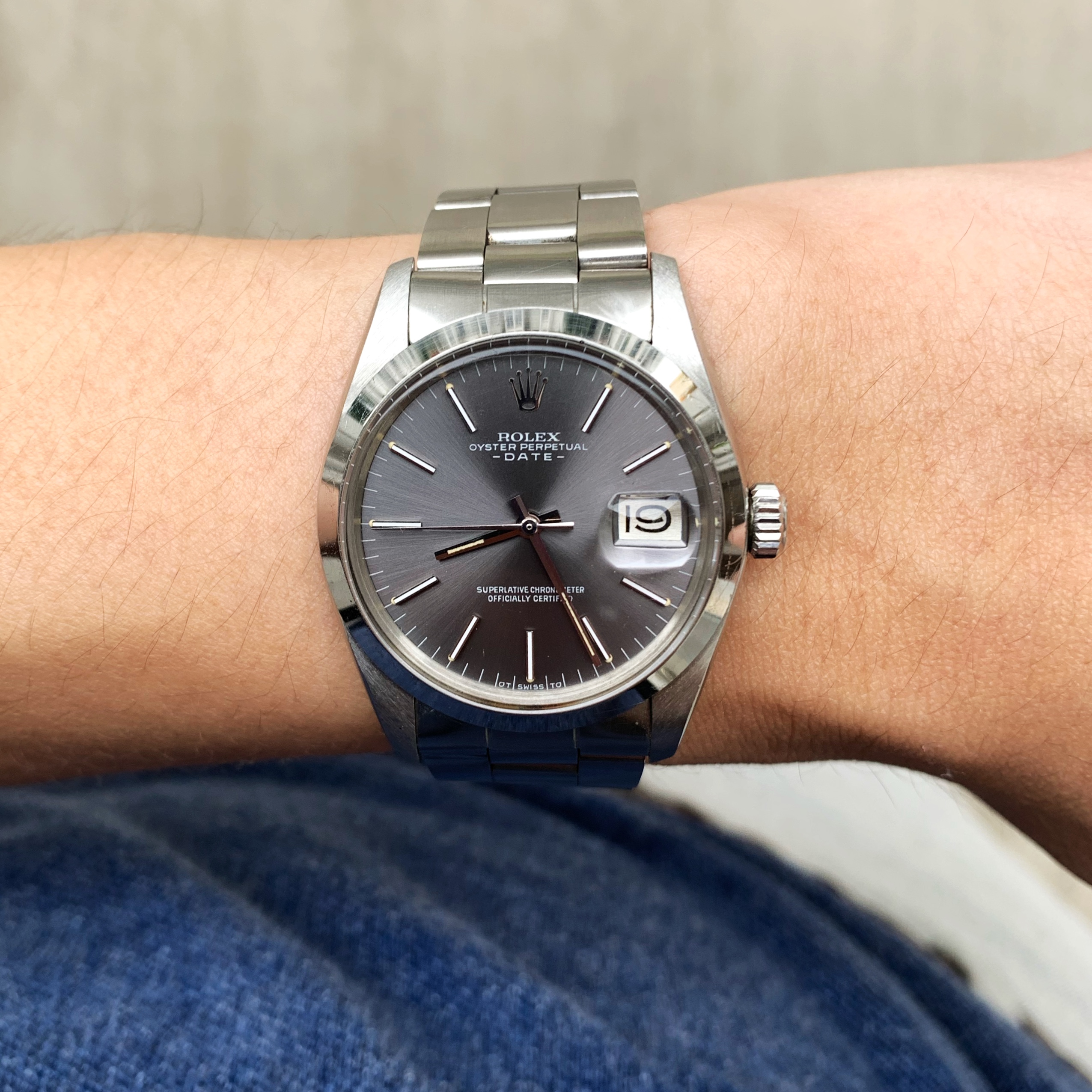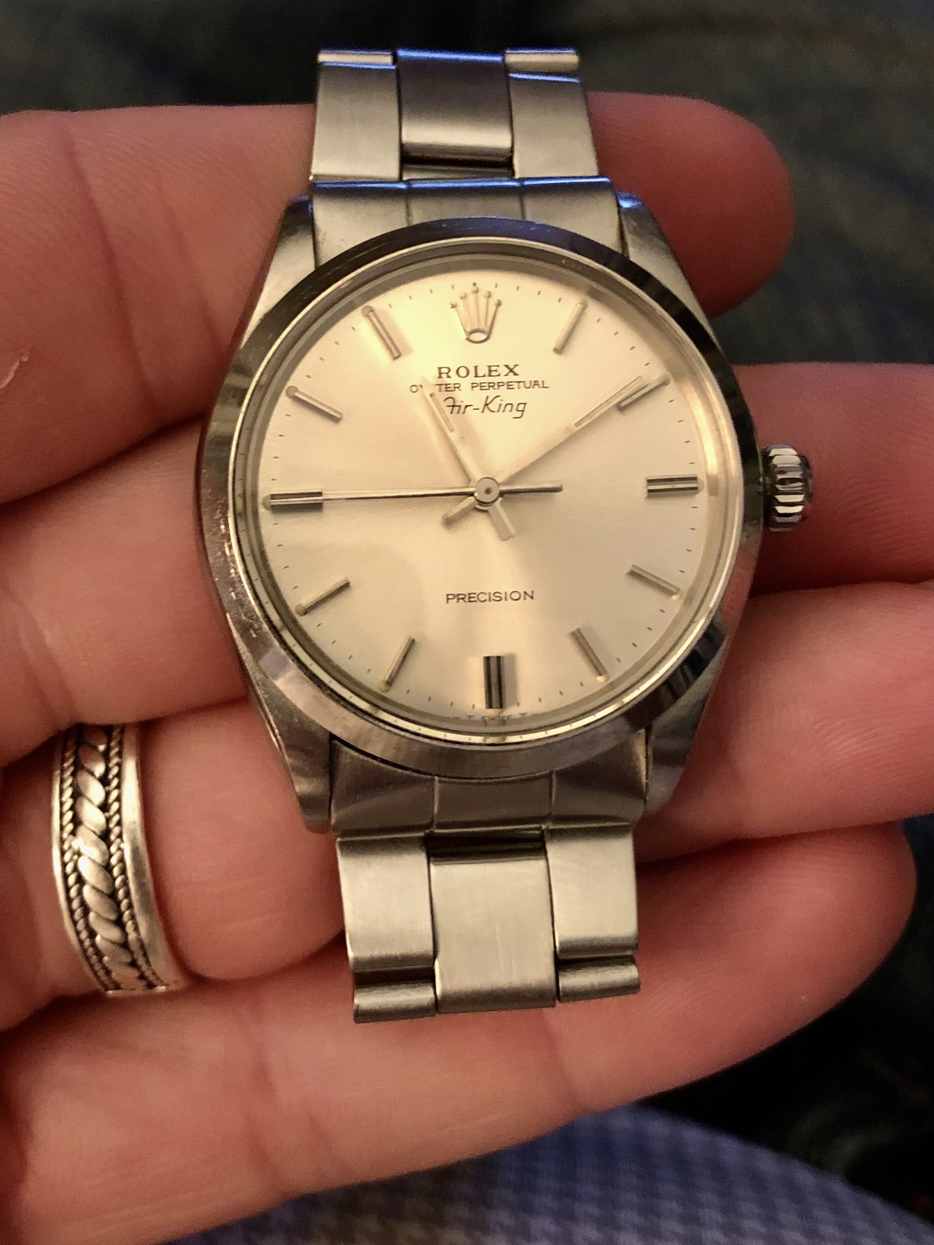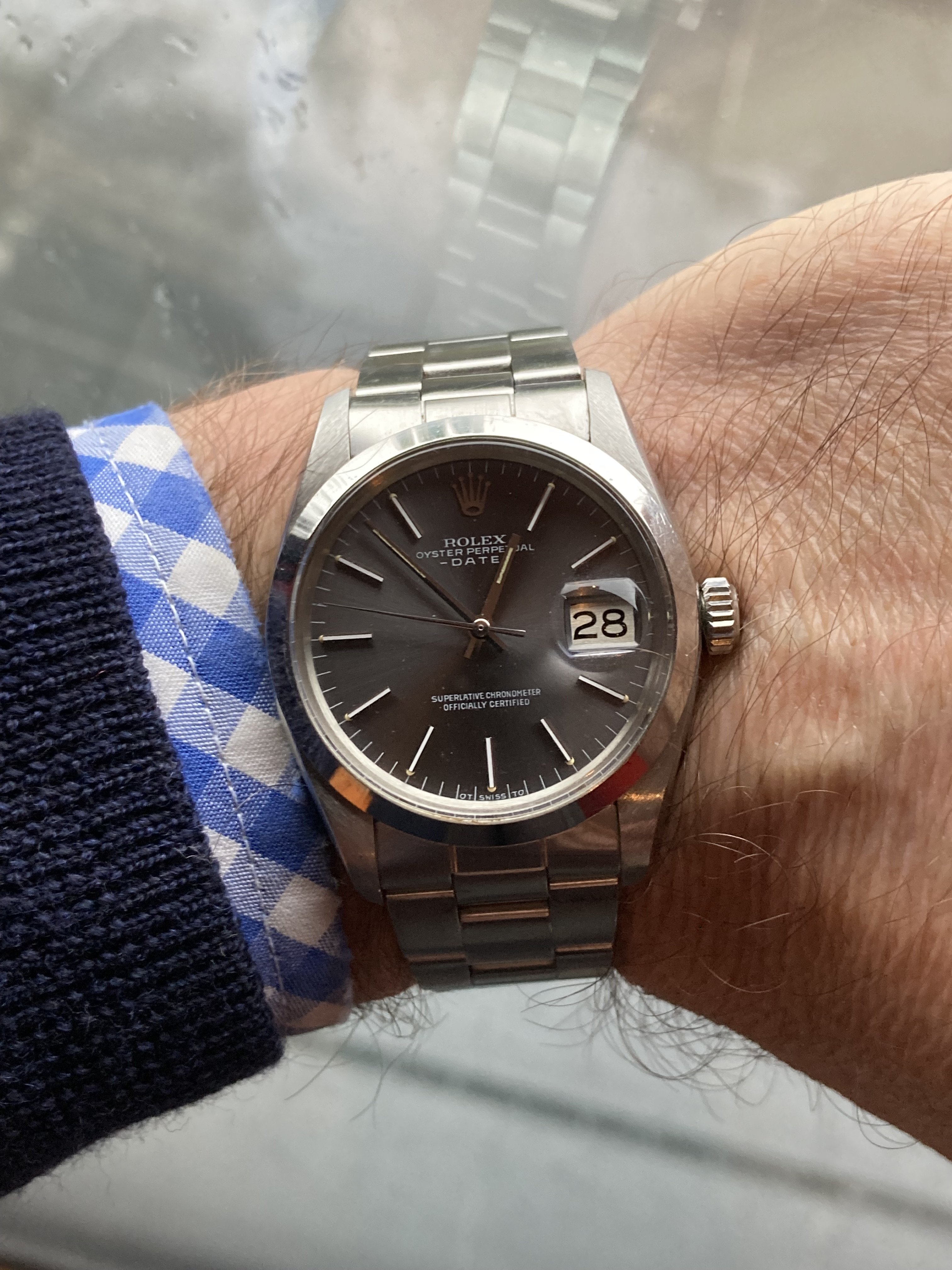 Fortunately a combination of my daity 6.5" wrists and preference for a clean, utilitarian but elegant style lead me toward the rather more affordable 34mm Oyster Perpetuals