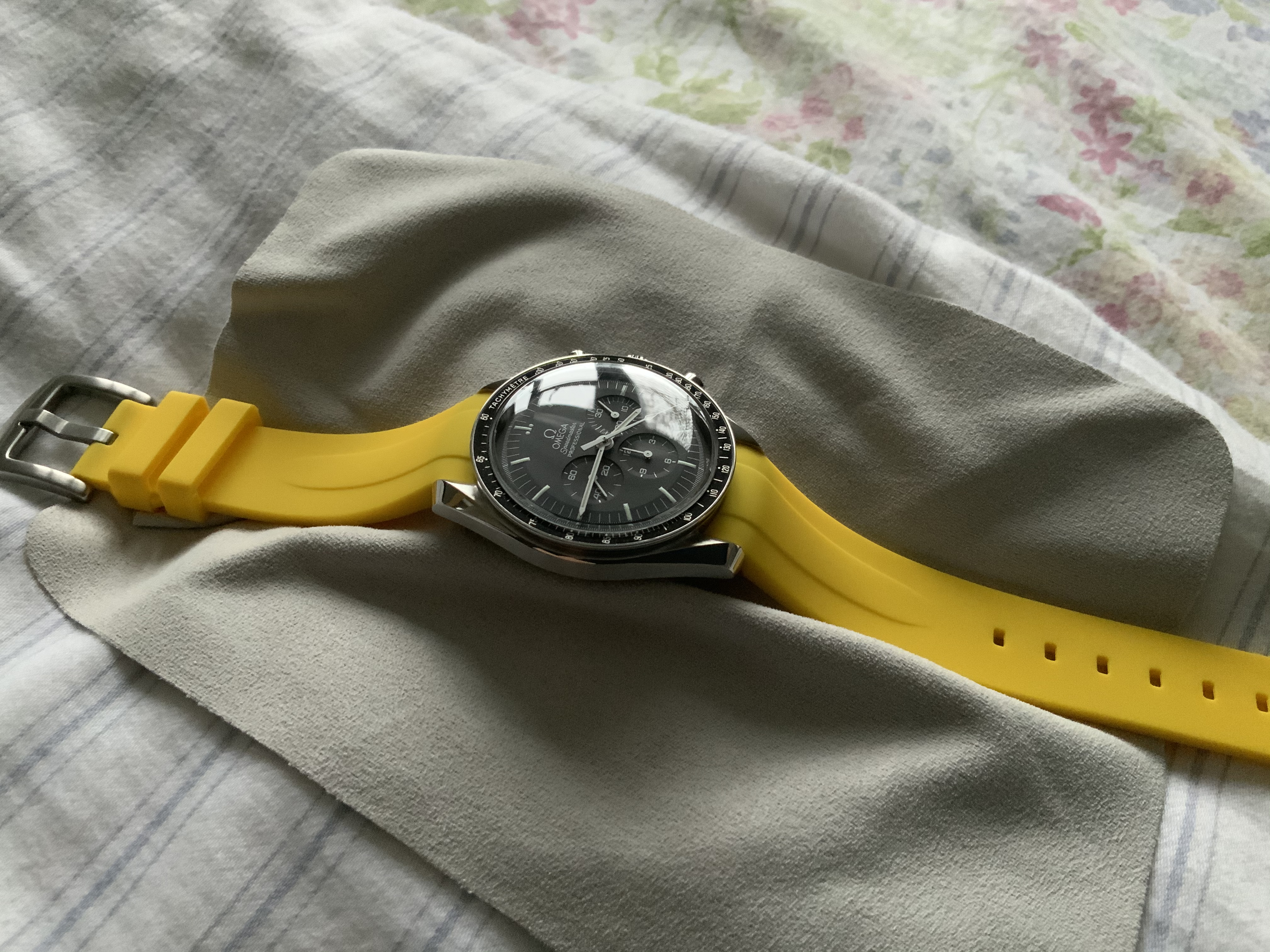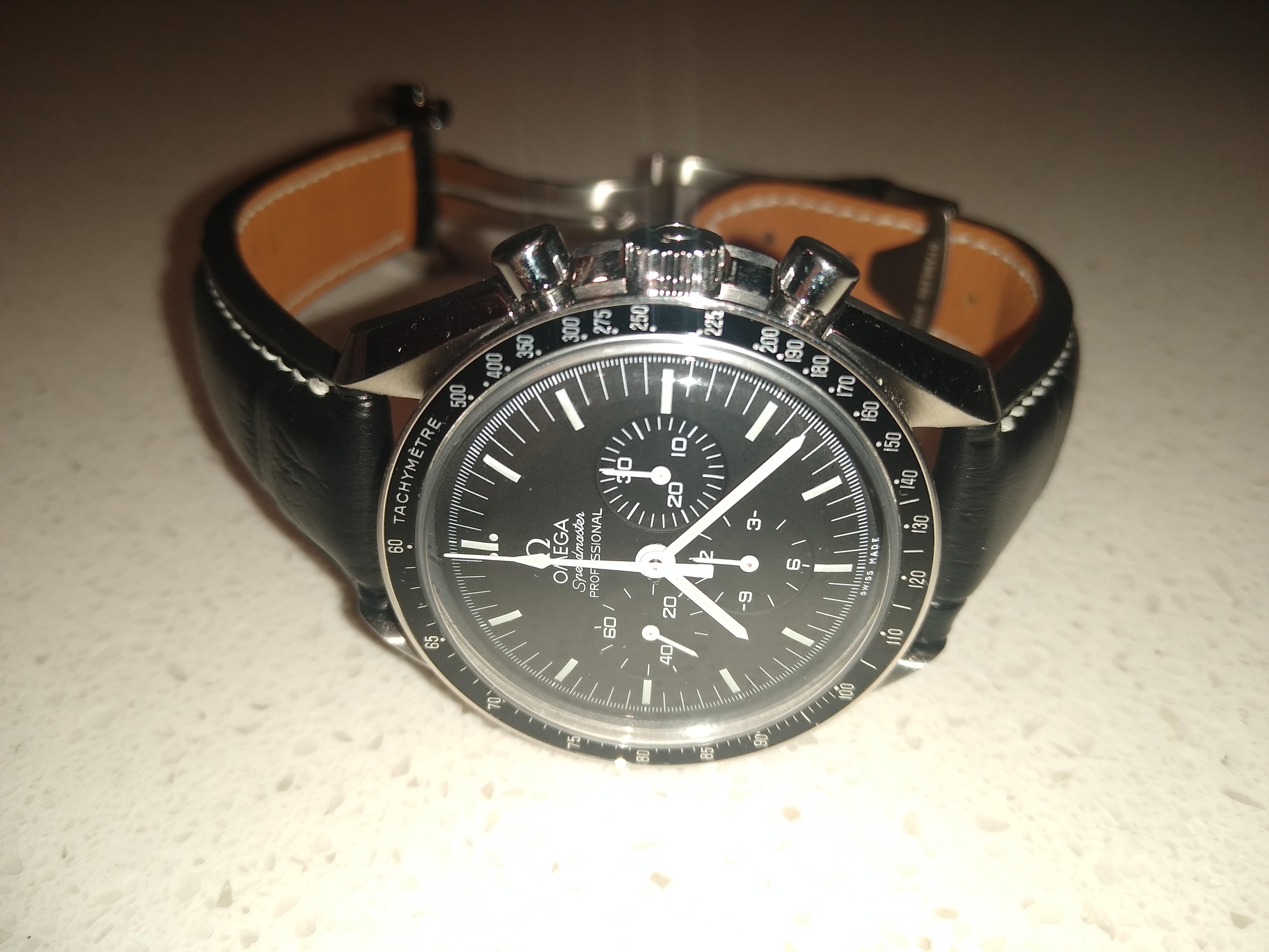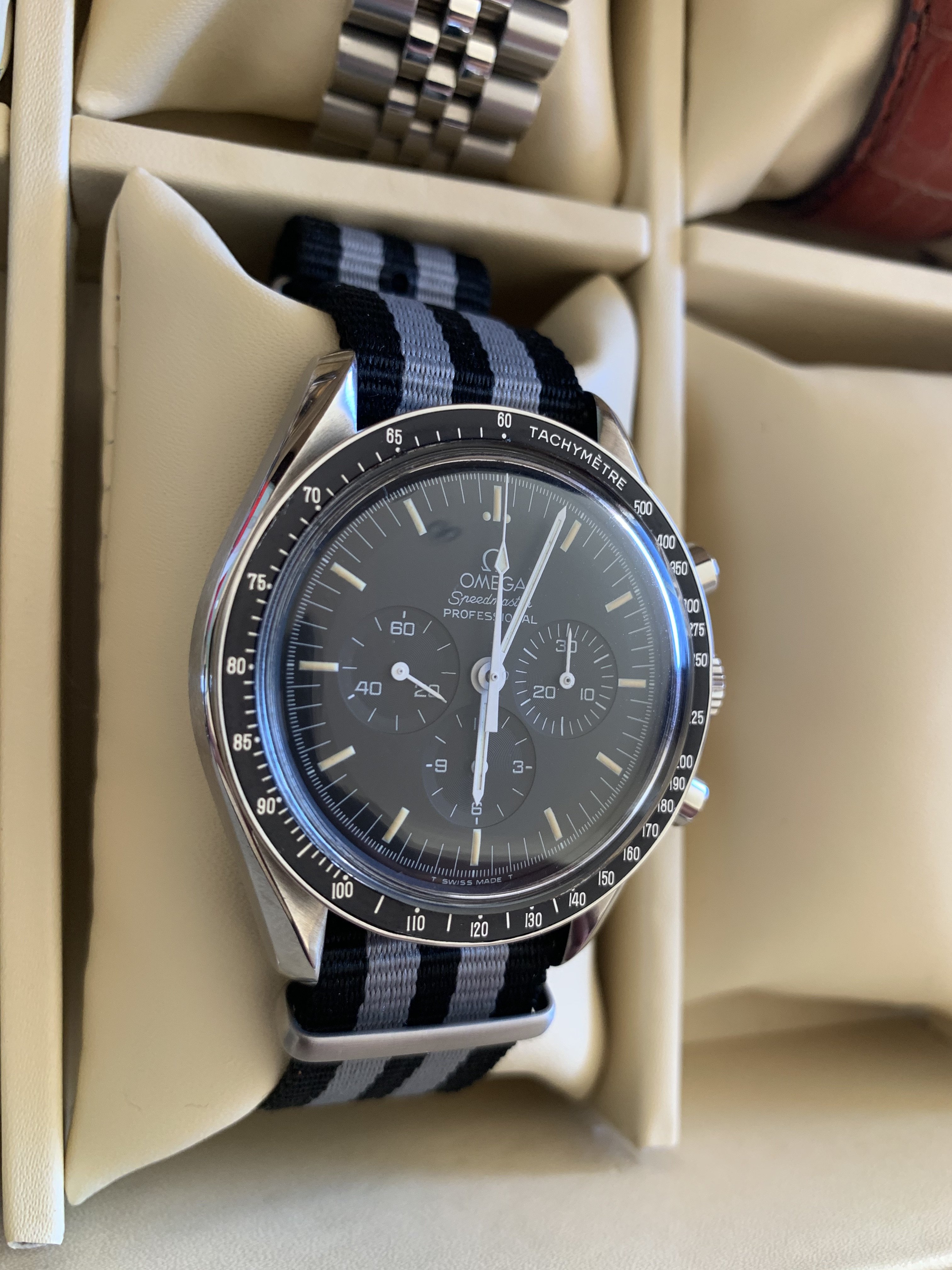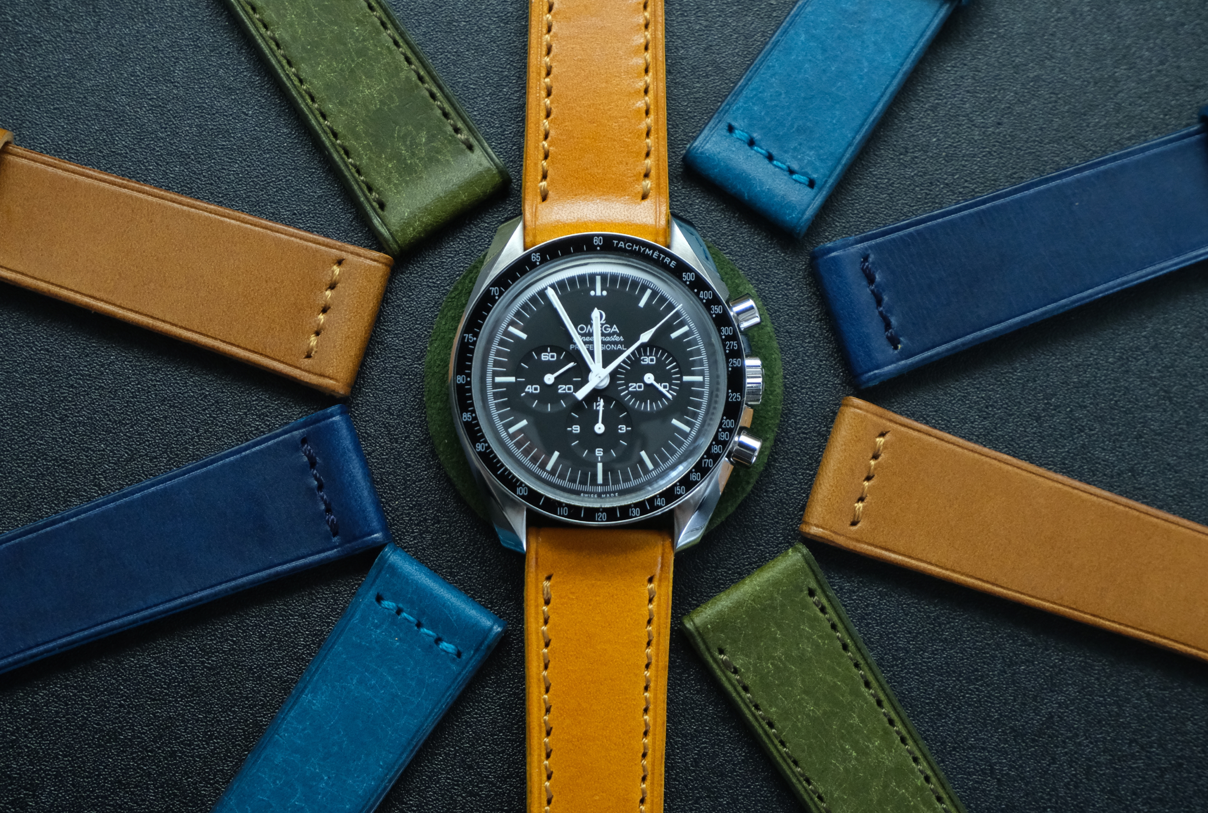This is my first post here. I had my first Omega in 2012 and it has a sentimental value as it witnessed my kids birth and many key life events. Believe it or not it was stolen from me back in 2019 and I managed to get it back a few months later after constant search online and getting the police involved in recovering it. So I am attached to the watch, it simply tells too many stories, and that made me focus on buying interesting straps to change its look rather then buying new watches. I am amazed how the moonwatch style changes when you change straps. I will be sharing with you later six of my favorite straps, some of them are rare or difficult to find. Below is the rare double ridged blue sharkskin with the classic old style deployment clasp. I hope you enjoyed it.