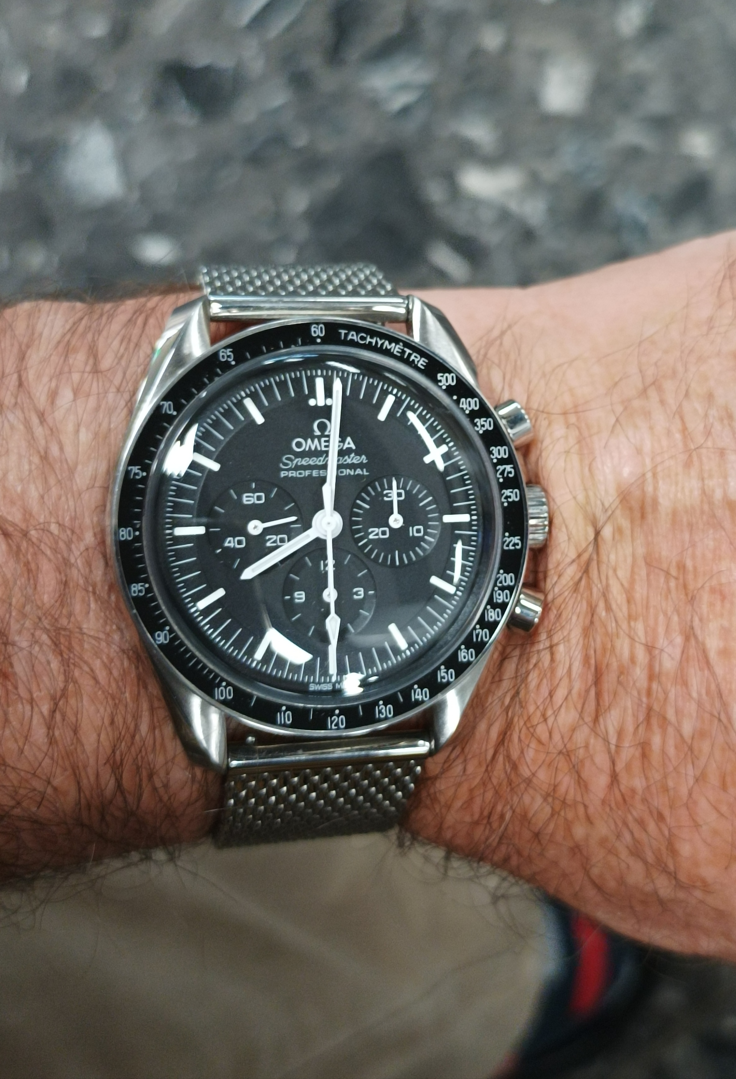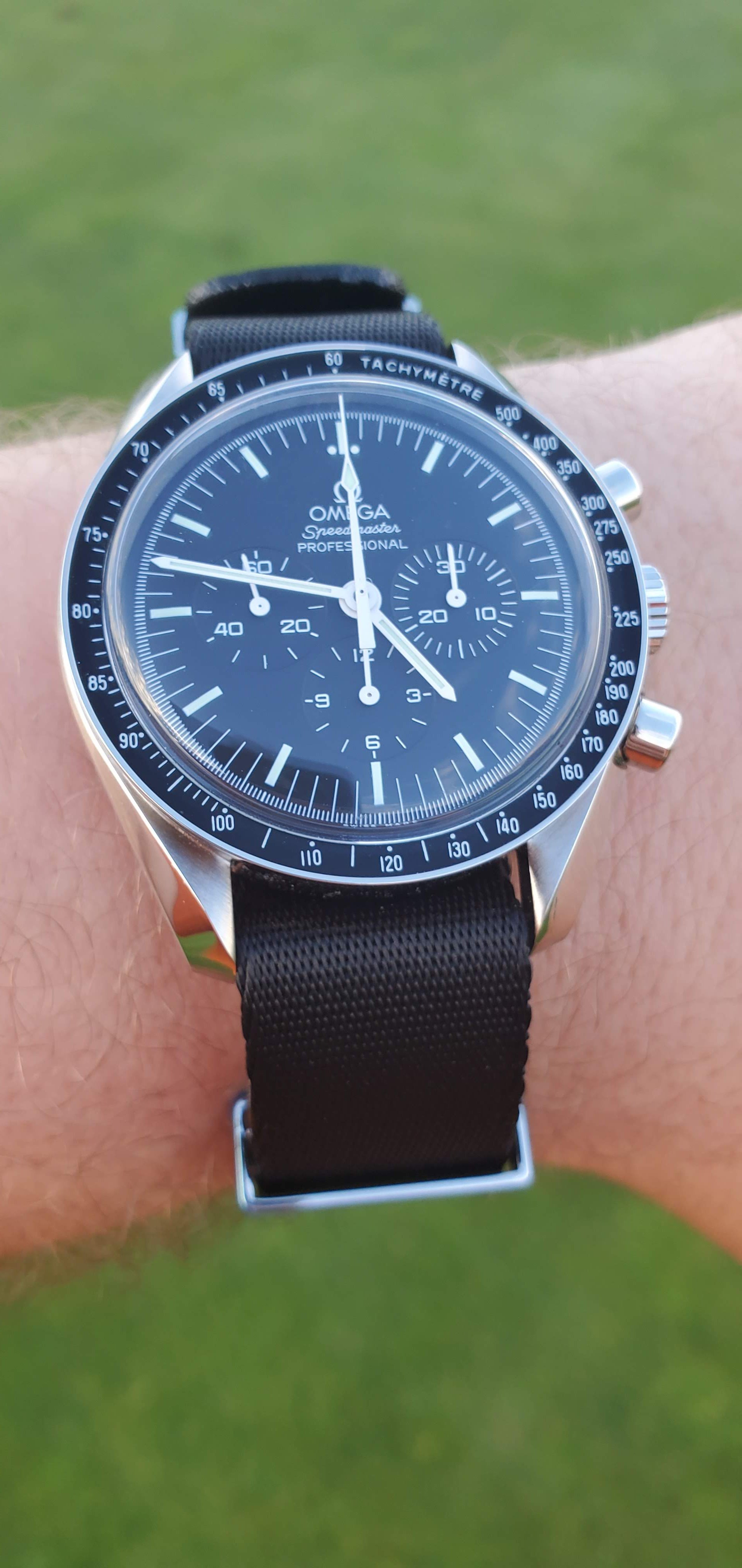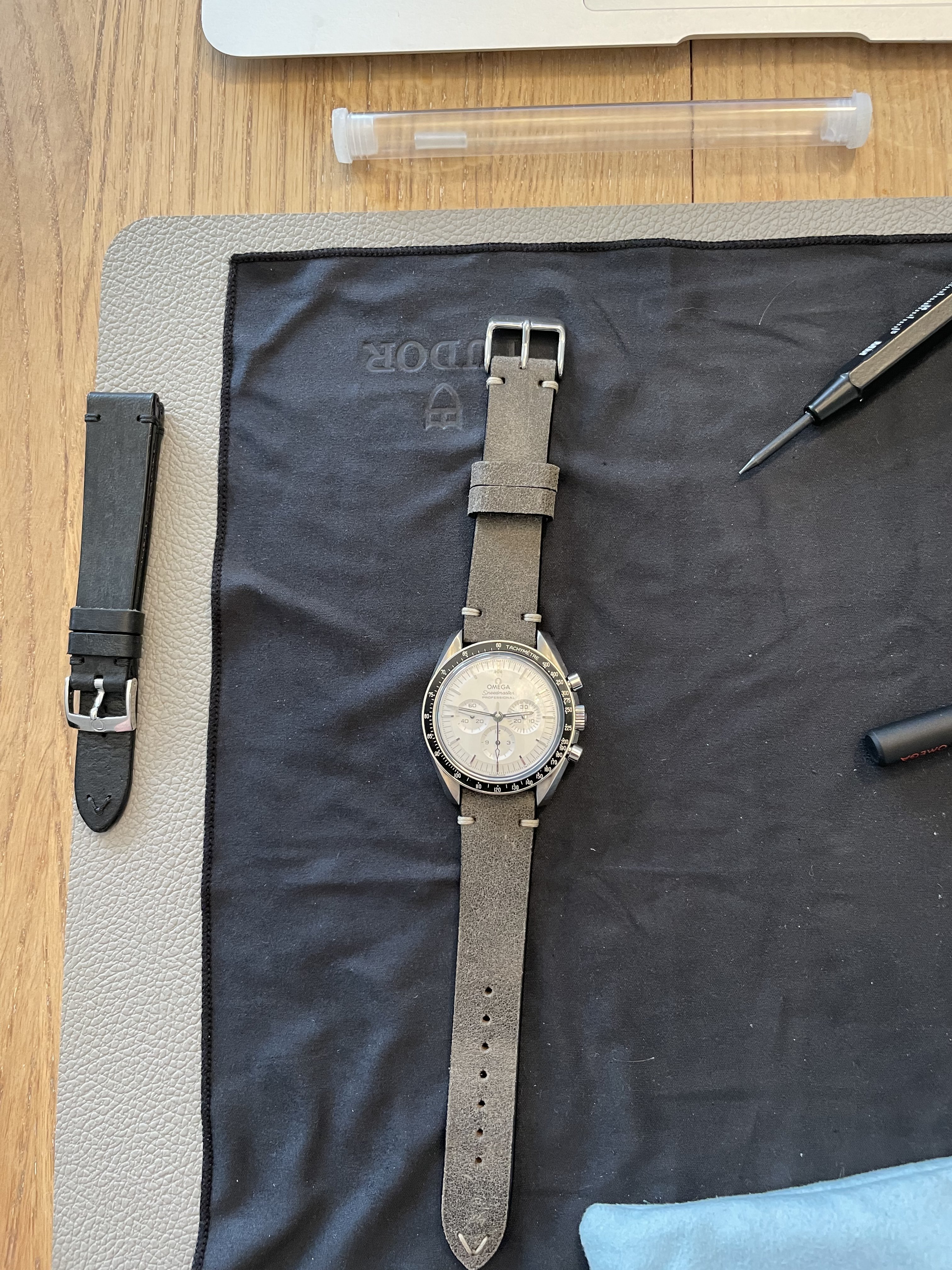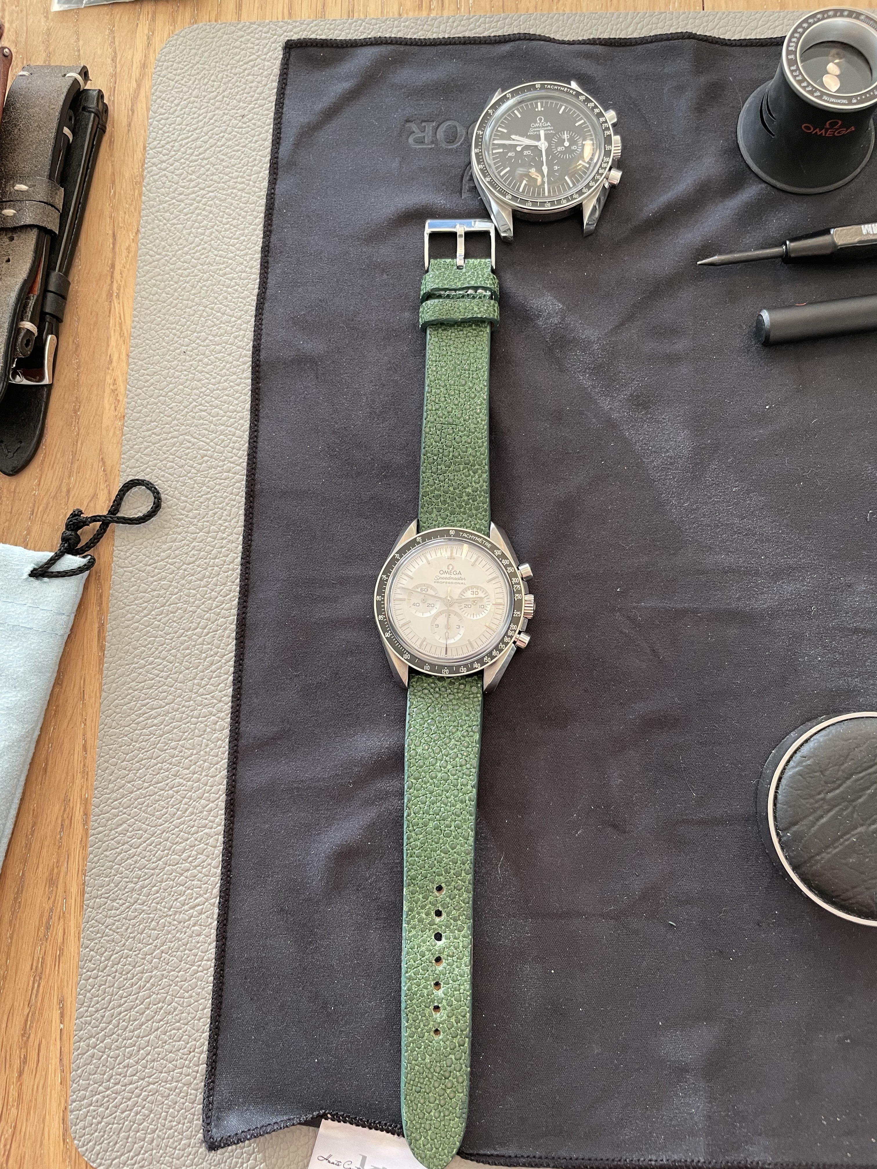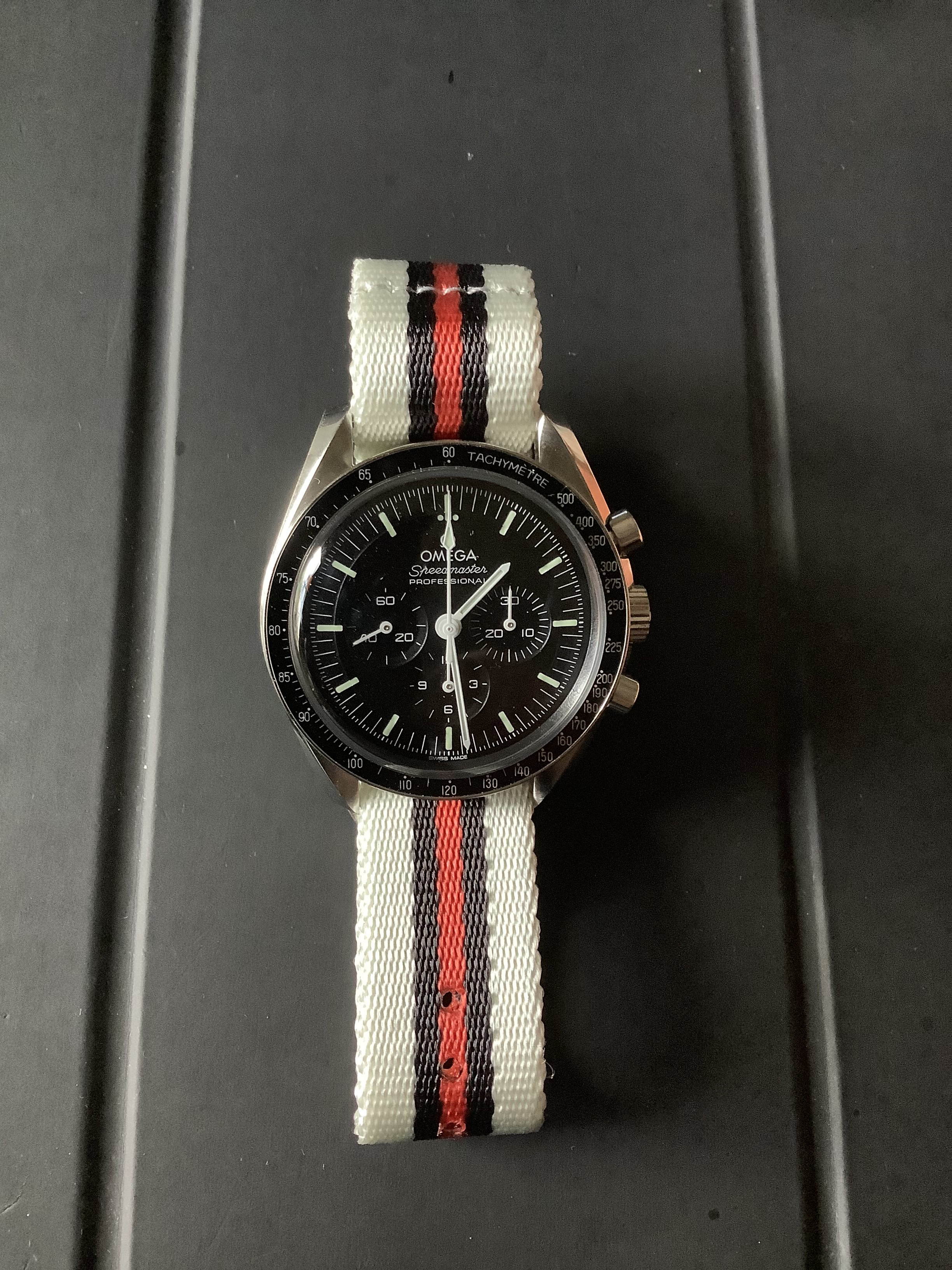Here is mine on a xeric leather strap in both black and brown. Also the Forster speedmaster flat link full brushed bracelet. Have some NATO鈥檚 on the way. The speedmaster truly is a strap champ!