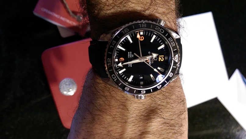 I'm selling my Omega Planet Ocean GMT 8500 . I purchased this brand new a few months ago but am doing some condo upgrades and it needs to go (despite me saying I'd never sell it...I tend to do that occasionally). It comes with all original packaging, booklets, hang tag, etc. It was not purchased from an authorized dealer, so it does not have the Omega factory warranty, but has the warranty of the dealer it was purchased from and is covered for what I believe is another 2.75 years. Other than that, it comes with all documentation. It comes on the amazing black rubber strap with orange stitching and deployment buckle. It's easily the best rubber strap I've ever worn.