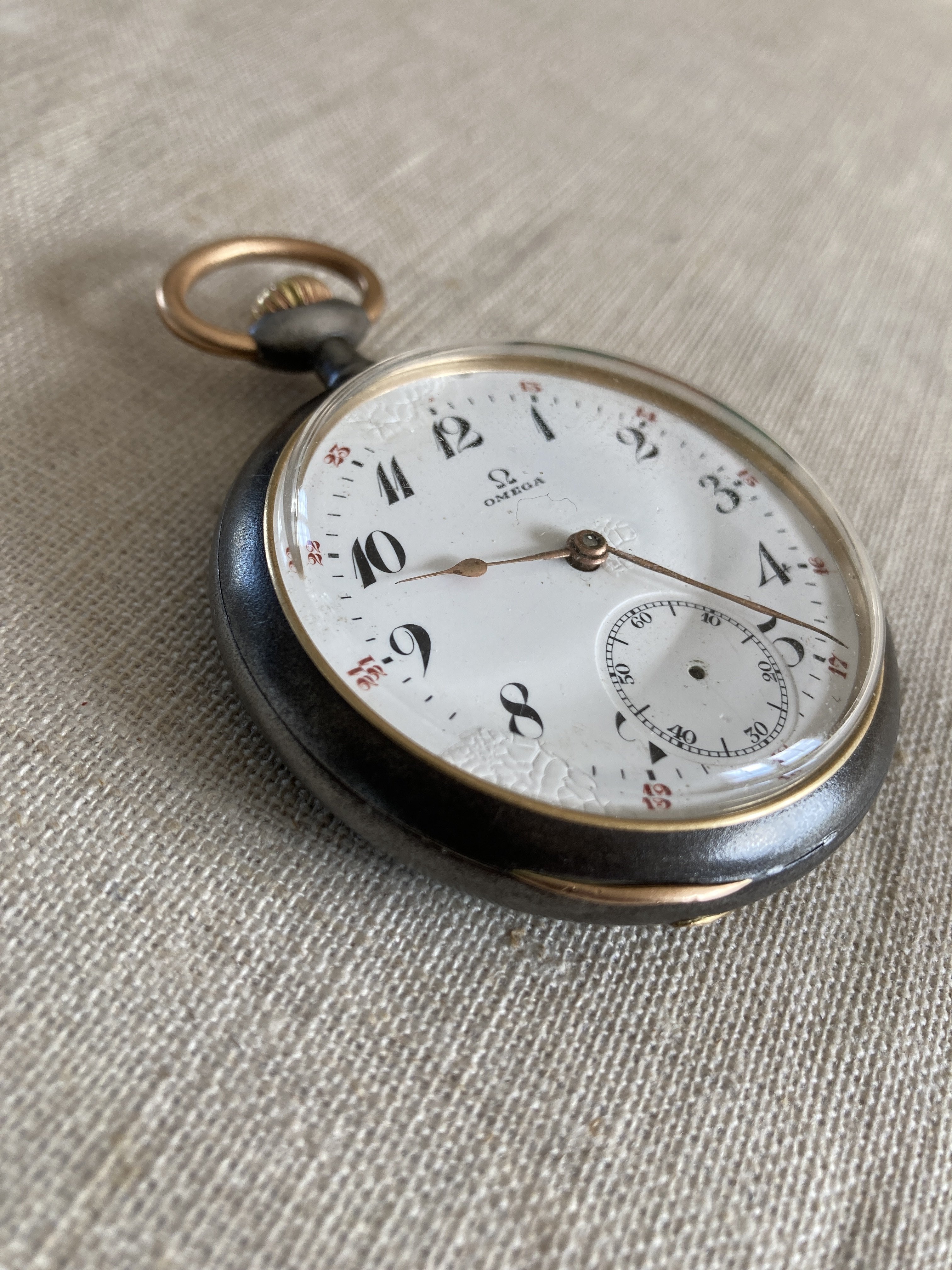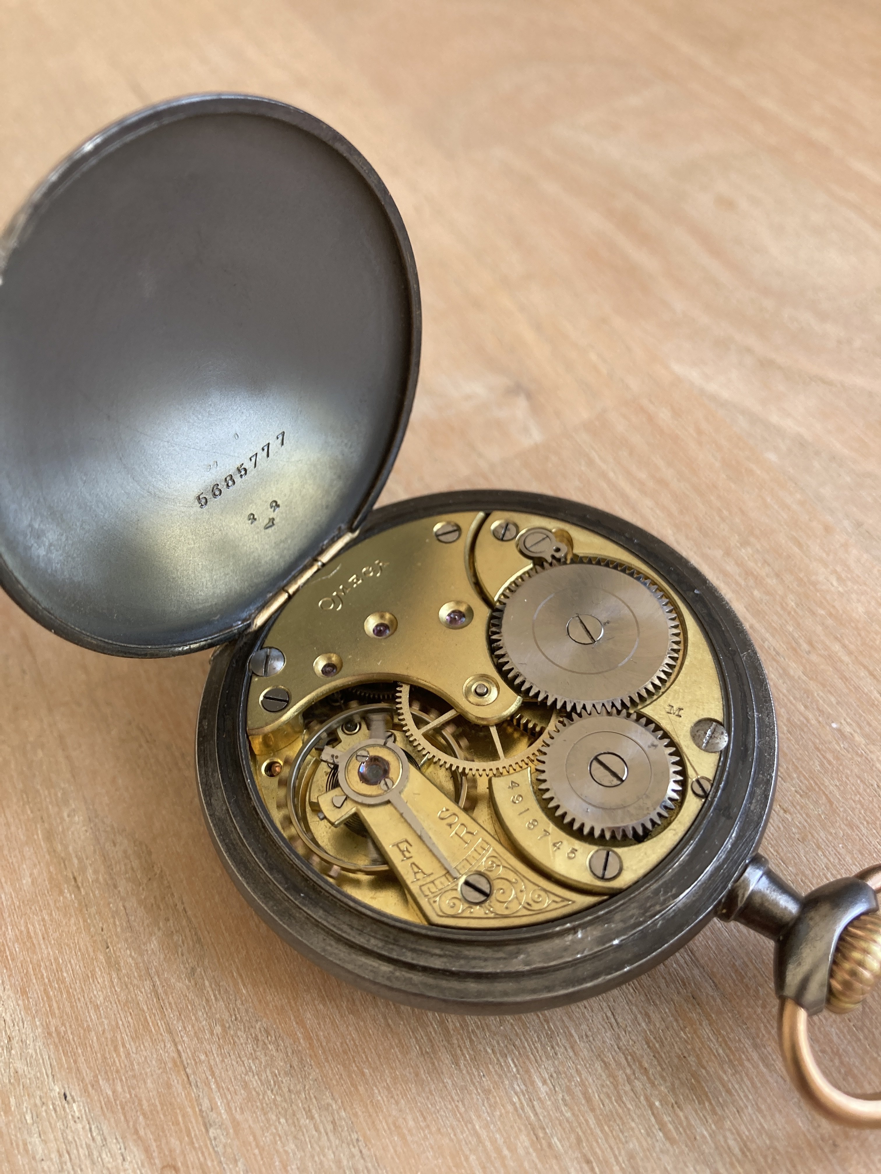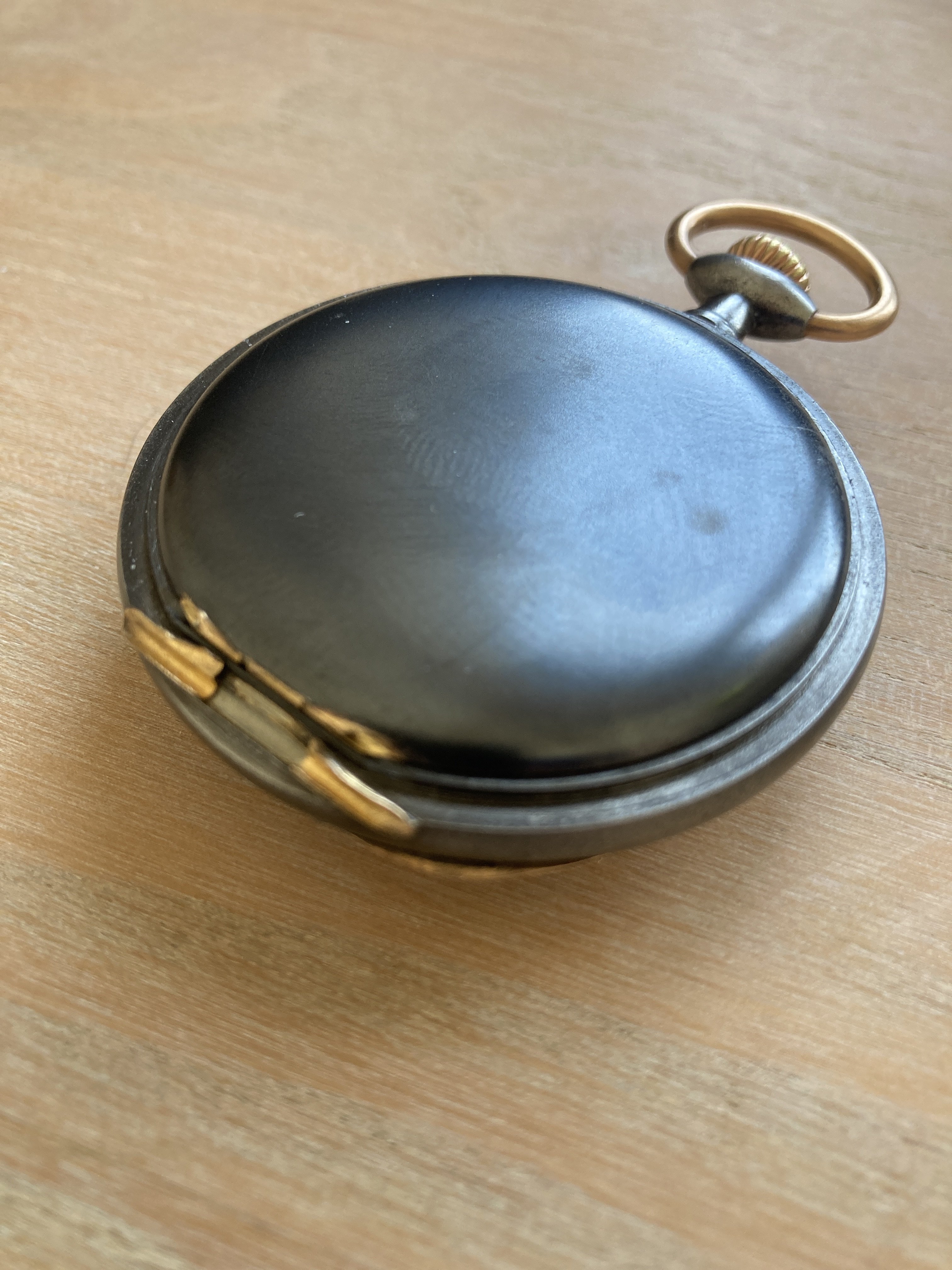 On cases like this, with gold plating (yellow or rose gold colour), either gun metal (yours, or coin silver), the plating is called gallone. The definitions I have read for gallone describe it as being a braided trim with gold thread as often displayed on ceremonial uniforms.
