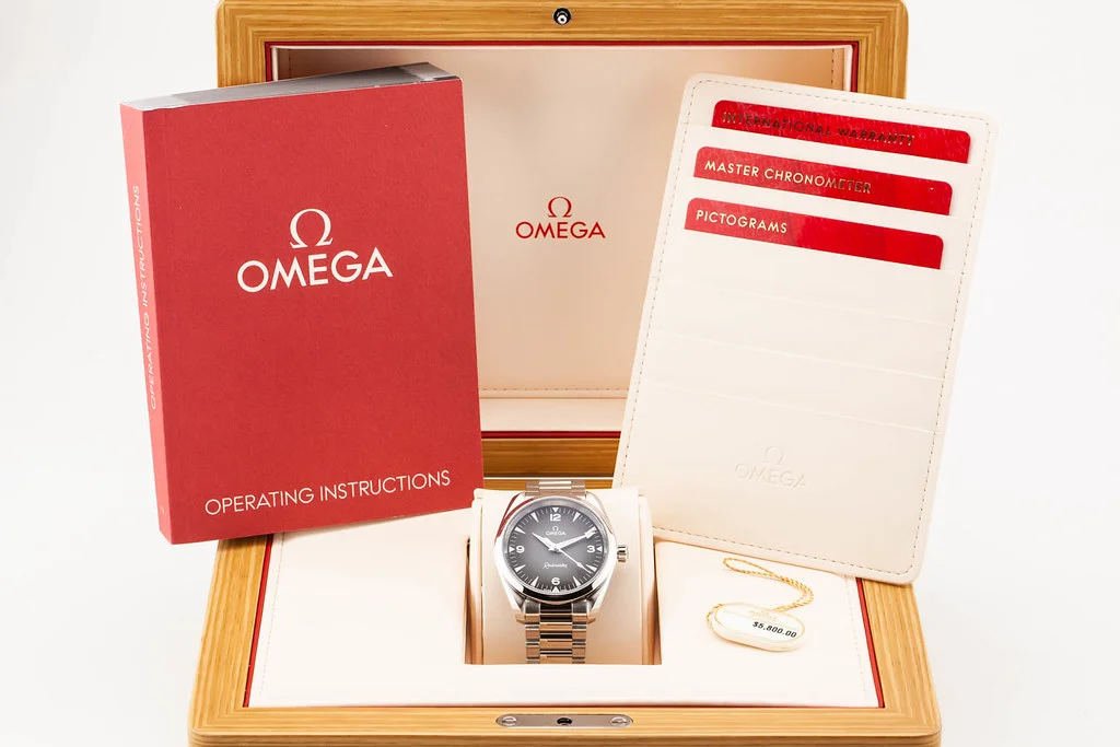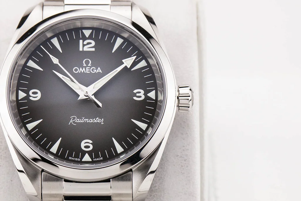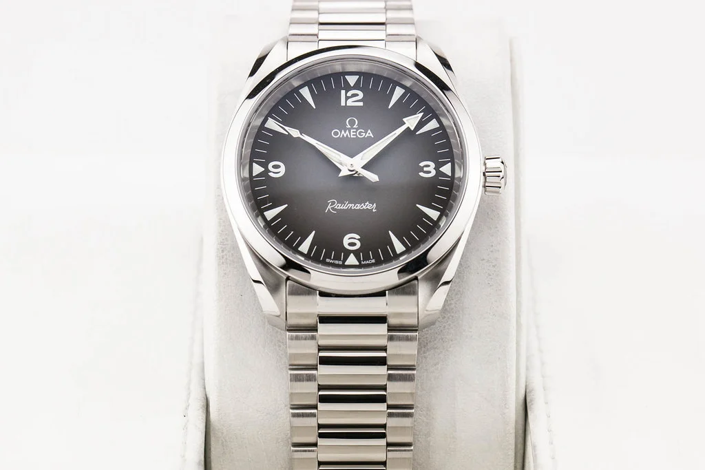 ยทUp for sale is a brand new Omega Seamaster Railmaster 38mm Grey Dial, reference # 235.10.38.20.06.001. It comes complete with all boxes, papers, booklets, hang tag and Omega Warranty Card dated June 2025.