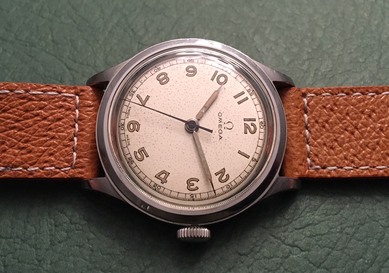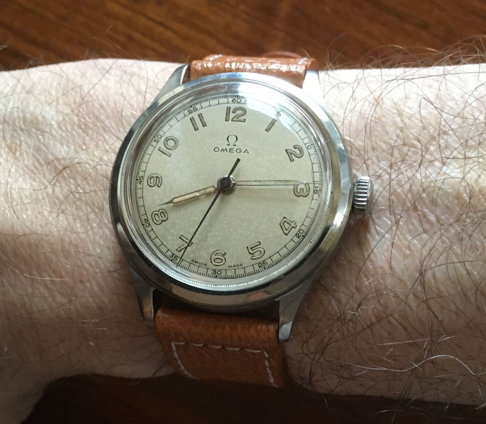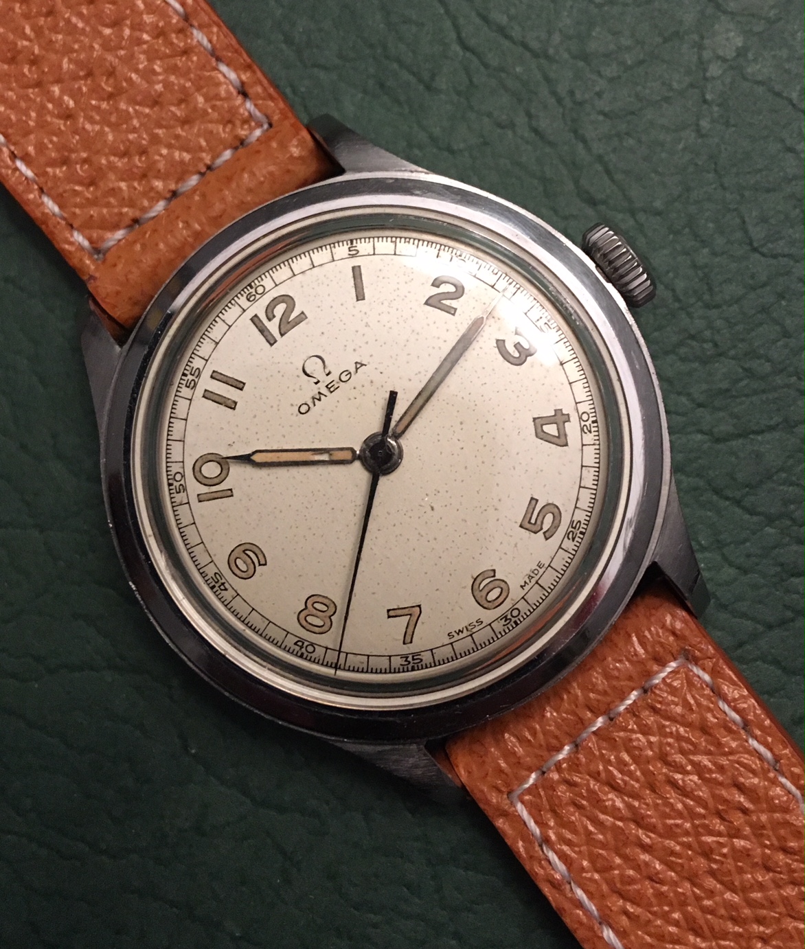 ··Adam @ ΩFI am offering for sale a very nice ca. 1945 Omega ref. 2179/5. This is the so-called US Army civilian version, as there is no "US ARMY" case back engraving--these (actually most of this reference one comes upon these days) were thought to be marketed to civilians toward the end of WWII. There are not too many nice examples on offer.