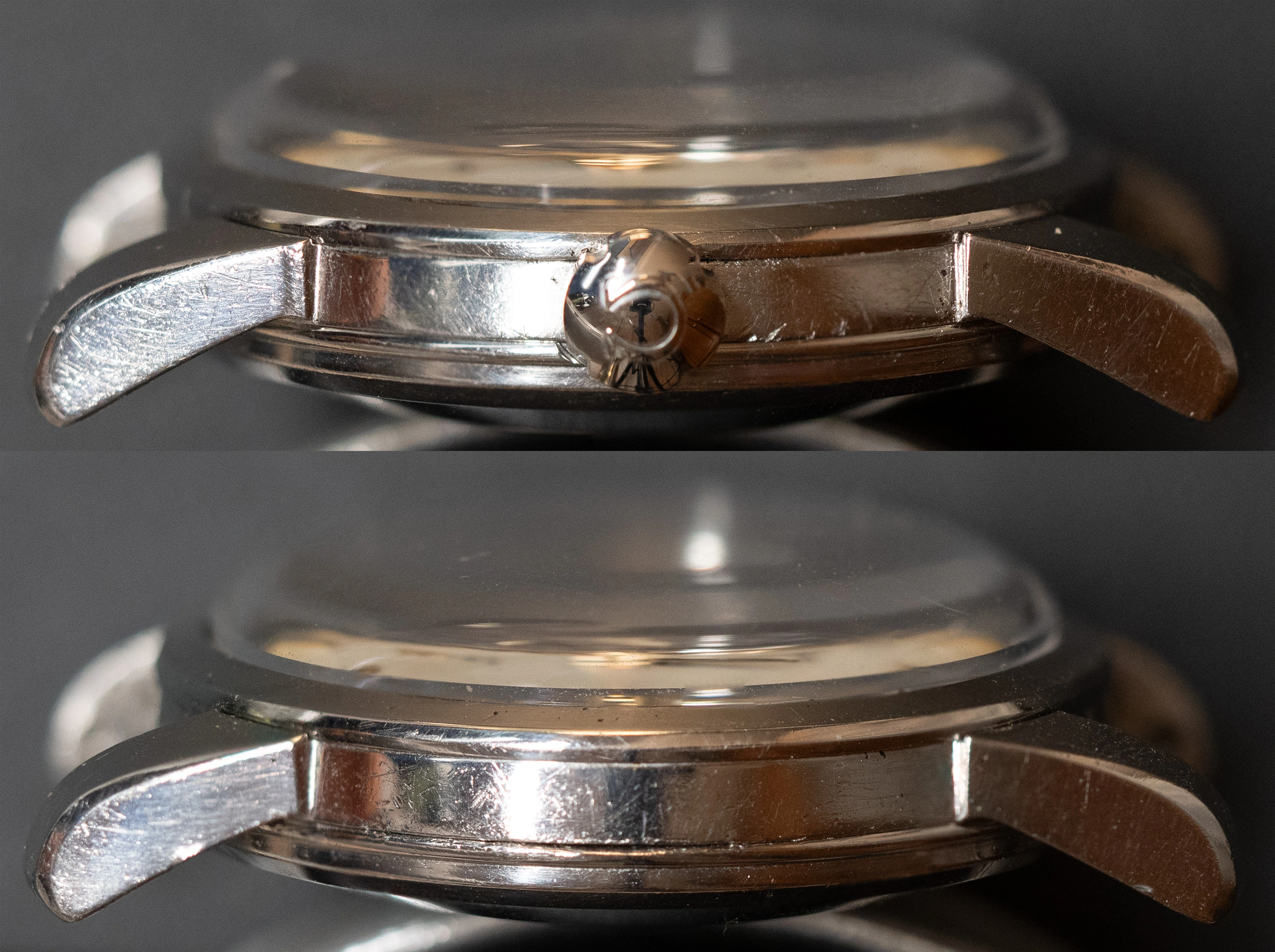- The case has some pitting in between the lugs and on the outer surface on the back.