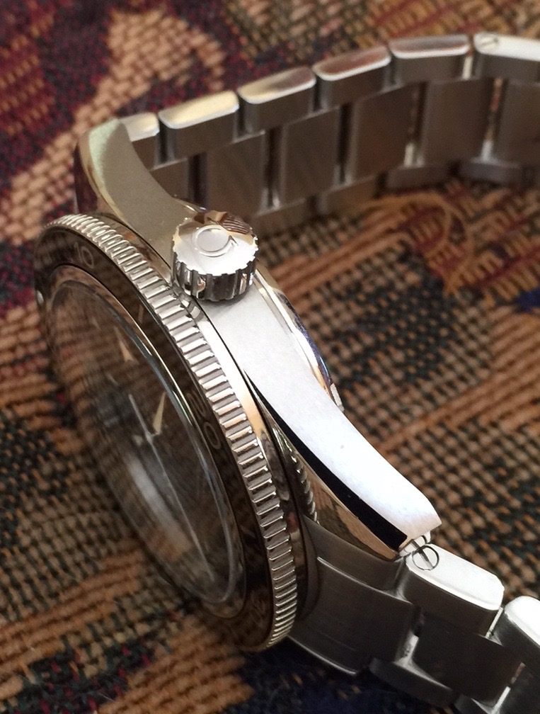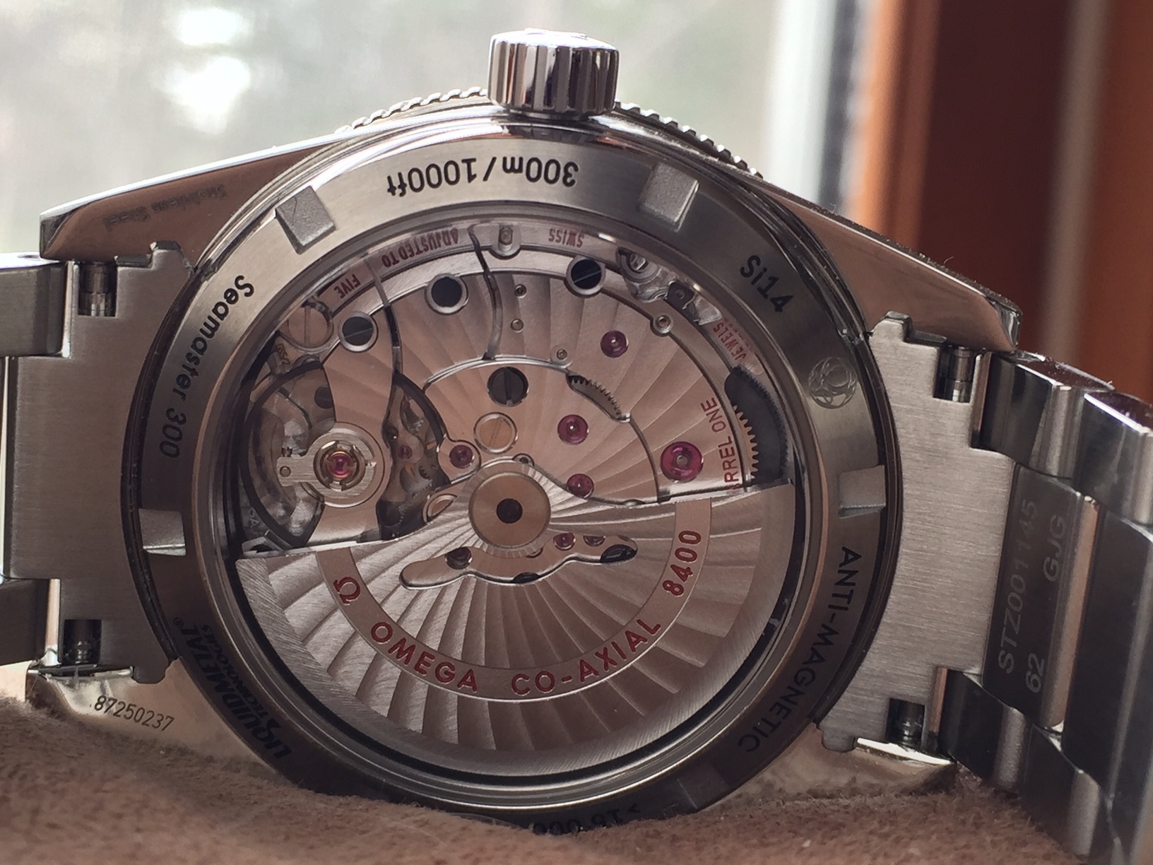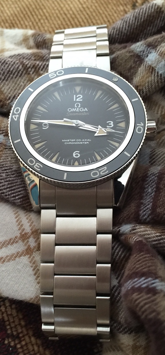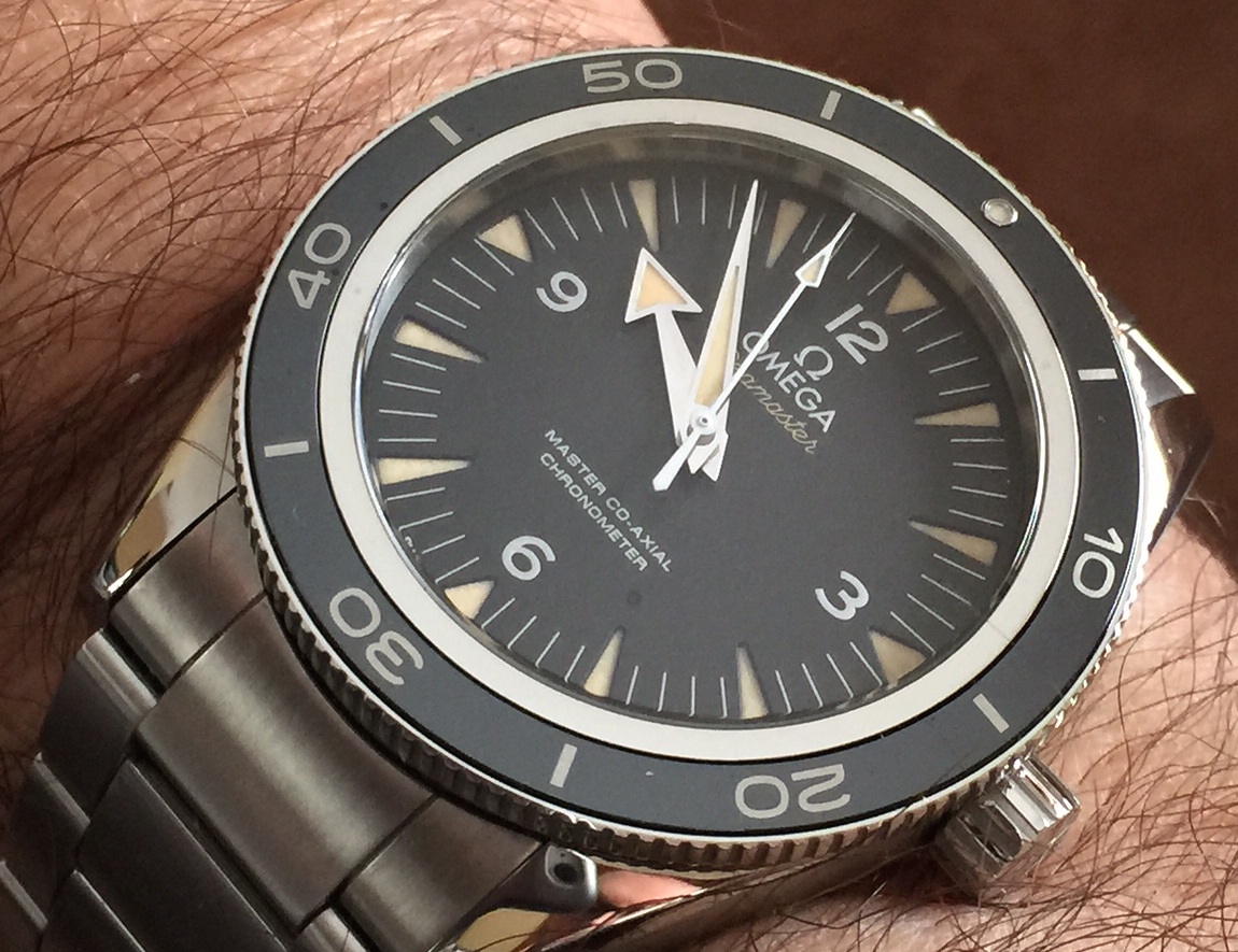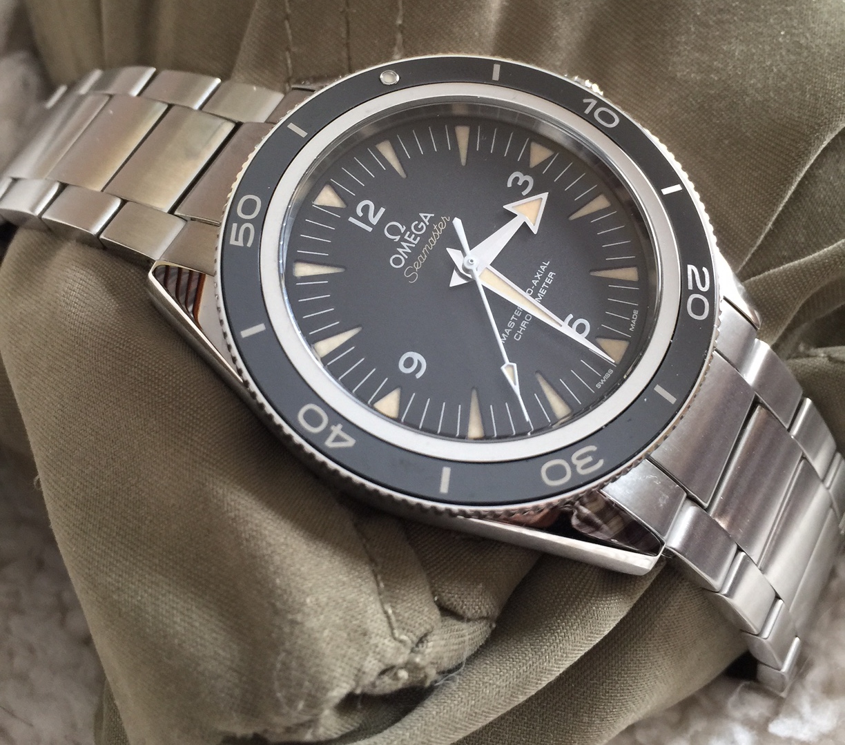 So what is it that makes the watch special for me? Well, it is the total package. I love the alternating surfaces of brushed and polished parts of the case. If you ever owned one of the original Seamaster 300 models, you know how special that look was and is. The design just works. You look at the Seamaster 300 Co Axial and it gives the owner that same comfortable feeling of something very familiar but you also get the luxury of the new technology to enjoy and appreciate. At this point in my life, I can’t afford to buy a large number of fine watches so I need to be really careful with my purchases. This watch for me was and is one of the right choices. It gives me pleasure each day I wear it. The pictures of it do not do it justice but i will include the best ones I have been able to take so far. I forgot to mention the timekeeping. After a month, it seems to deviate 1.5 seconds per day. Why do we buy these watches? To me, they have their functional purposes but they are also art. I look at the Seamaster 300 Co Axial and I see beauty in its harmony and design.