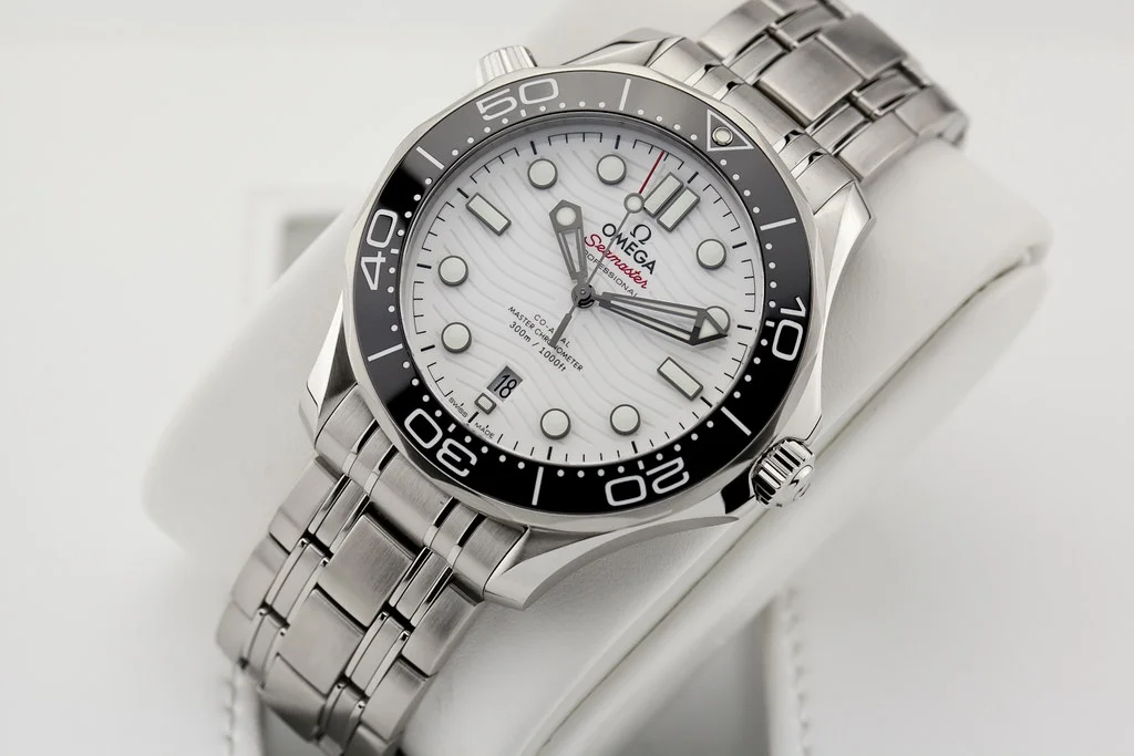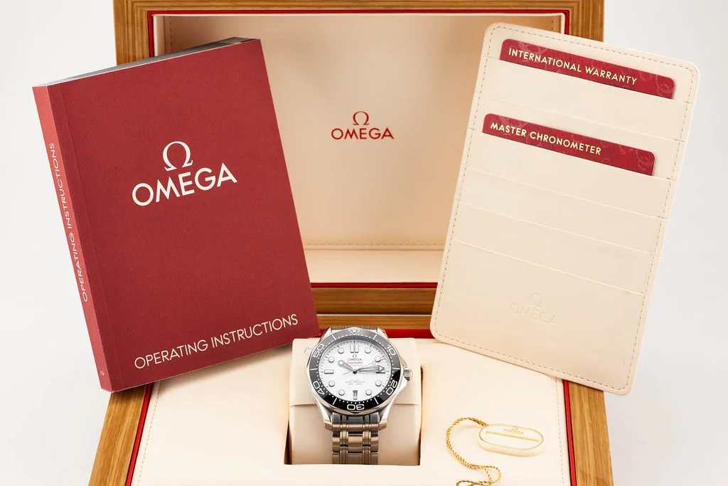 ·Up for sale is a brand new Omega Seamaster 300 42mm 8800, White Dial / Black Bezel on Bracelet, reference # 210.30.42.20.04.001 It comes complete with all boxes, papers, booklets, hang tag and Omega Warranty Card dated August 2025.