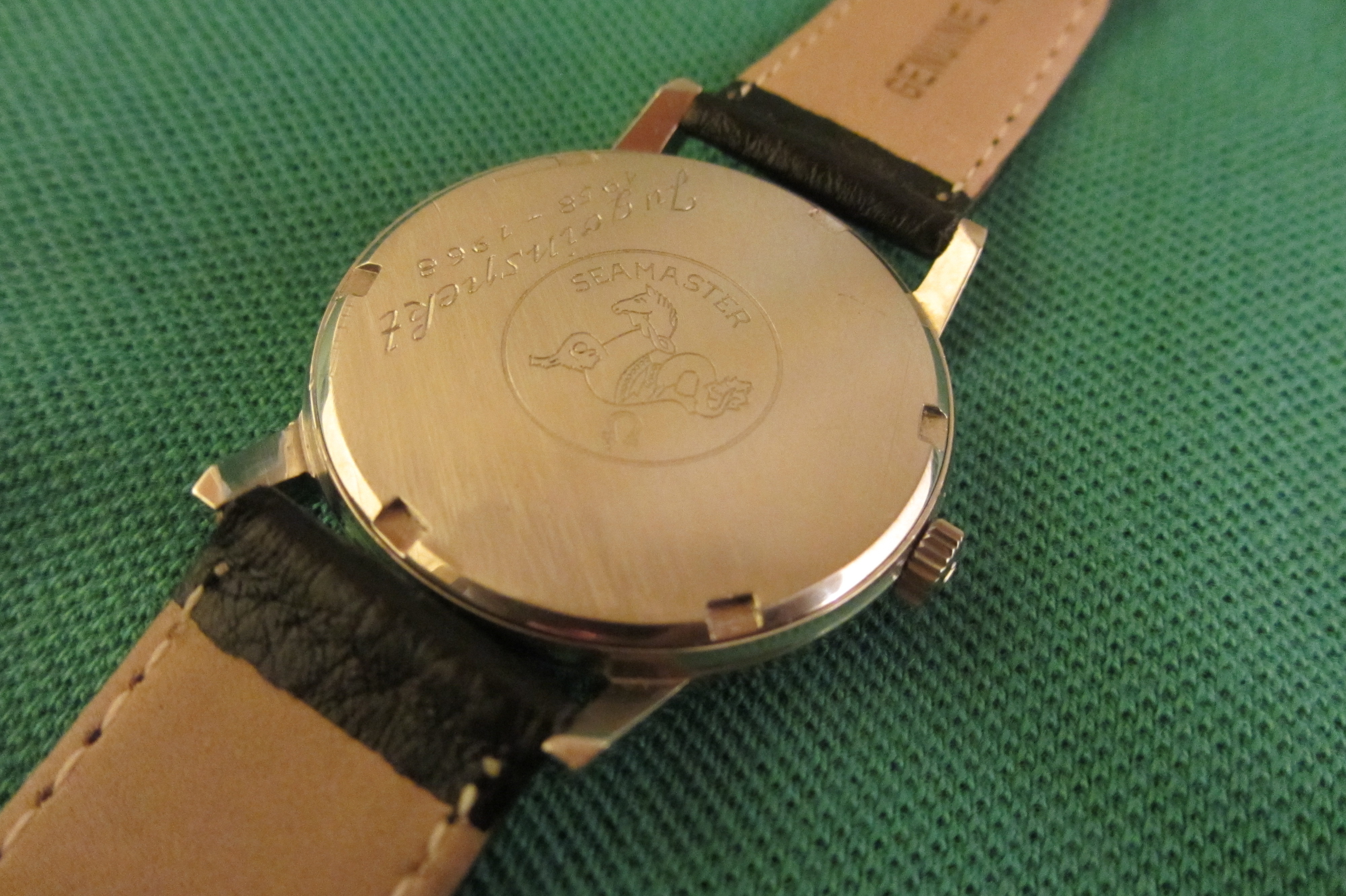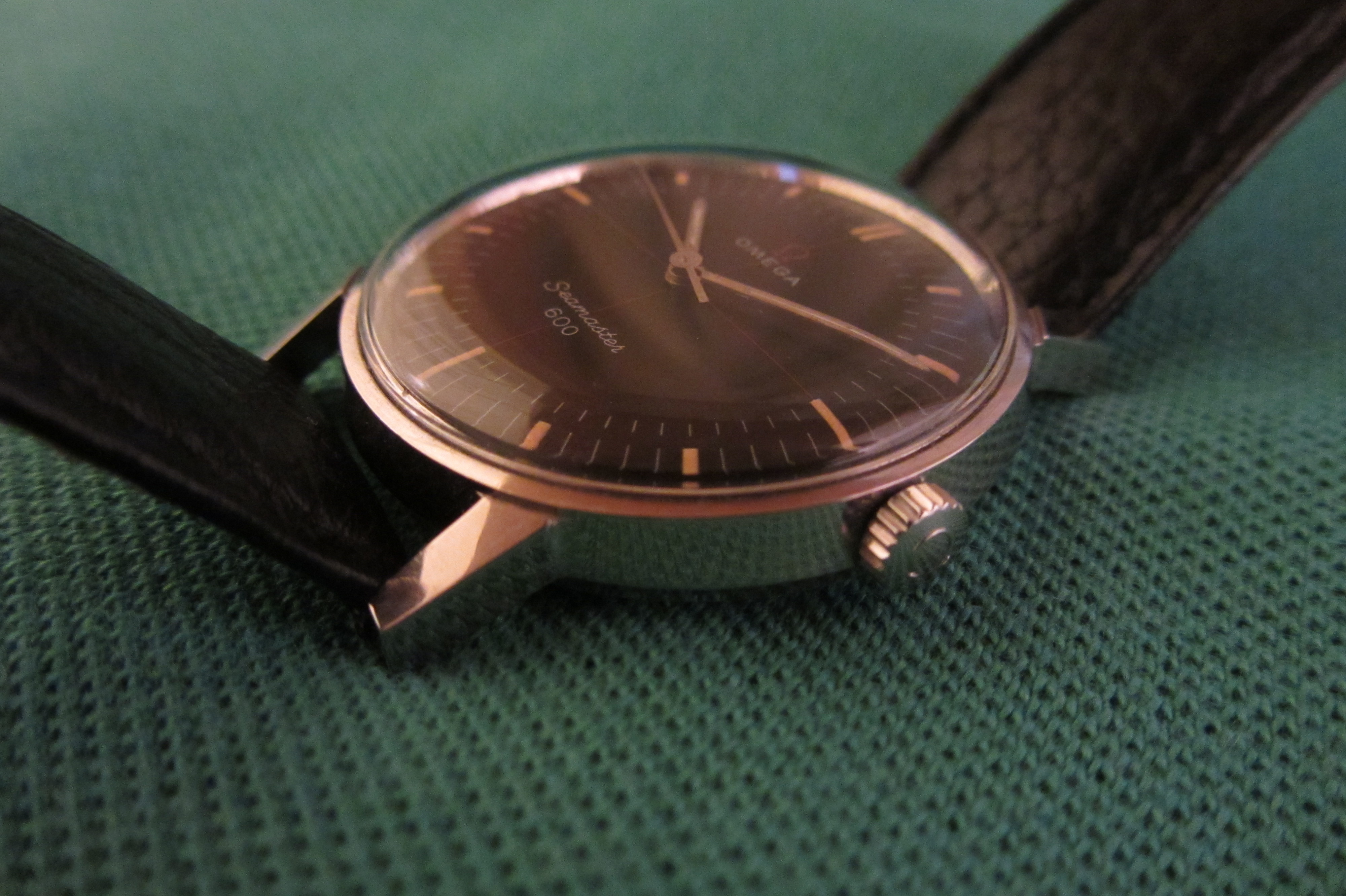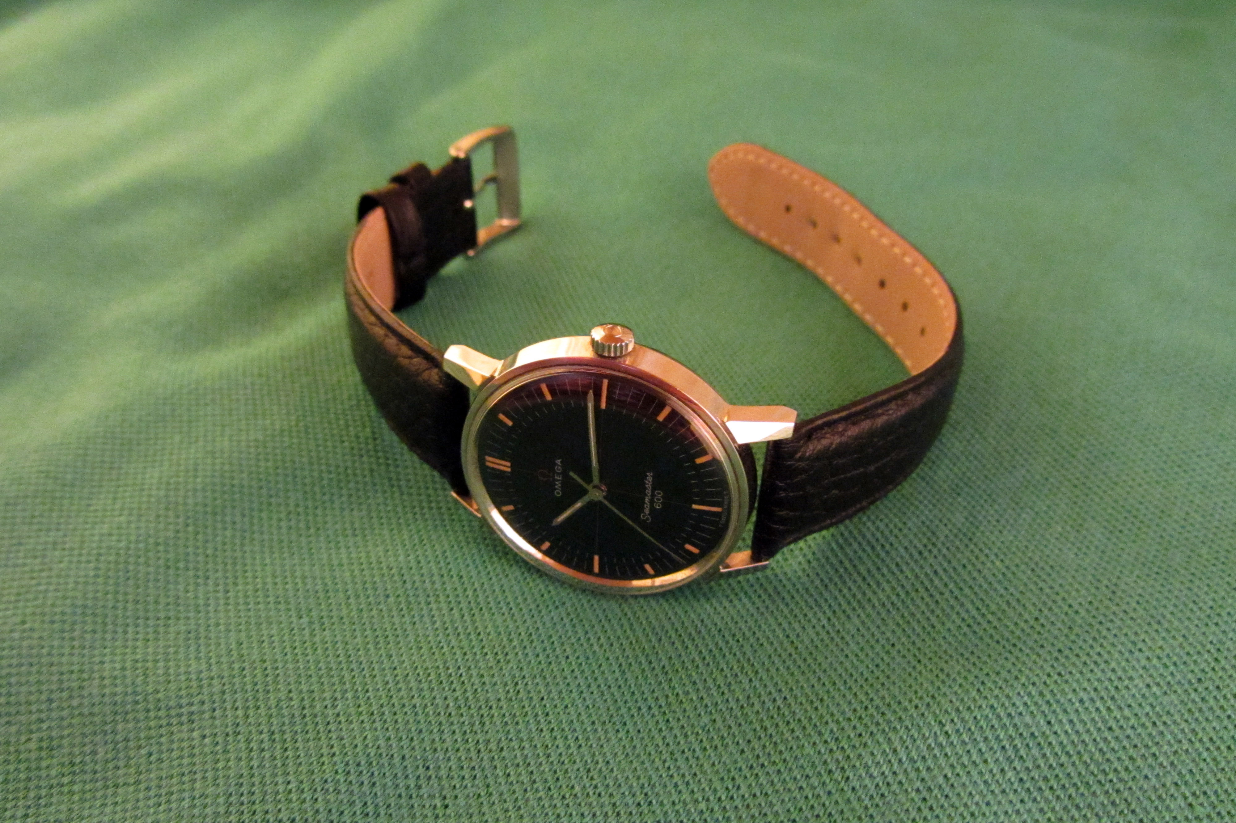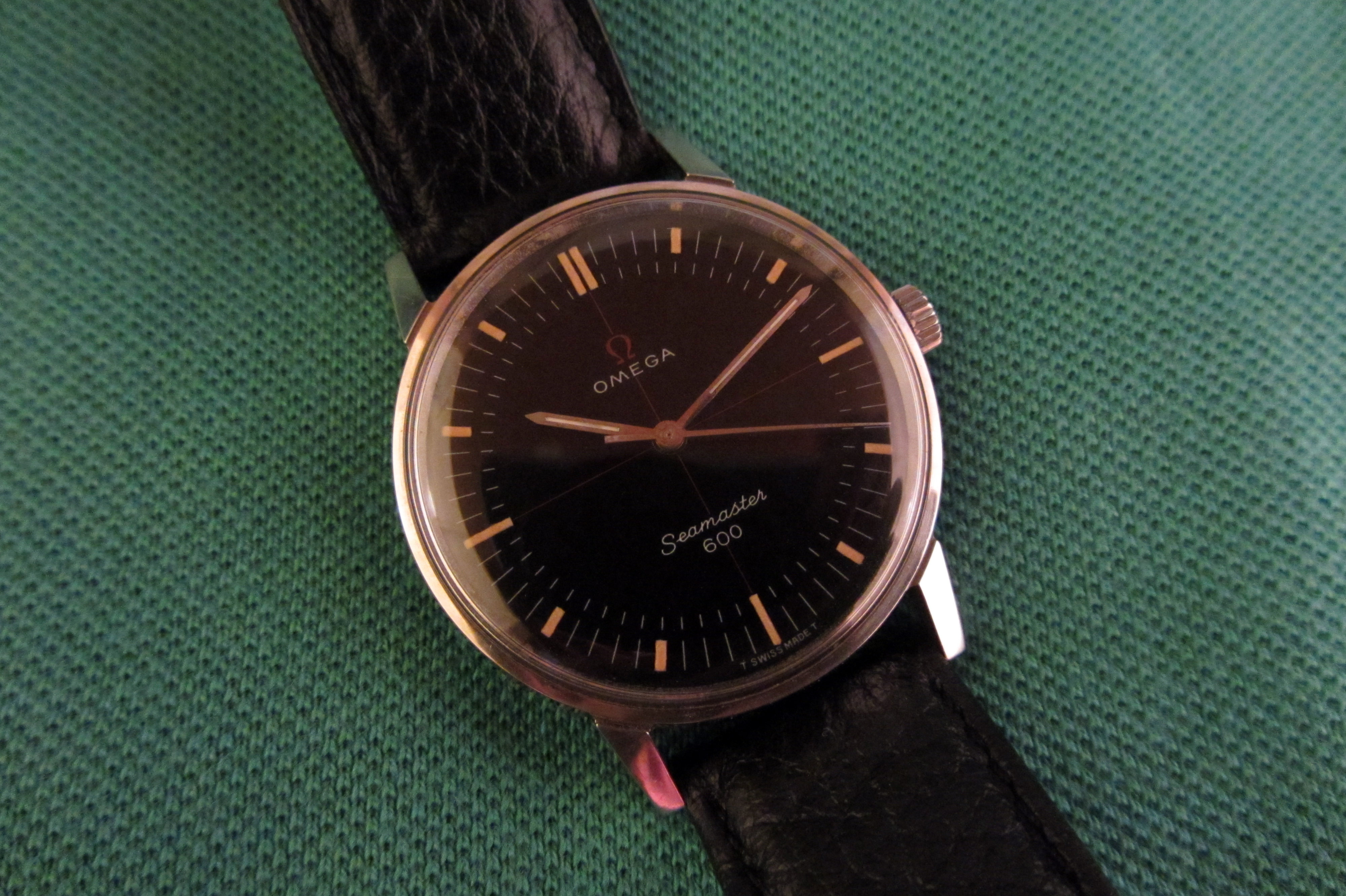 ·Rare Seamaster 600 ref. 135.011. with black dial and red details. Hardly ever worn and in beautiful condition. Probably never polished with sharp edges. Everything on this example is original. Crown and crystal both have Omega logo. Watch is recently serviced and put on a new leather strap. Diameter aprox. 34,5mm, lug to lug aprox. 39,5mm.