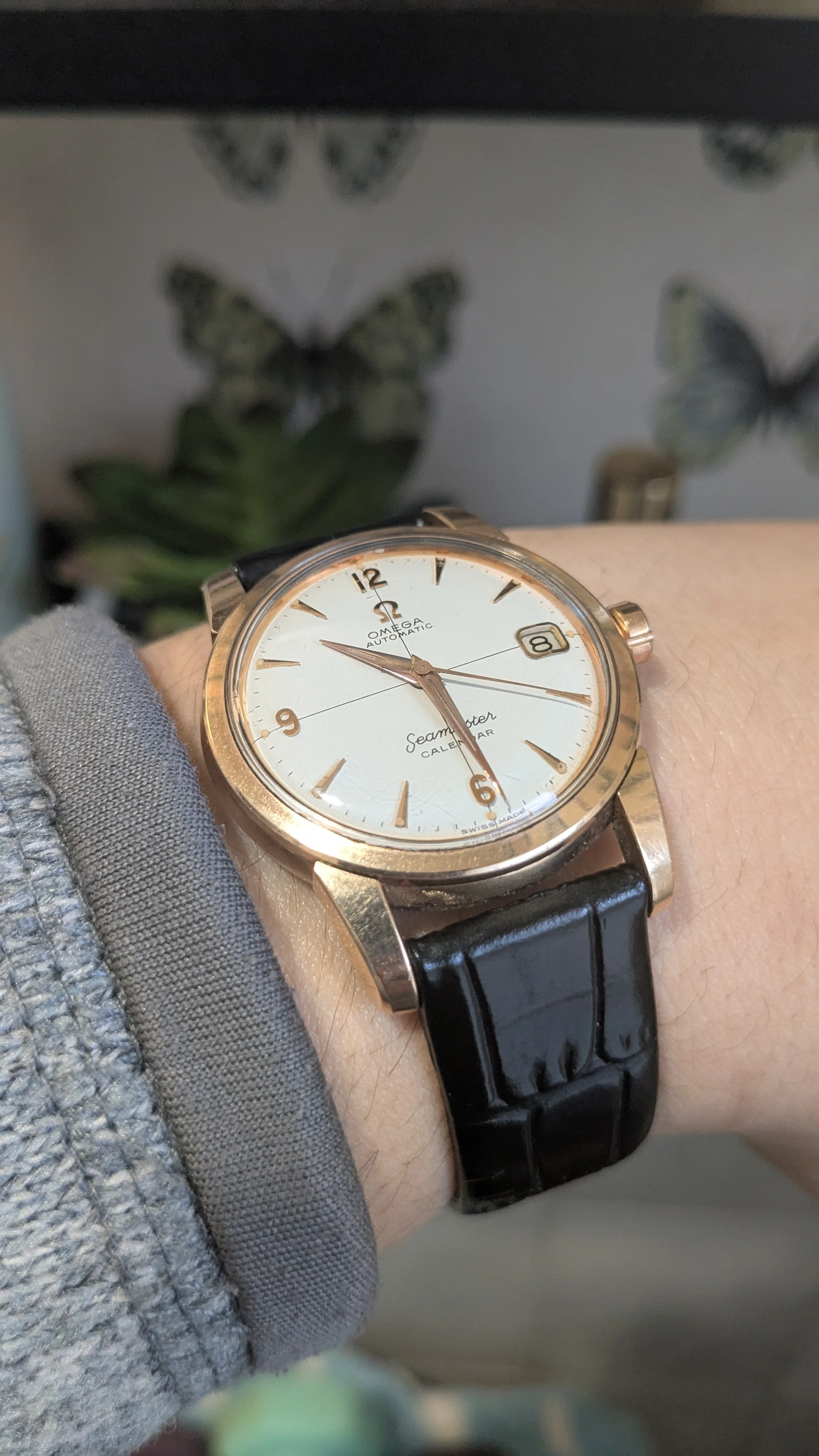 I have for sale a vintage Omega Seamaster Calendar 2849 34mm in stainless steel with Rose Gold Cap in sharp condition. Dial is in prestine clean condition. Rose Gold matching furniture. I think this is a really nice and clean example of the reference and wears very well.