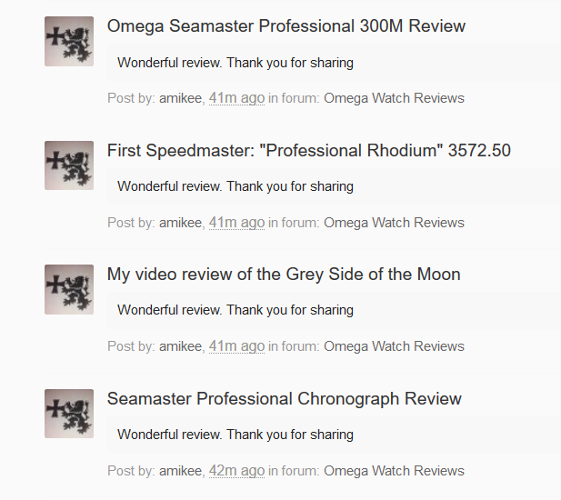 Most new guys here try to add to the conversation, rather than bump old threads with anodyne "great review" or "nice watch" comments, and a few of the threads you've participated in you've been conversational, so I'm curious as to why you'd do this