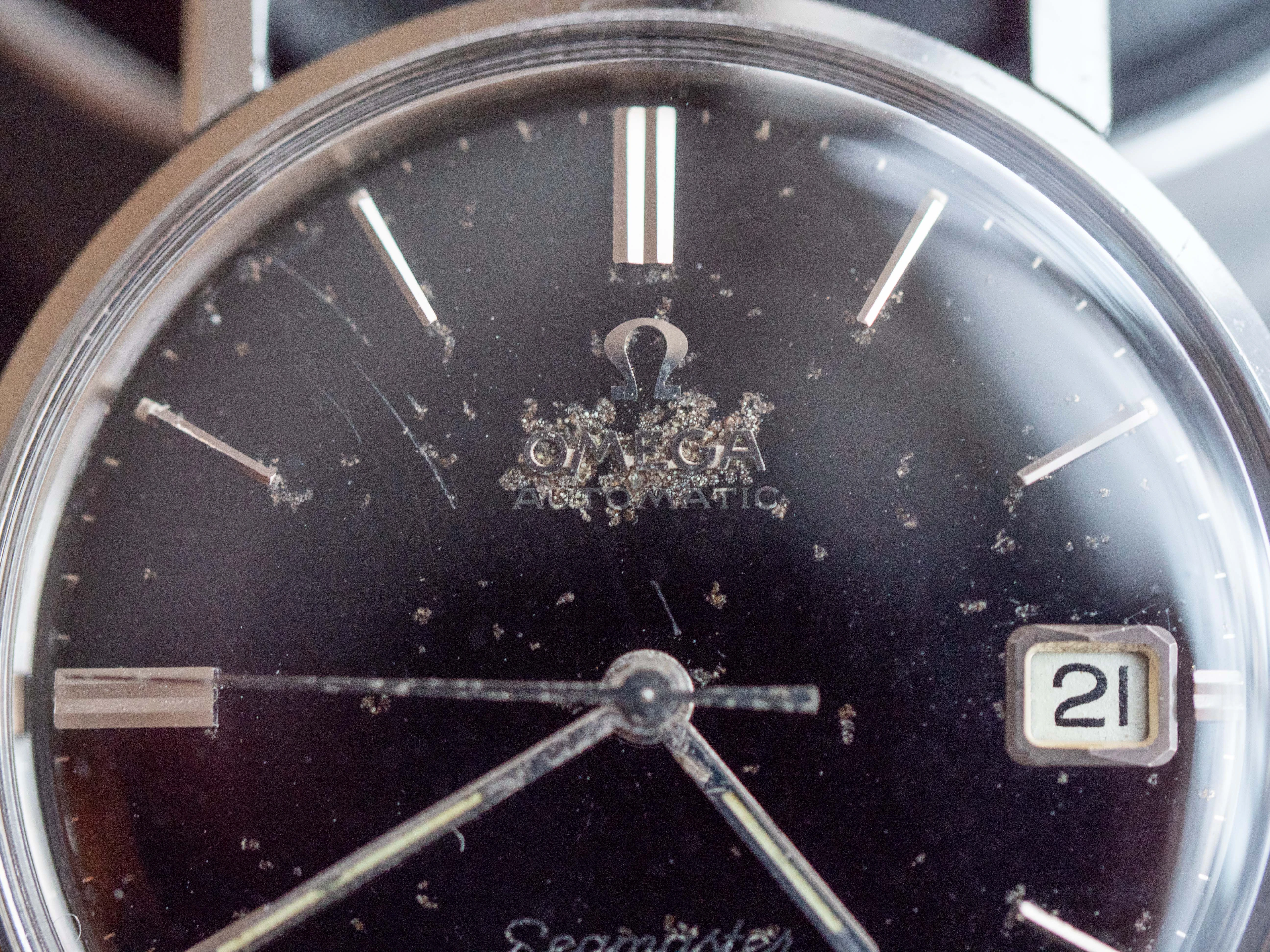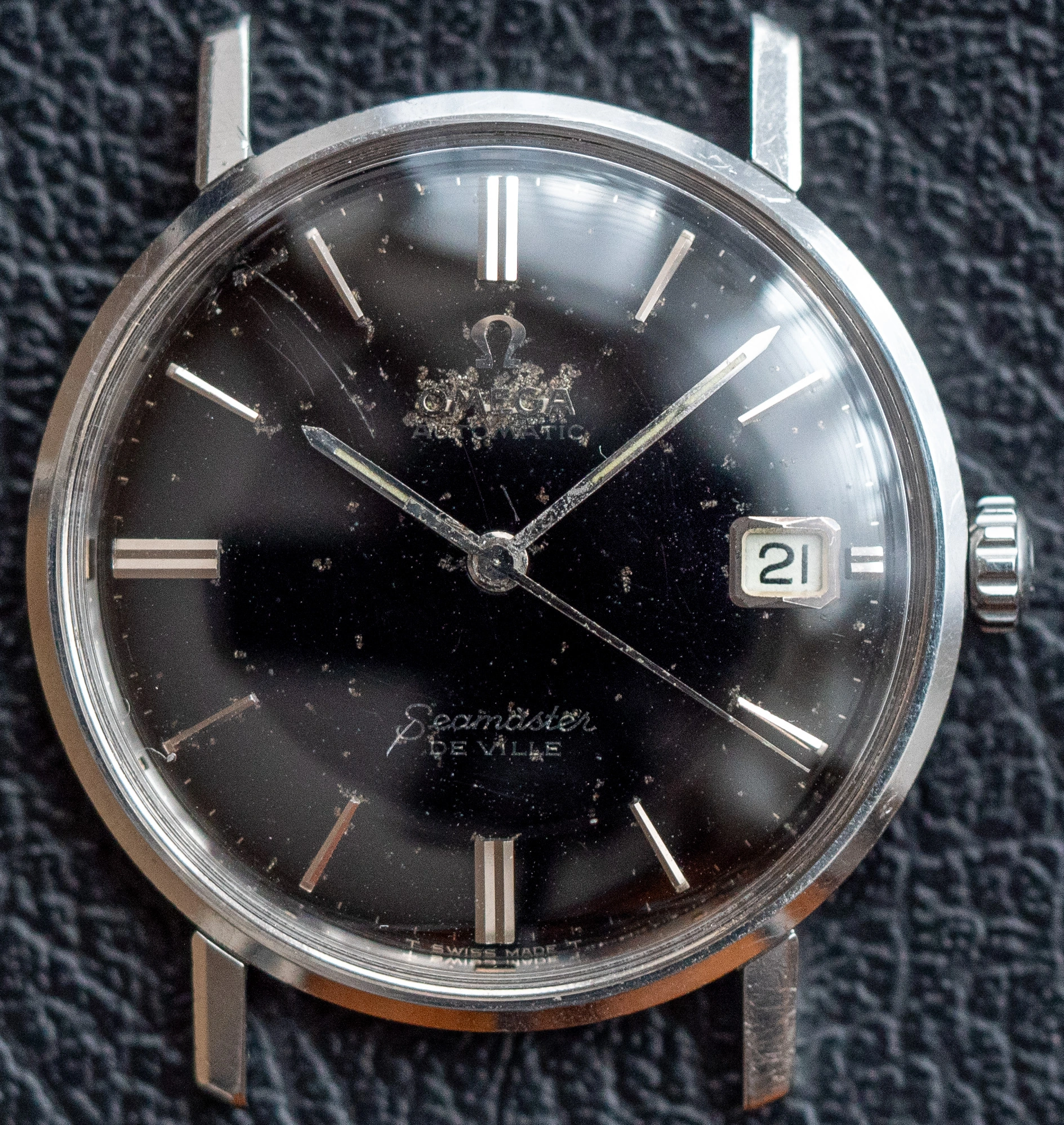 I am putting up for sale an Omega Seamaster DeVille 166.020 with black gilt dial and Beads of Rice bracelet.