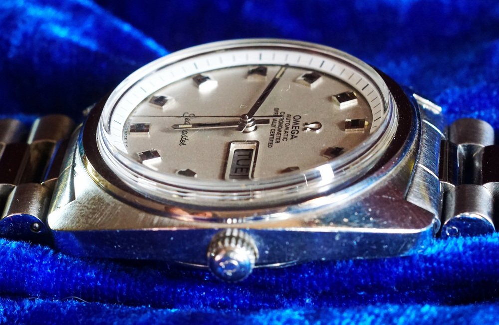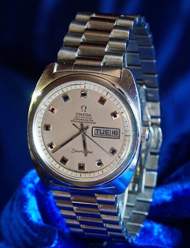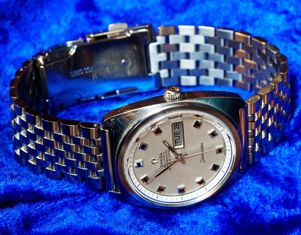 ·While spending a couple hours scouring the web for an excellent and affordable Omega ref. 168.022 with a “sparkle dial”, I come across this handsome watch, the reference 168.034, also a “sparkle”, with a chronometer movement. This model was totally off my radar, and this led to a bit more research. Finally, convinced that this was the real deal I pulled the trigger. A few minutes later I also ordered a bracelet I felt would complement it. I knew from the configuration that locating the correct Omega one was going to take a minute, and I wanted to wear it. It arrived a couple of days later from Japan looking better than the photos.