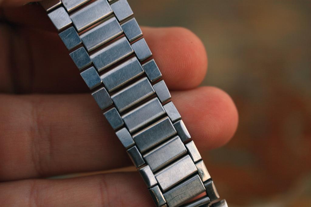 The clasp is ding free and Omega logo is crisp and unpolished. All links are ding/dent free.