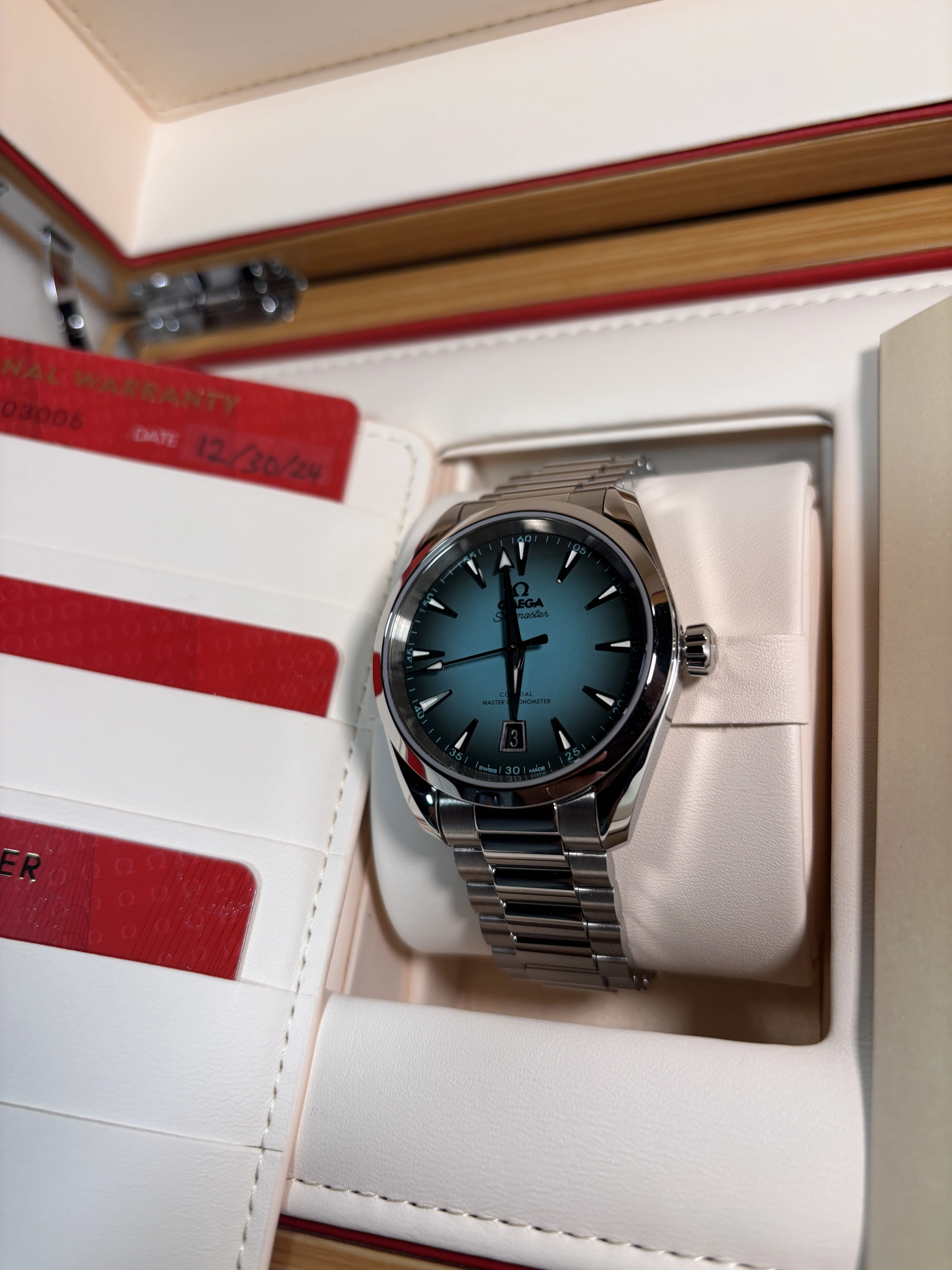 ·My darling wife won't part with her beloved apple watch, so this 38mm 2024 warrantied Turquoise Aqua Terra is in basically new condition. still has a couple of stickers on it even I purchased it new in December and comes with full set, including purchase receipt. Moving this on along to fund another.