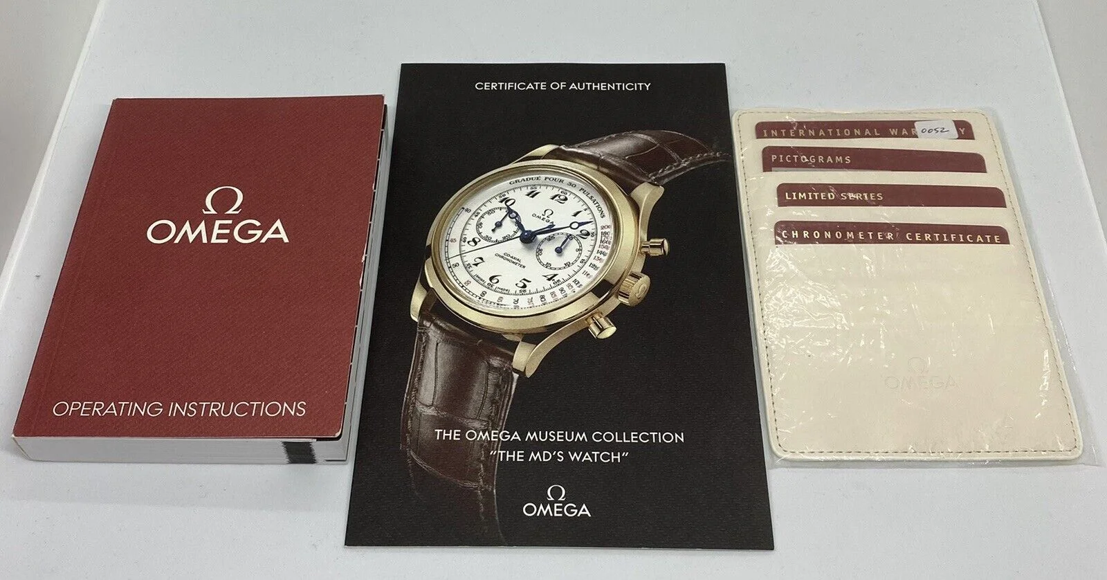 ยทFor sale is a "like new" condition Omega Reference 516.53.39.50.09.001. I've had the watch for two years and purchased it new. Worn sparingly with care. Running perfectly, all functions work as they should, keeps excellent time. Package is complete with outer cardboard box, inner box, special edition box, cards and all the paperwork, stickers and protective film. I'm selling to purchase something else. This is a fine dress watch crafted in 18k solid yellow gold and has a wonderful presence on the wrist with the white laquer dial.