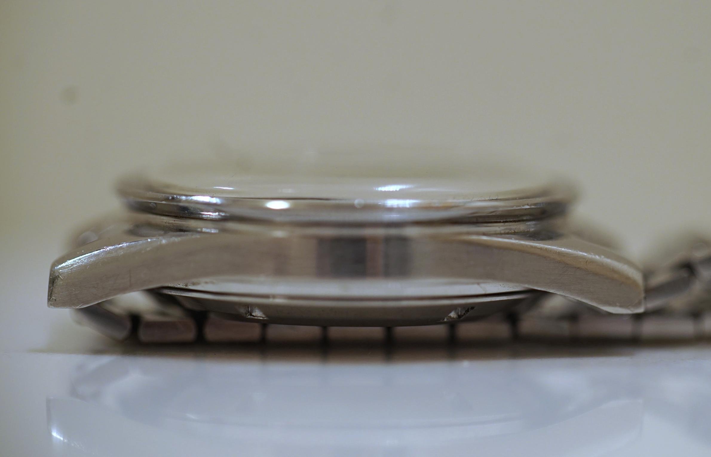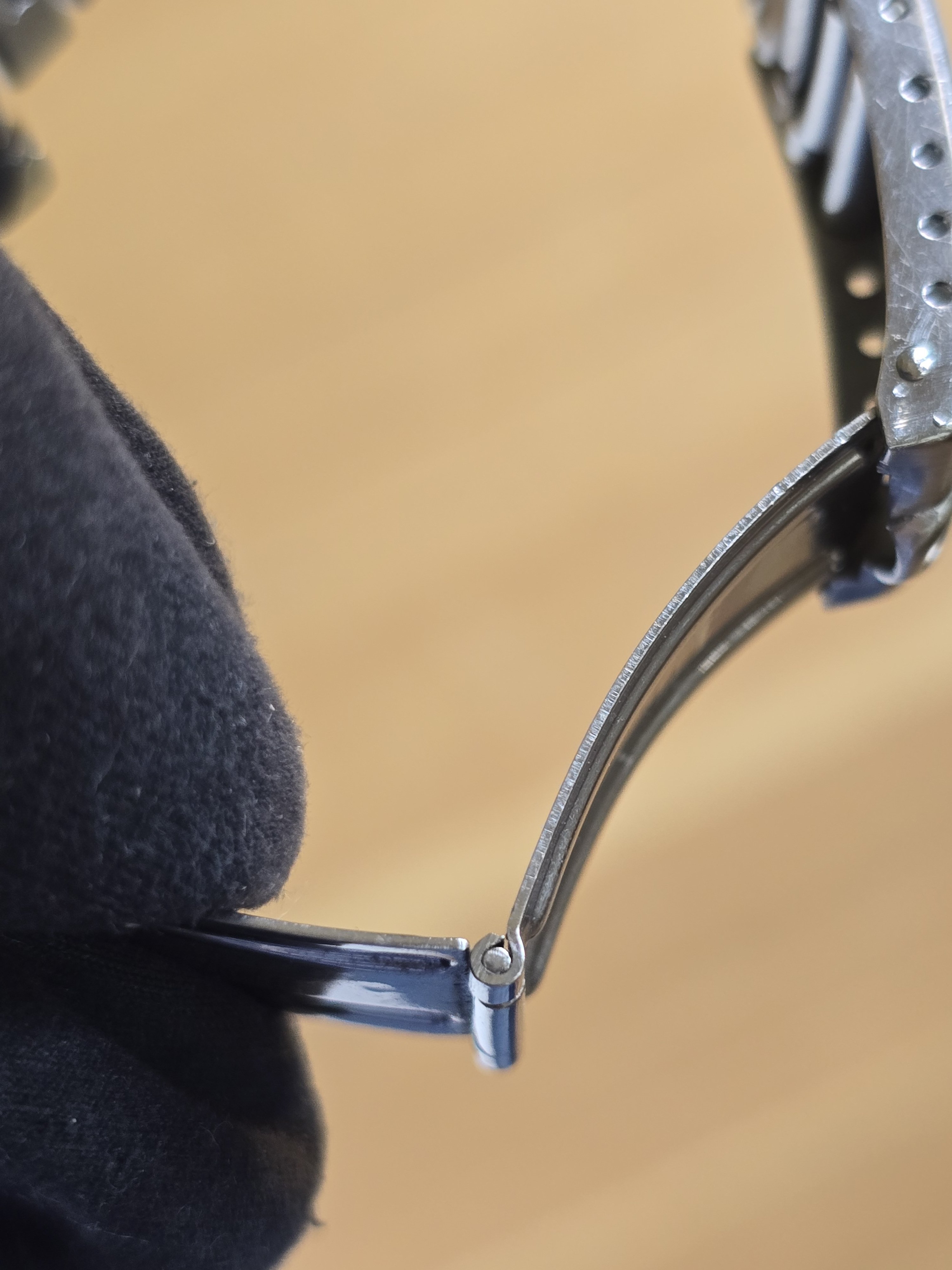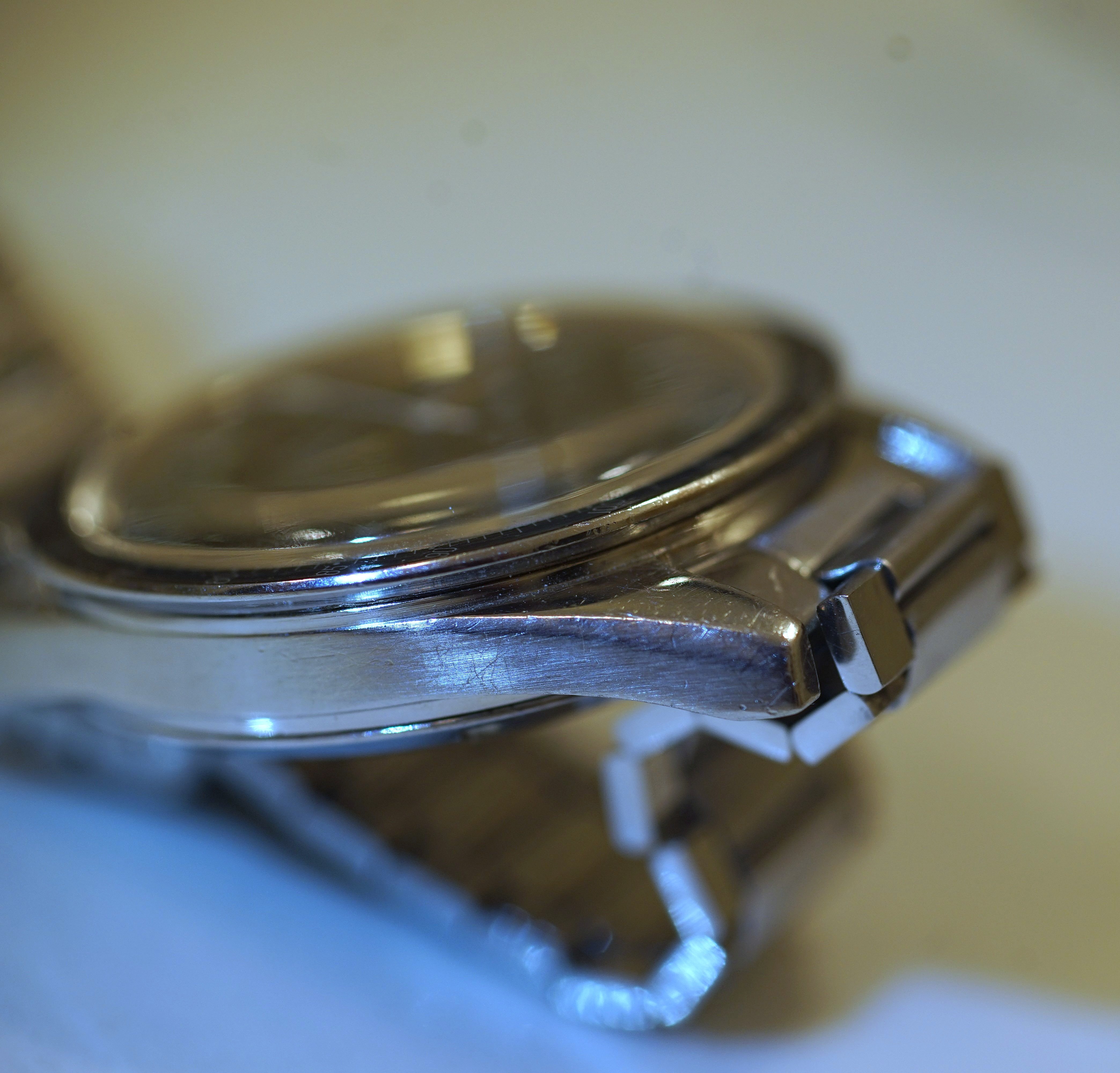 I think it is fair to say this is an overall excellent example, based on my own judgment and the opinions of a few other members who have seen the watch in person. The bezel is clearly not excellent in itself. The bracelet and endlinks are believed to be original and fit my 7.25 inch wrist. Note that the clasp hinge is tight and does not swing by gravity (see photo.) Taken as a whole, the case, dial, lume, and hands make this an exceptional watch, imo.