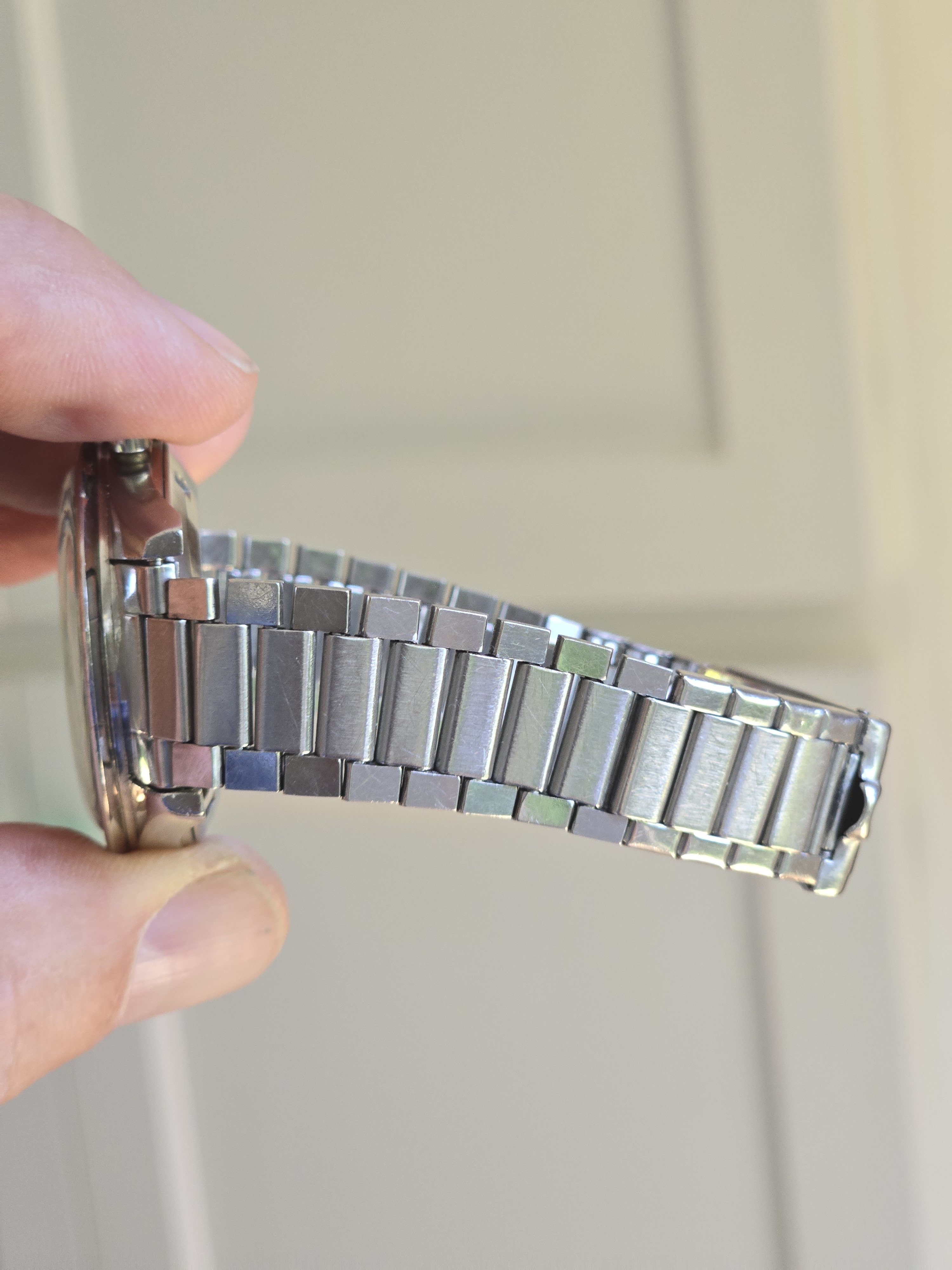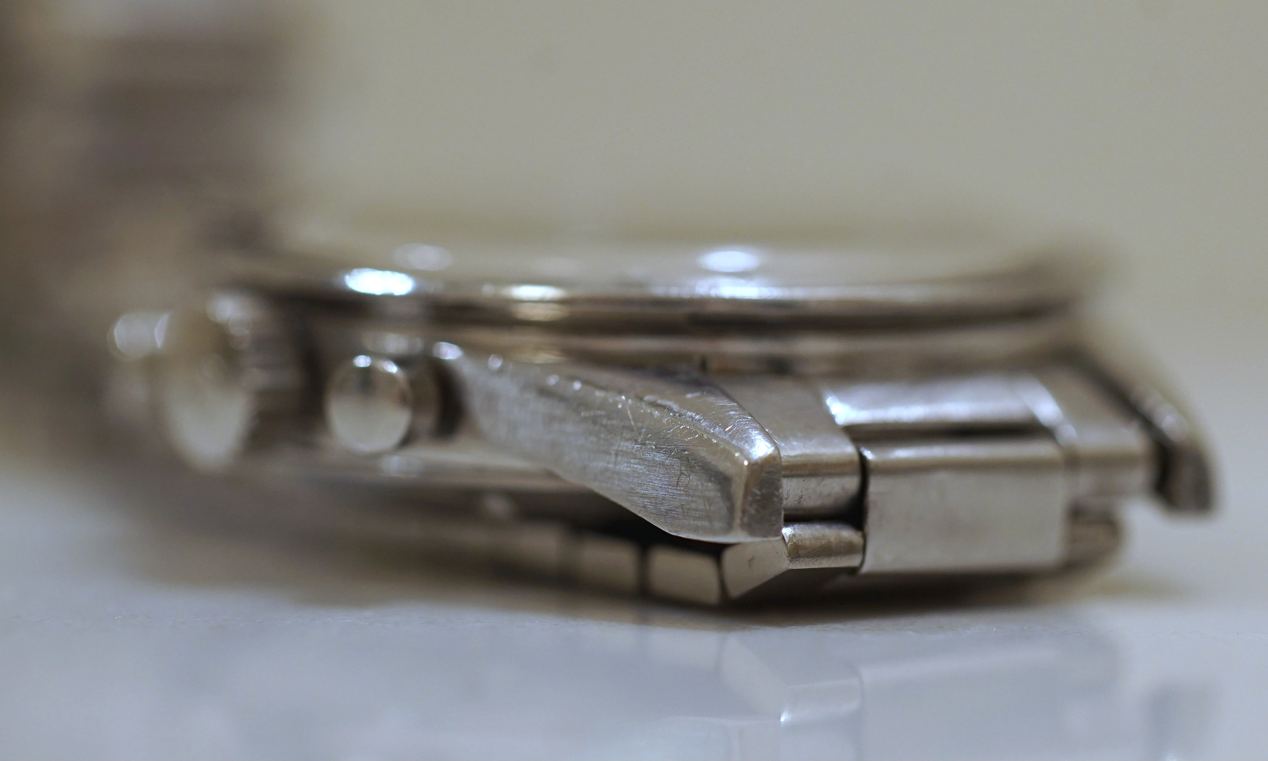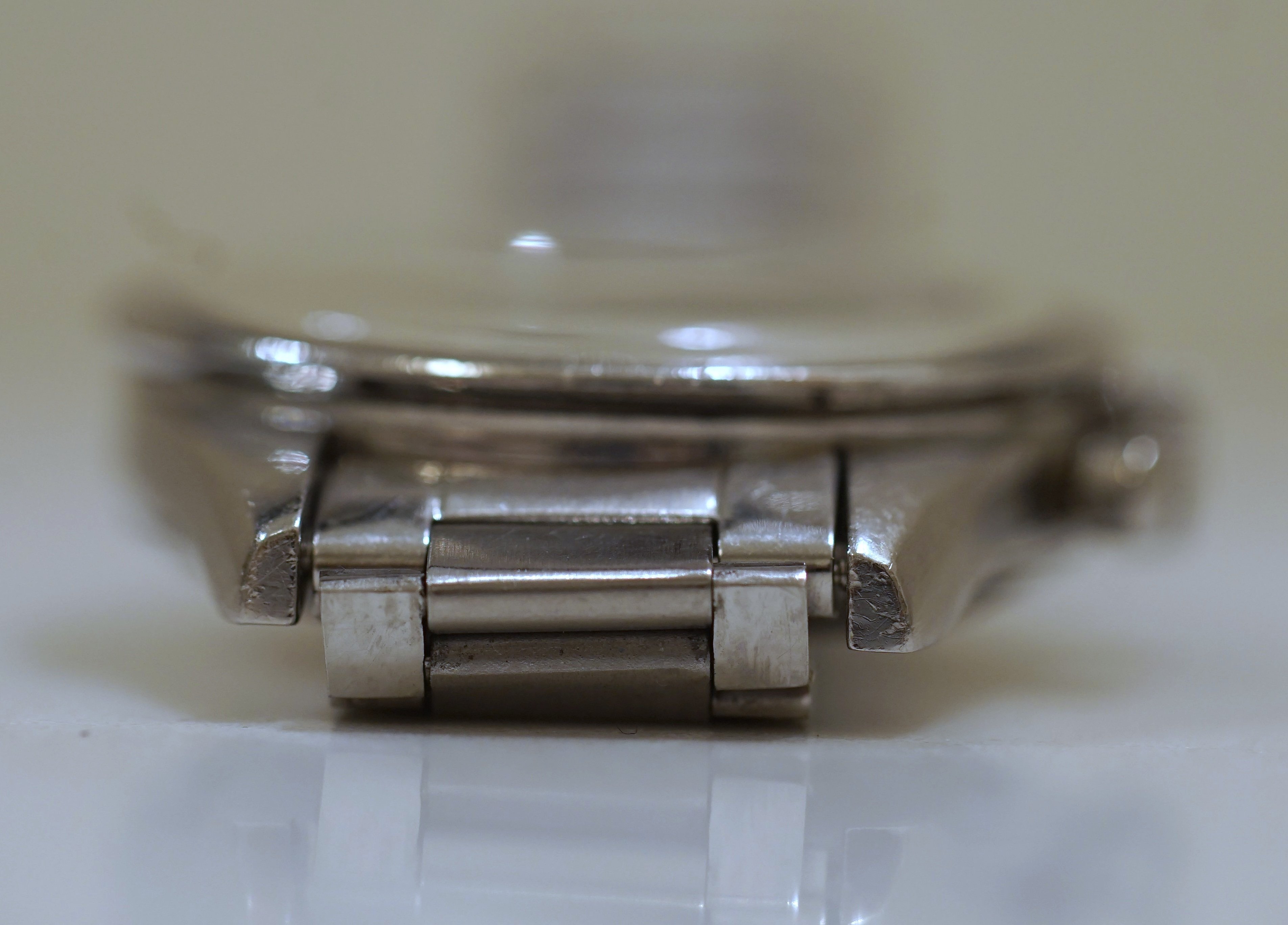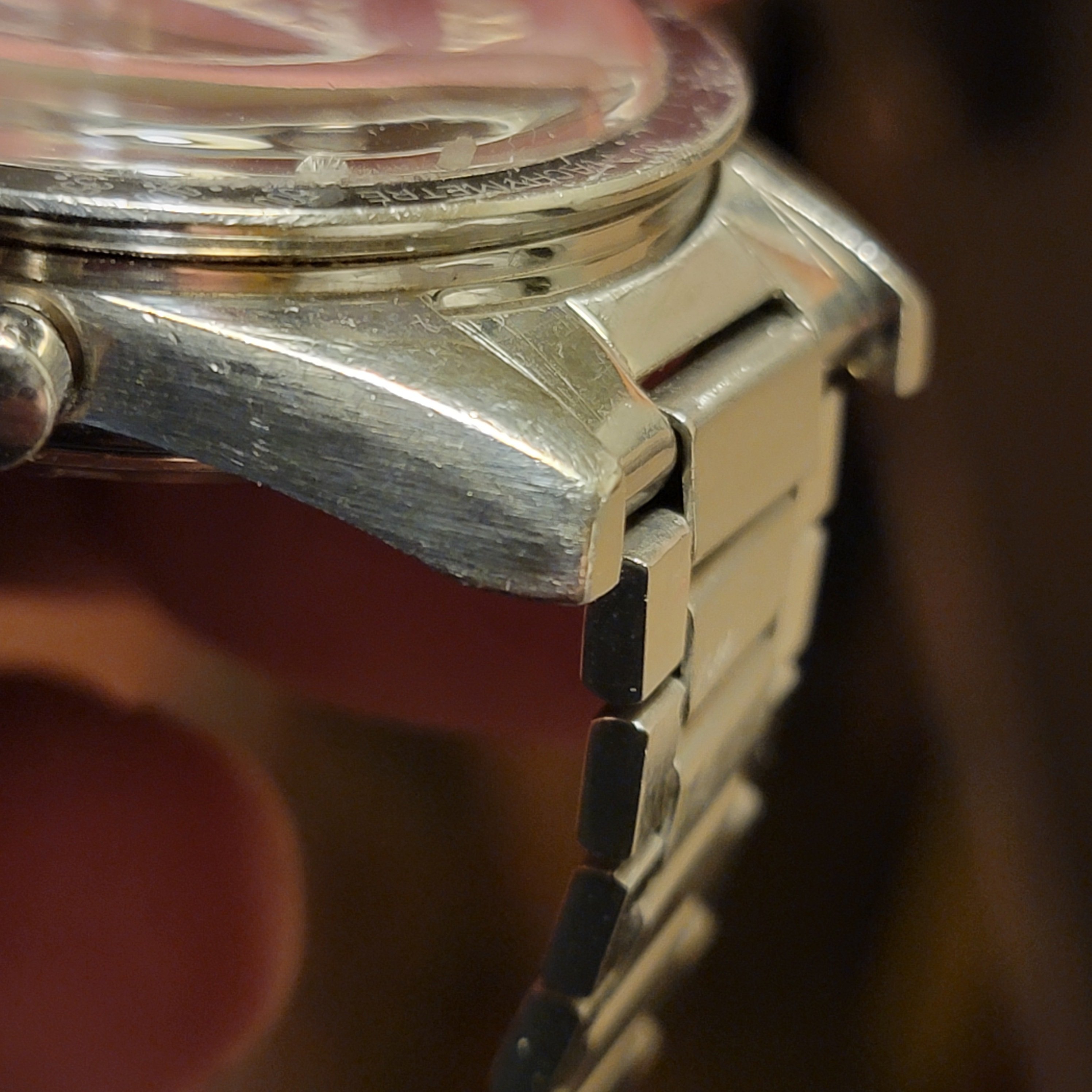 I think it is fair to say this is an overall excellent example, based on my own judgment and the opinions of a few other members who have seen the watch in person. The bezel is clearly not excellent in itself. The bracelet and endlinks are believed to be original and fit my 7.25 inch wrist. Note that the clasp hinge is tight and does not swing by gravity (see photo.) Taken as a whole, the case, dial, lume, and hands make this an exceptional watch, imo.