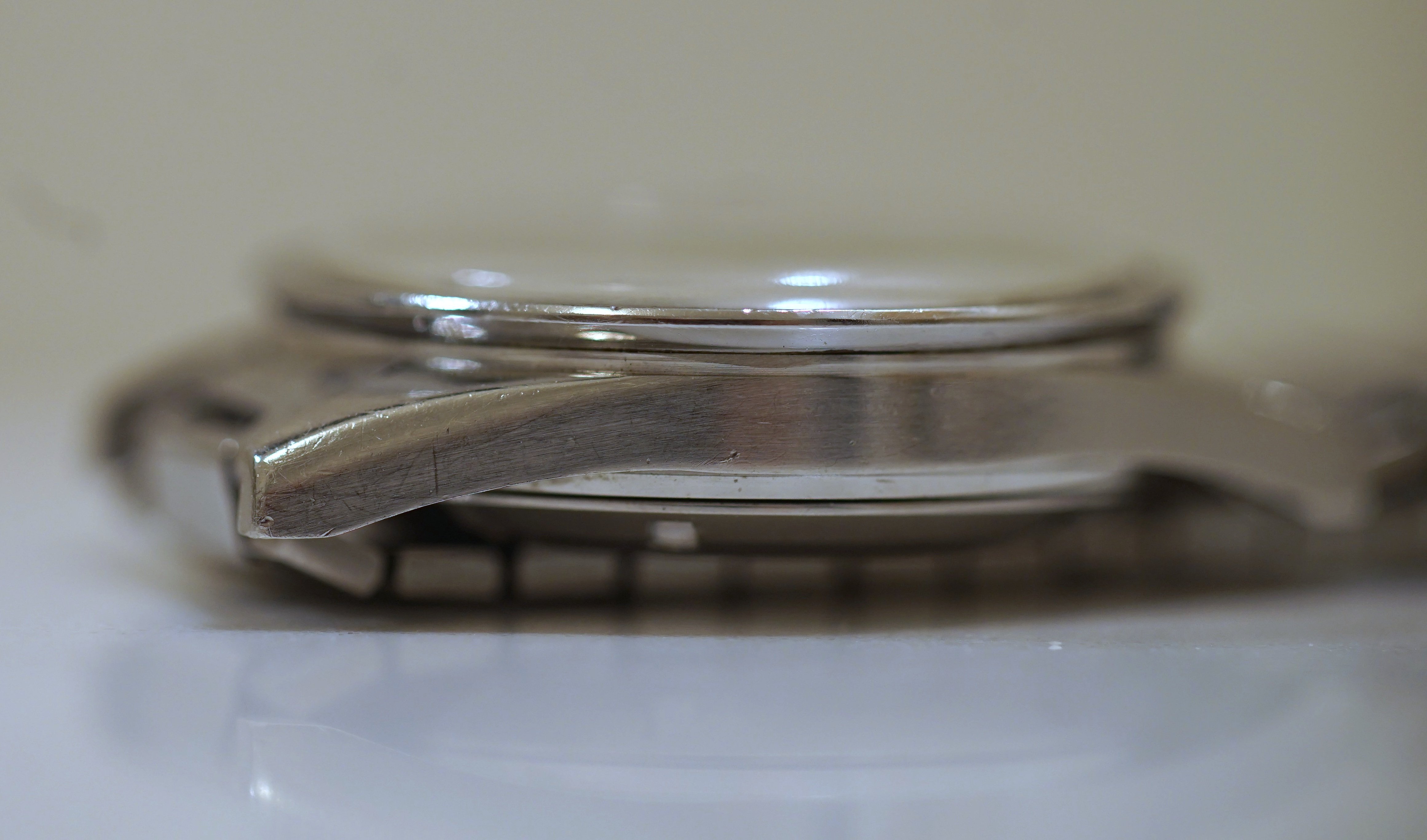 Note the brushing on the case chamfers, which indicates that the case has not been previously polished. That is of course subject to debate and impossible to say for certain.